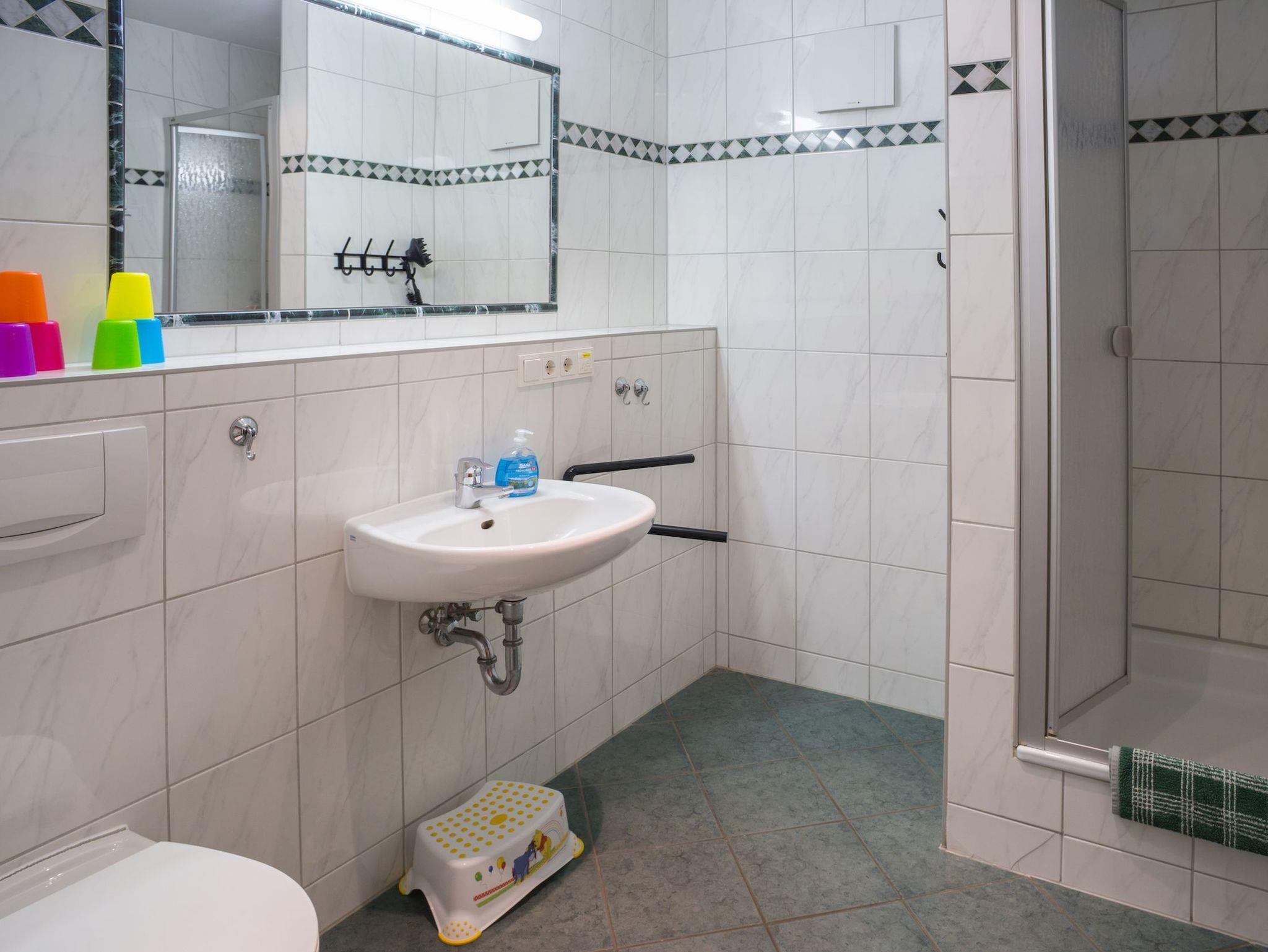 - Bad mit Dusche, Waschtisch und WC