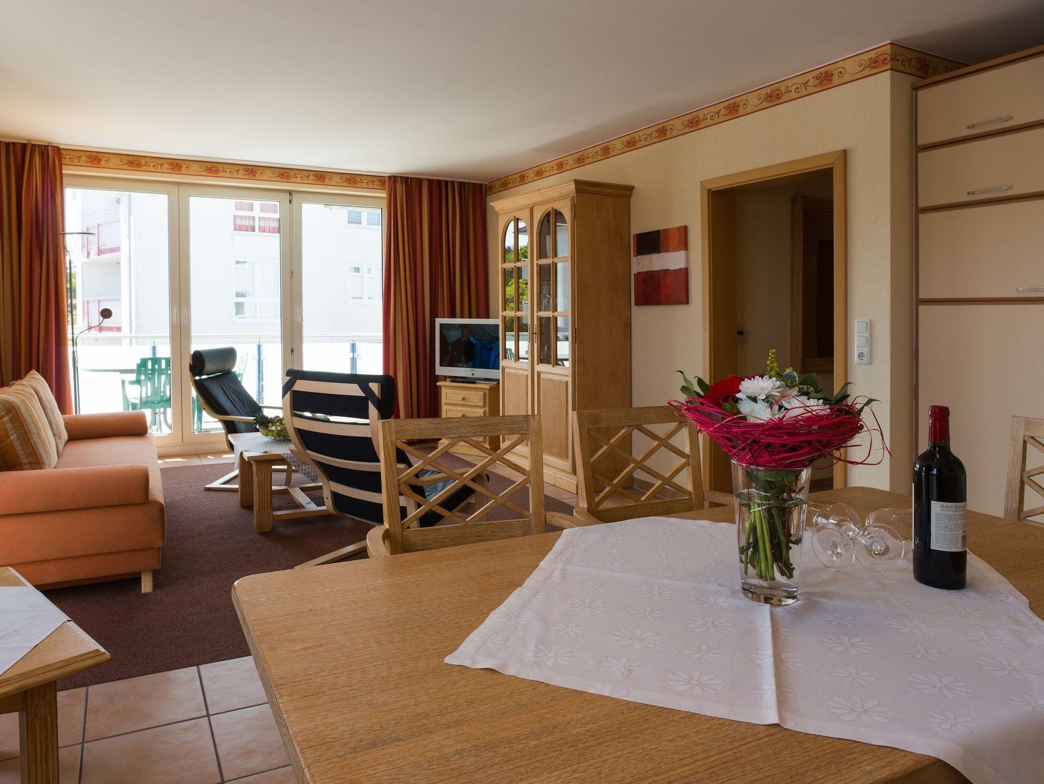 Mit zwei separaten Schlafzimmern, einem großzügigen Wohn- und Küchenbereich sowie einem einladenden Balkon oder einer Terrasse mit Gartenmöbeln lädt die Wohnung zum Entspannen ein. Der helle Wohnbereich ist mit einem bequemen Sofa, Kabel-TV und einer HiFi-Anlage ausgestattet perfekt für gemeinsame Abende.