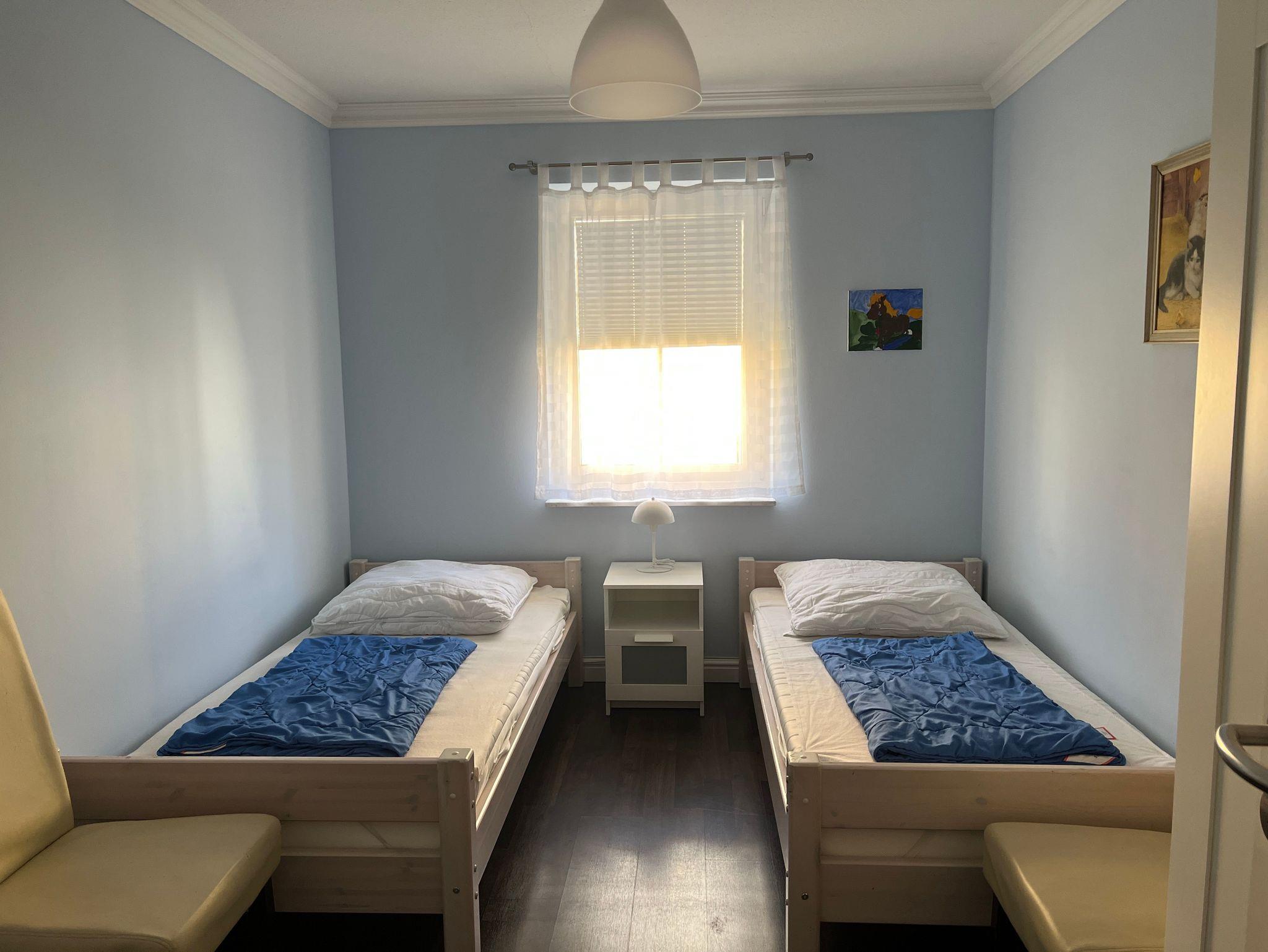 3-Raum-Wohnung mit 2 Schlafzimmern - 1 Schlafzimmer mit Doppelbett, 1 Schlafzimmer mit 2 Einzelbetten.