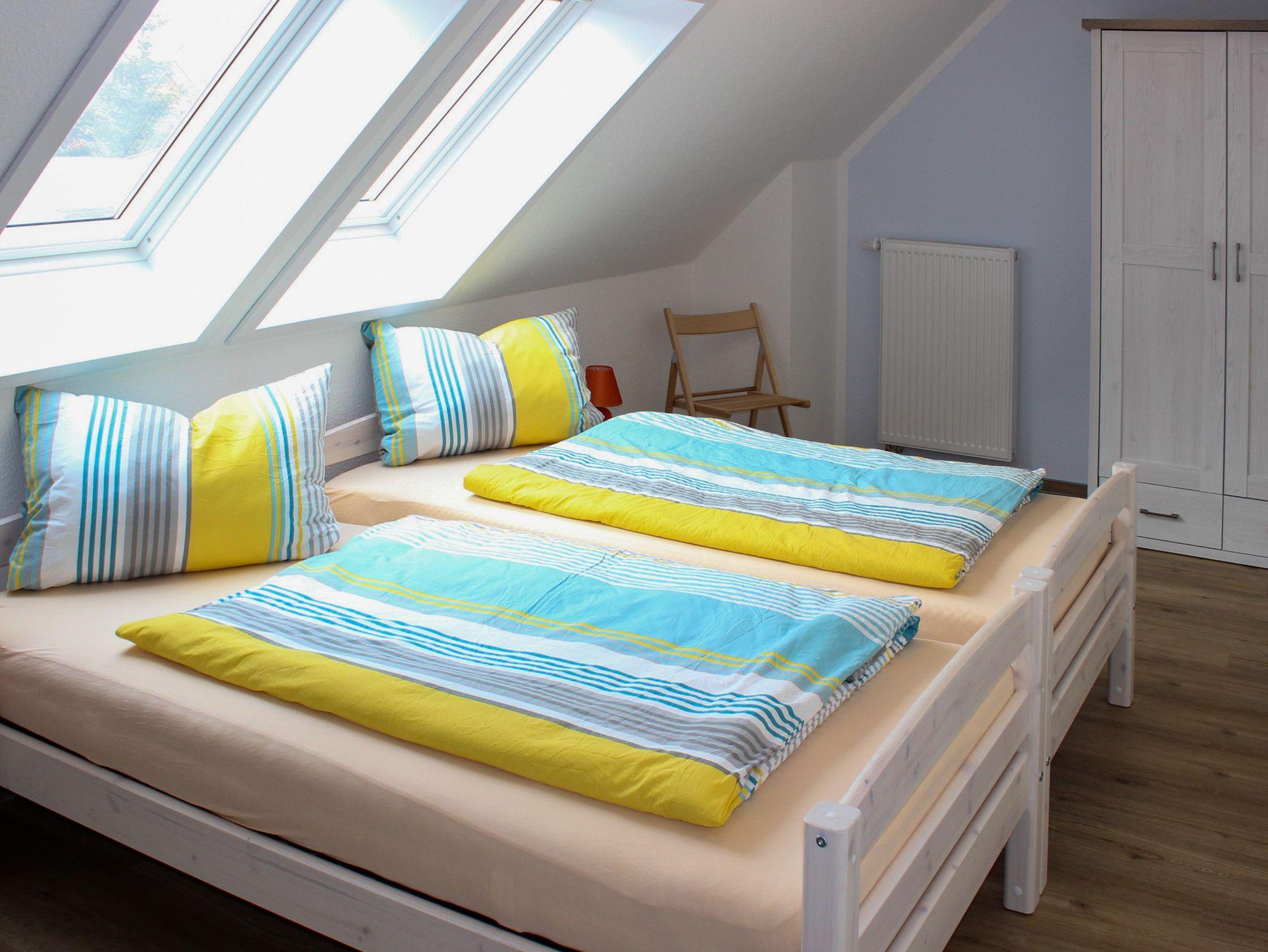 Die beiden Schlafzimmer finden Sie im Obergeschoss der jeweiligen Wohneinheit. In der Fewo Anna gibt es im Elternschlafzimmer zusätzlich ein festes Kinderbett.