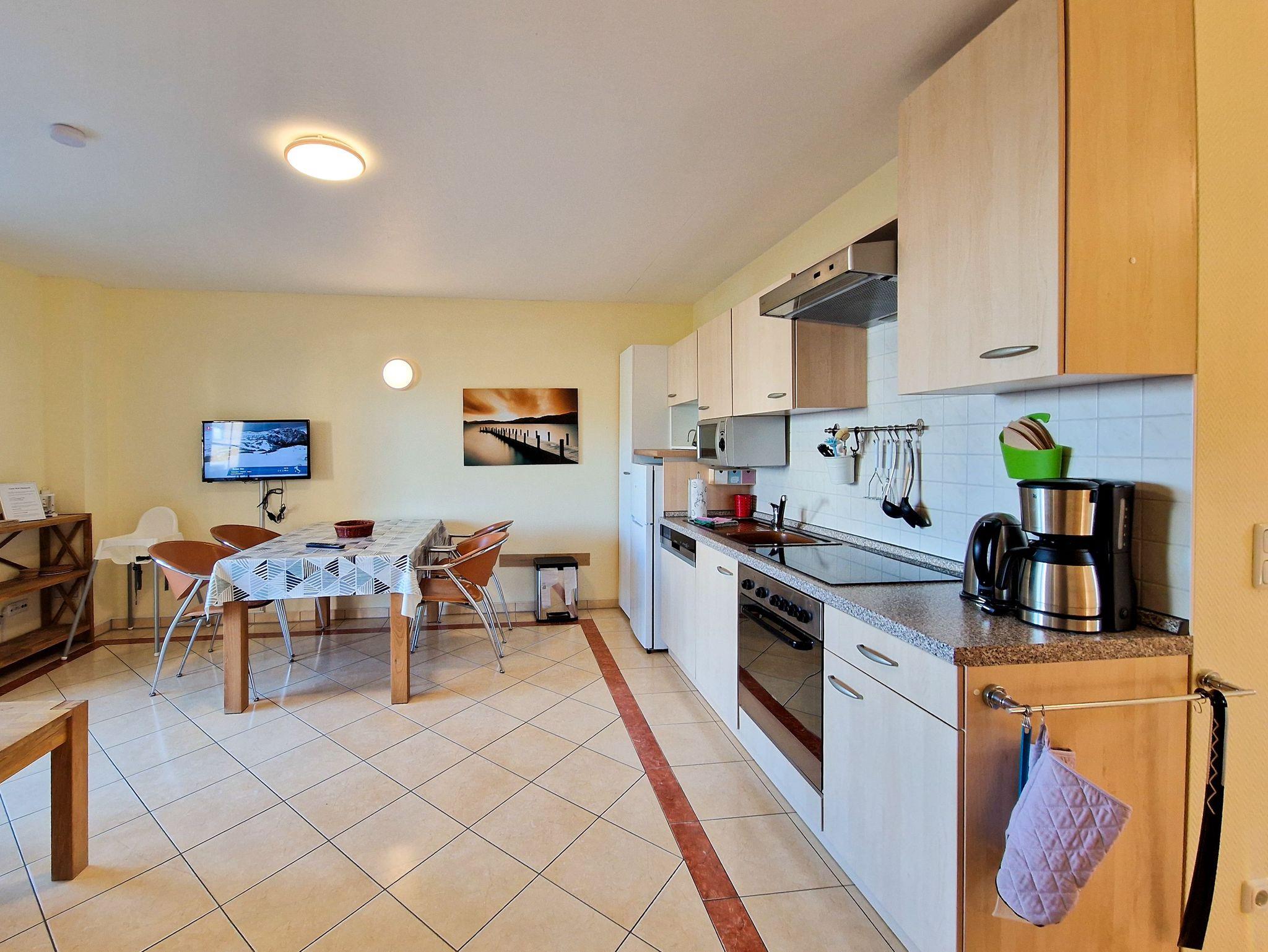 Die offene Küchenzeile ist bestens ausgestattet, um Ihre Lieblingsgerichte zu zaubern. Das Bad verfügt über alles, was Sie brauchen: ein WC, Waschbecken und eine Badewanne mit Duschabtrennung, perfekt für eine erfrischende Auszeit.