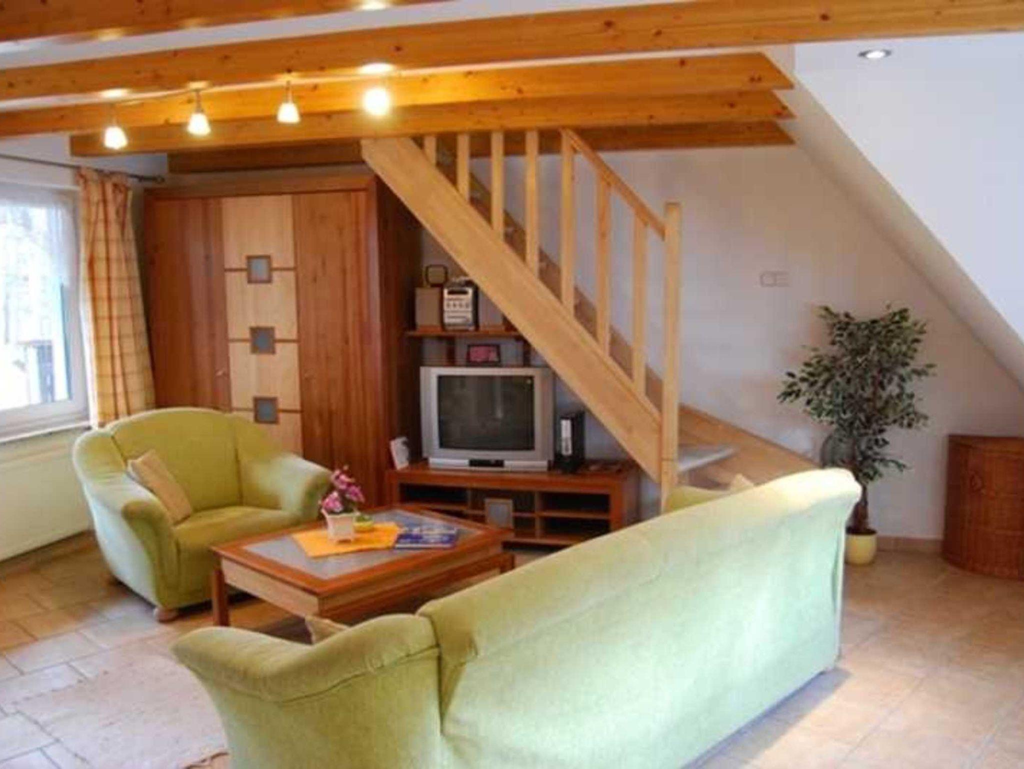 Unsere modern eingerichteten 2-Raum-Maisonettewohnungen befinden sich im Obergeschoss und erstrecken sich über zwei Etagen. Ein großzügiges Wohnzimmer mit einem separaten Essplatz und einer modernen Küche und das Bad mit Dusche, Waschbecken und WC befinden sich im unteren Bereich. Zur Sitzecke gehören ein Radio und ein Sat-TV. Die Küche hat neben Kühlschrank mit TK, und einen Herd mit Cerankochfeld einen Geschirrspüler. Geschirr, Gläser, Töpfe und div. Kochzubehör sind ebenfalls vorhanden. Im Obergeschoss gibt es das Schlafzimmer mit 3 Betten. Vom großzügigen Balkon schauen Sie Richtung Meer. Auf der Seeseite befindet sich zudem ein interessant gestalteter Grillplatz für gemütliche Stunden.