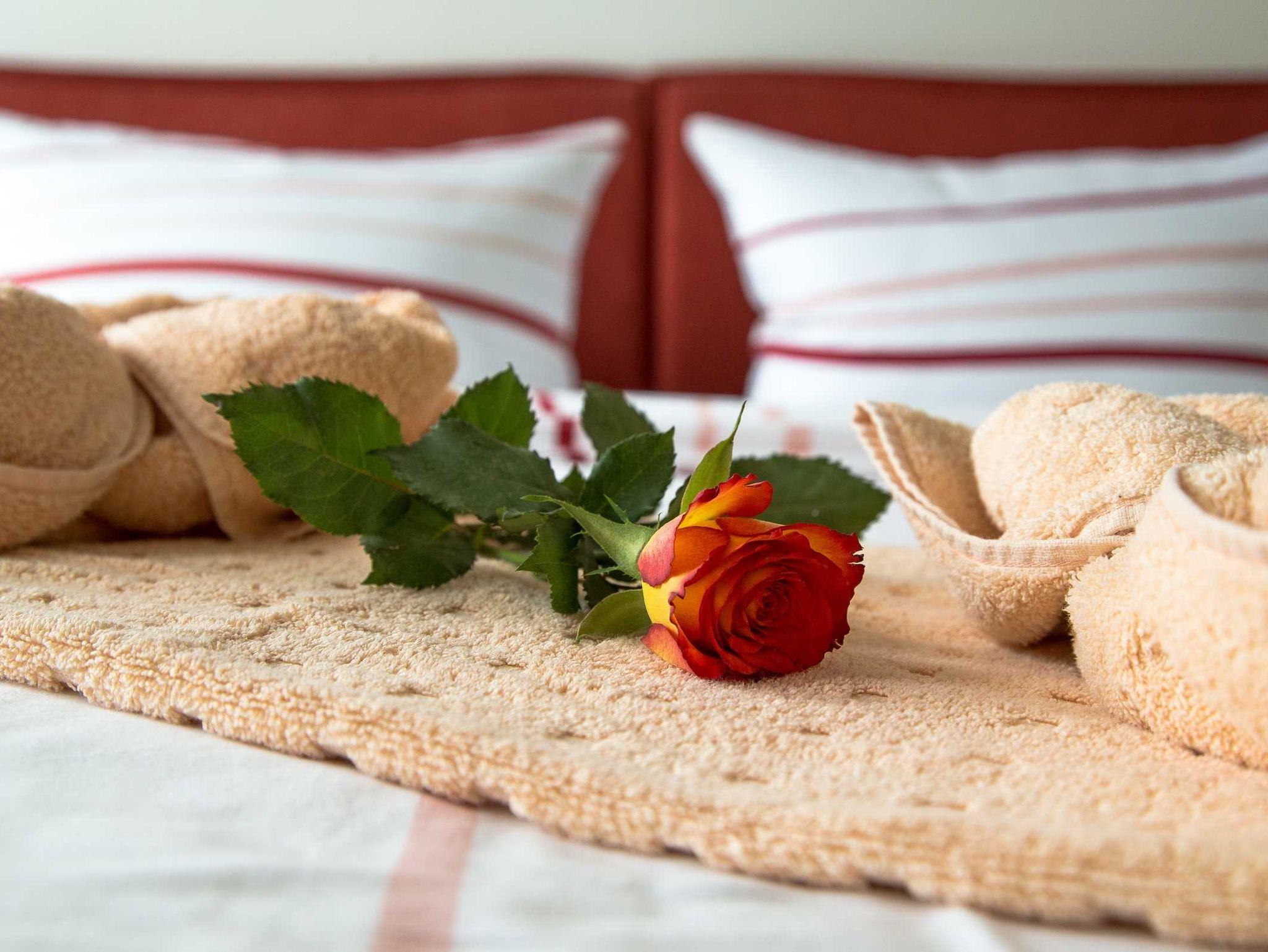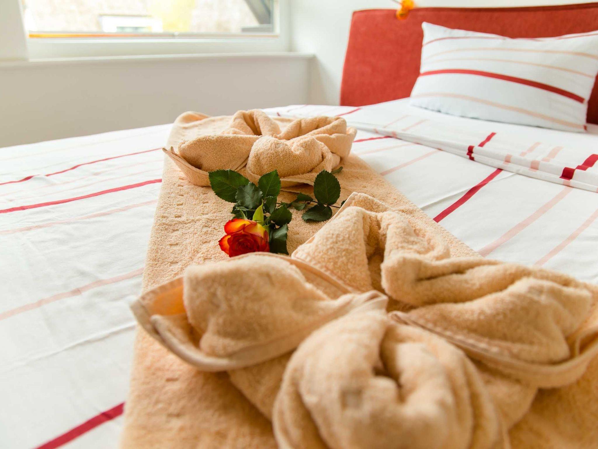 • Erstausstattung: Bettwäsche + 2 Handtücher + 1 Duschtuch p. P. ist inklusive, die Betten sind bei Anreise bezogen