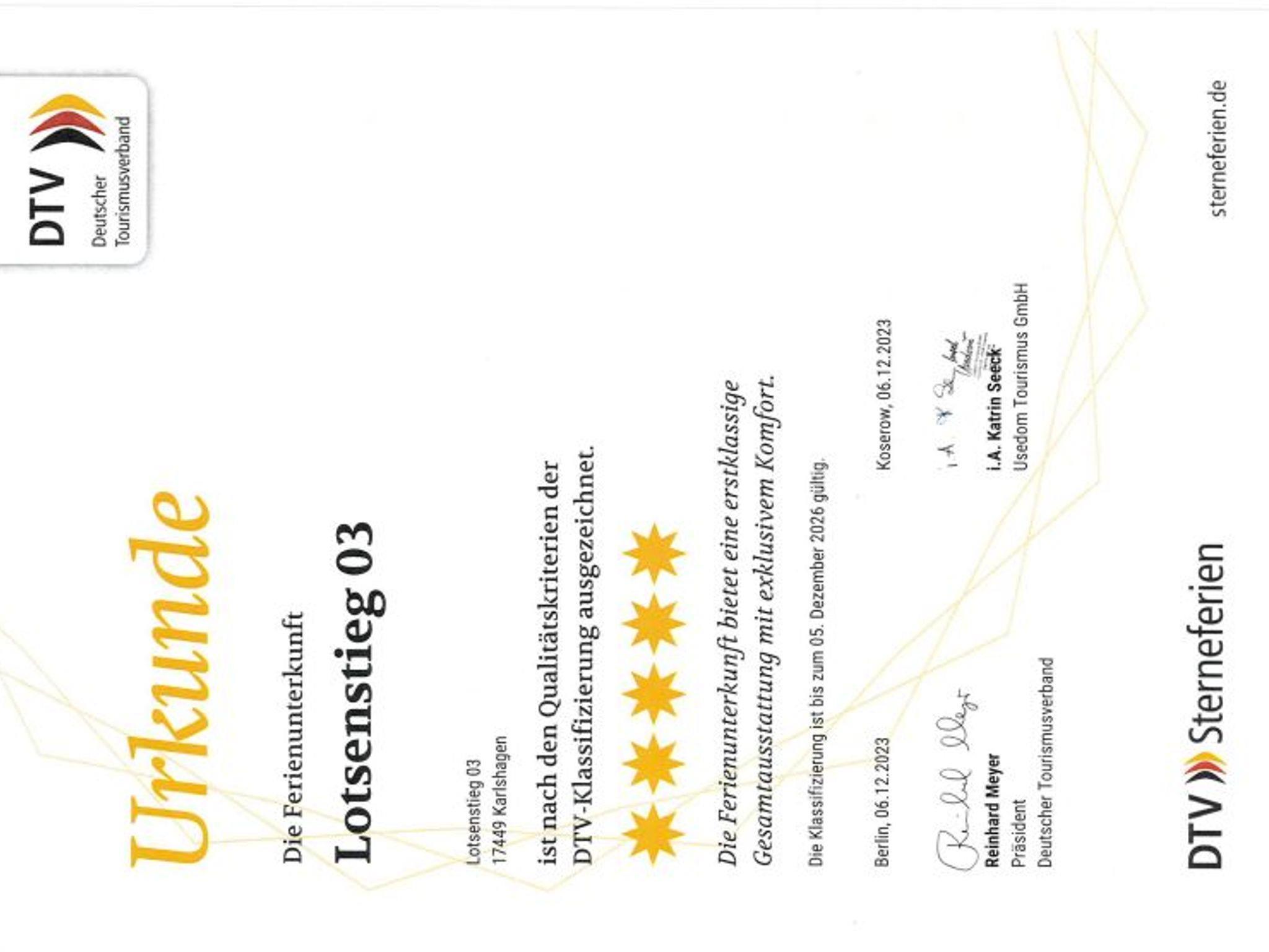Das Ferienhaus wurde vom Deutschen Tourismusverband mit 5 Sternen ausgezeichnet.