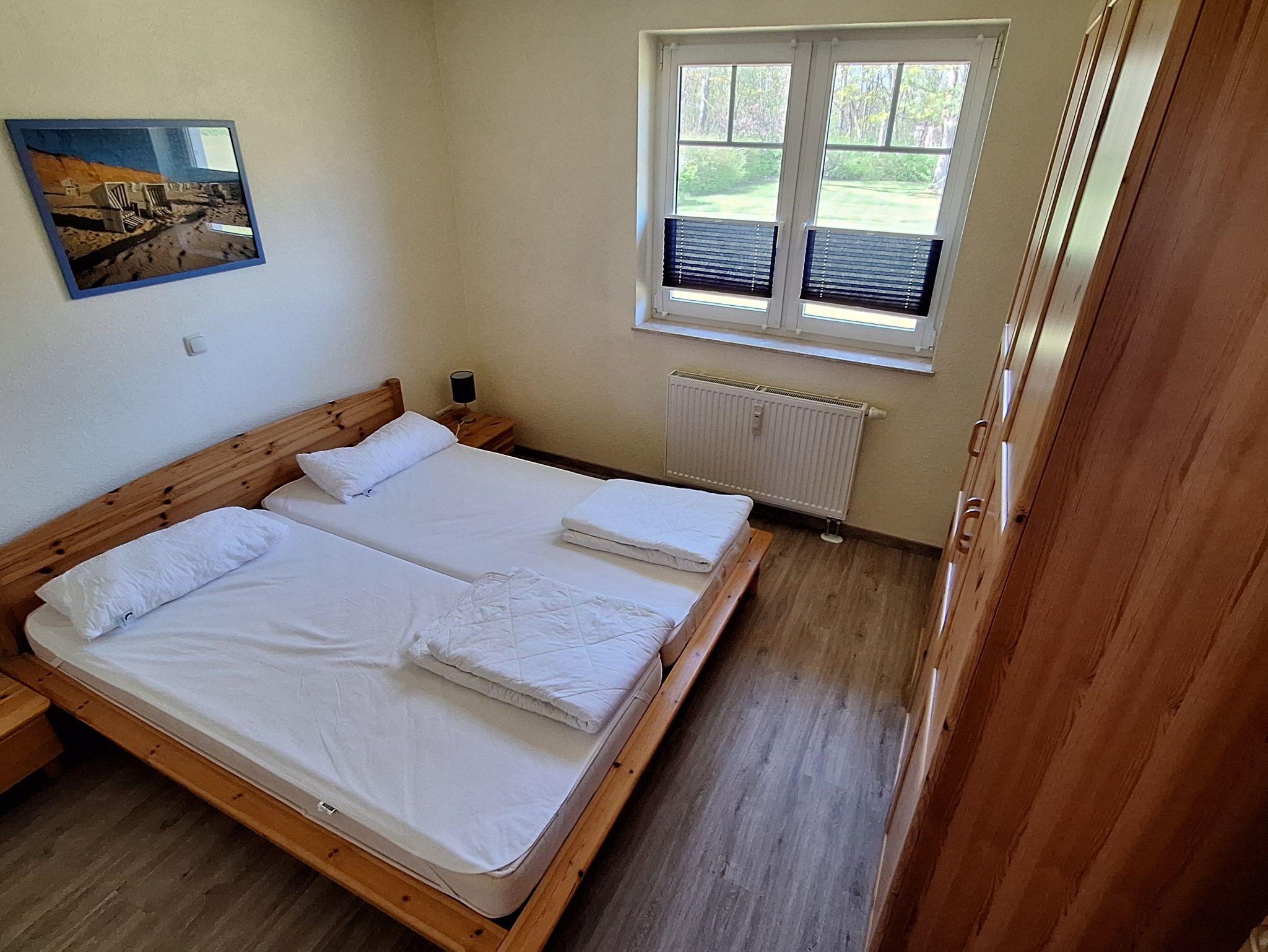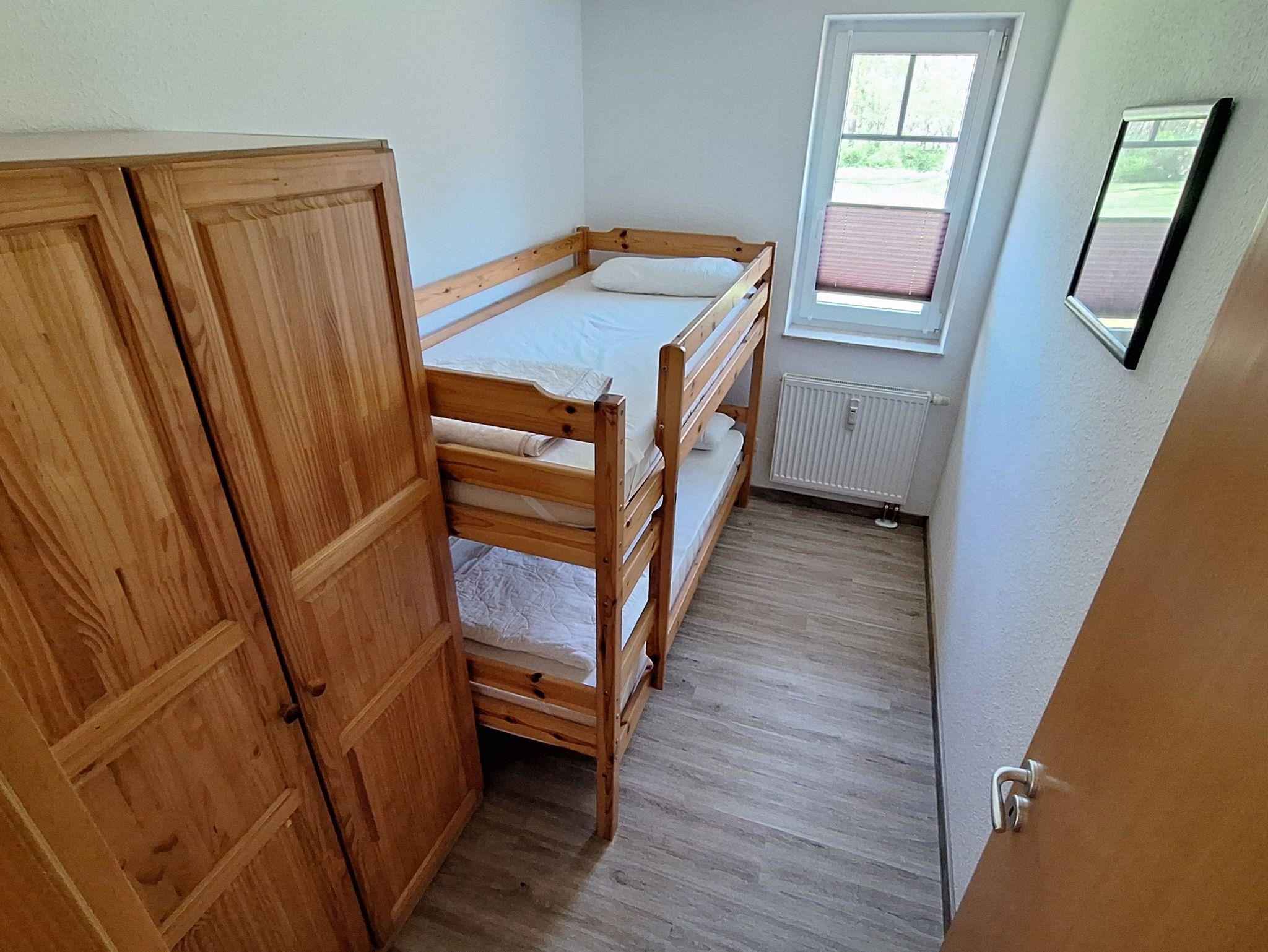 1 Schlafzimmer mit Doppelbett, 1 kl. Schlafzimmer mit 1 Etagenbett.
