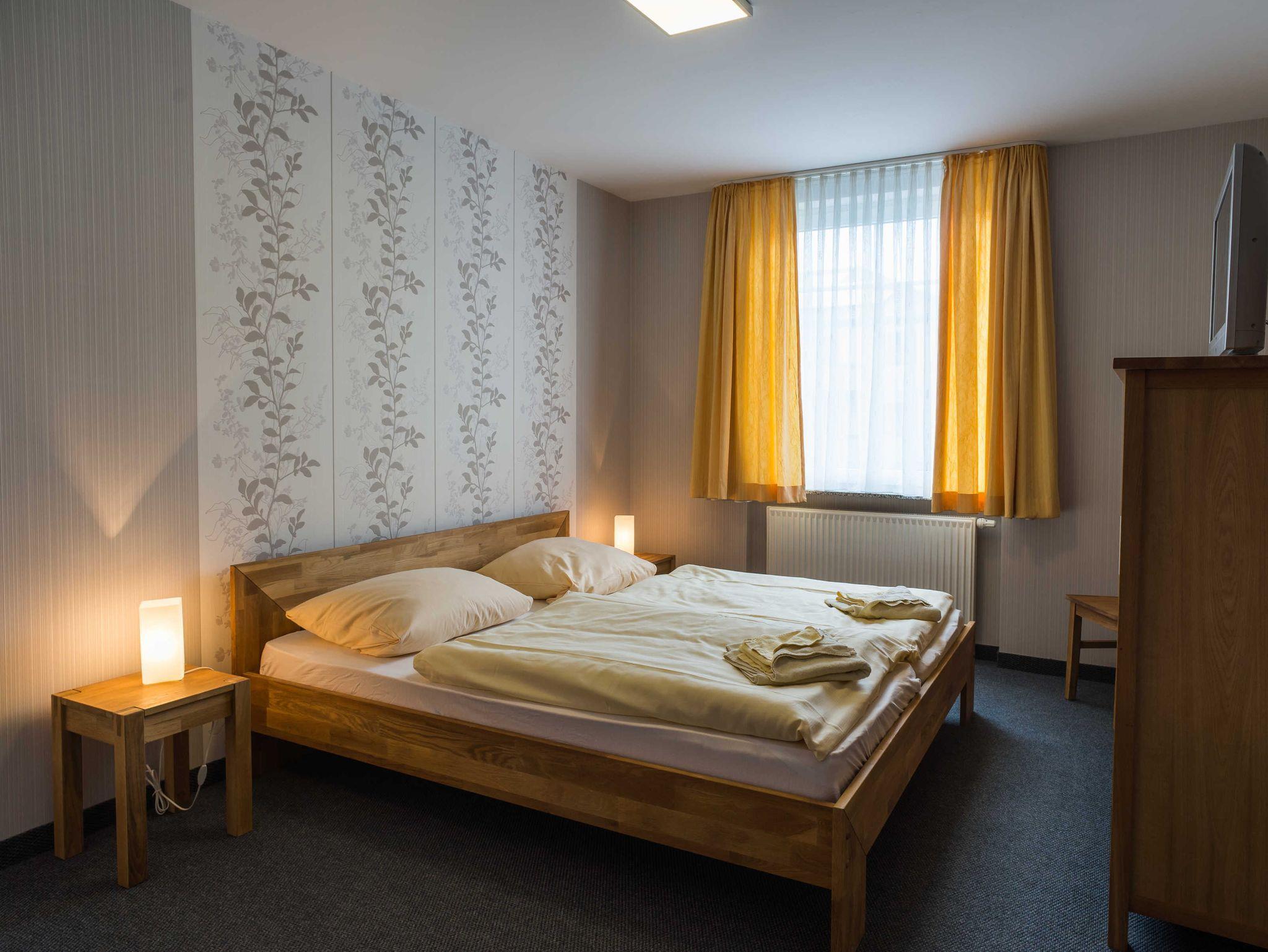 Die beiden Schlafzimmer sind mit einem Doppelbett (2mal 90/200) bzw. Einzelbetten (90/200) und Schrank ausgestattet und sind von der Straße abgewandt.