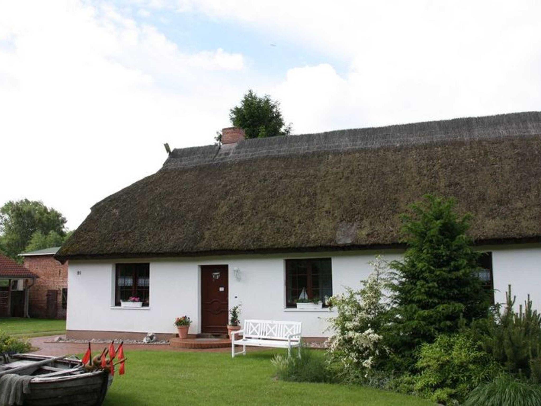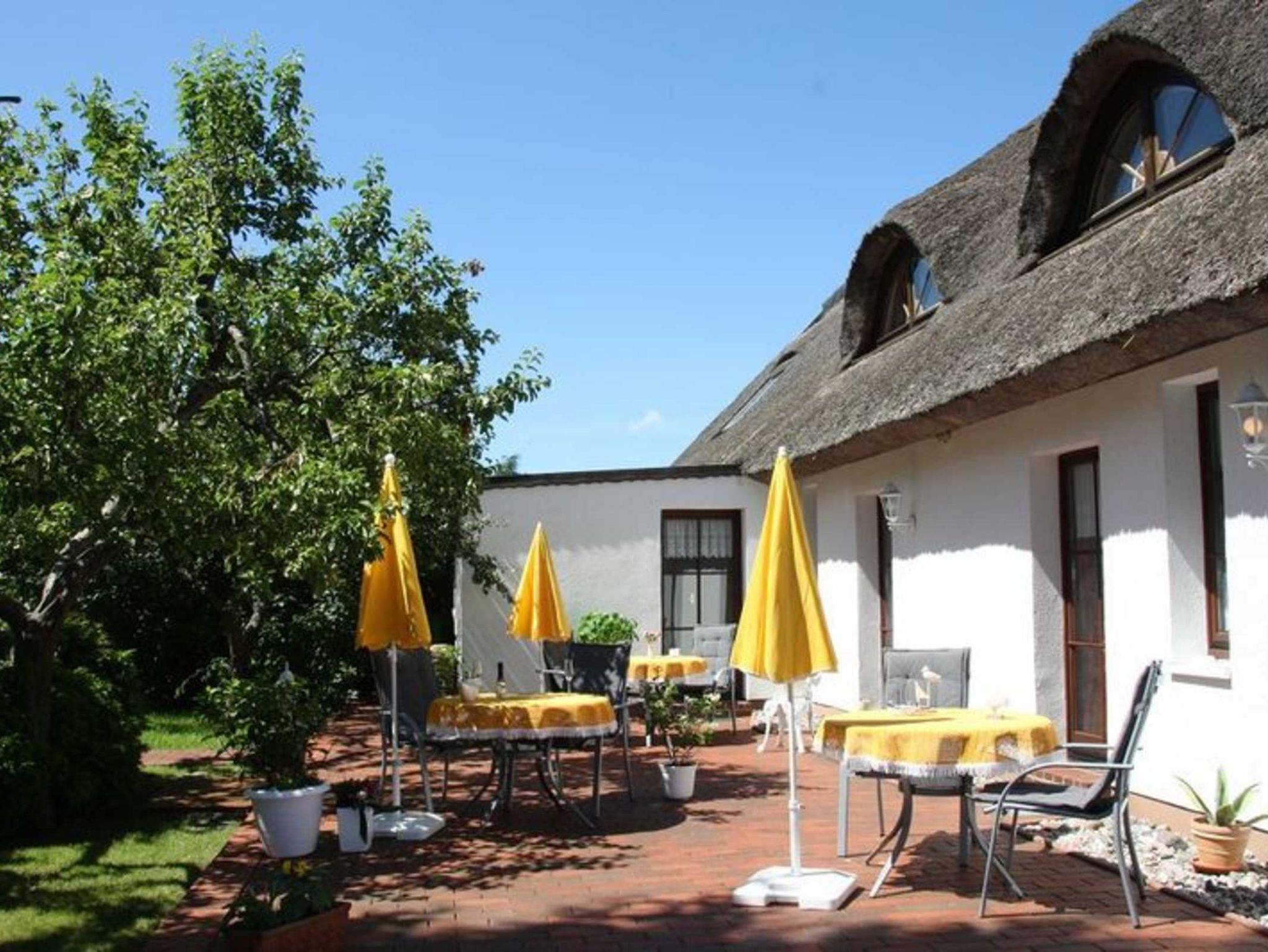 Das voll sanierte alte Reetdach - Fischerhaus Baujahr 1857 verfügt über vier gemütliche Ferienwohnungen mit Südterrasse und Liegewiese inmitten alter Bäume. Im Jahr 2021 erhielt das Gebäude ein neues Reetdach.