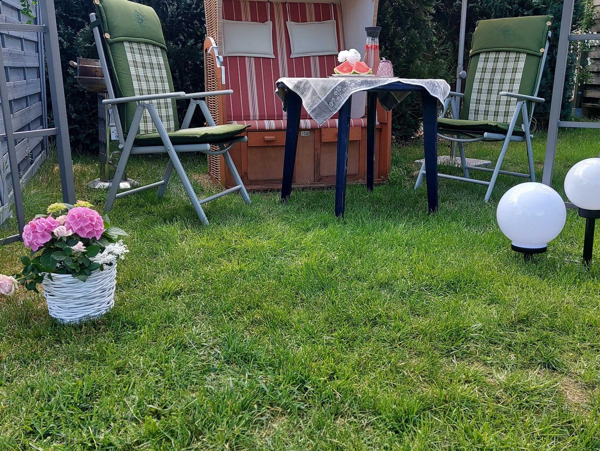 Zur Unterkunft gehört ein Parkplatz direkt am Haus. Im gepflegten Garten können Sie auf einer gemütlichen Sitzgelegenheit oder im Strandkorb entspannen. Eine Grillmöglichkeit steht ebenfalls zur Verfügung.