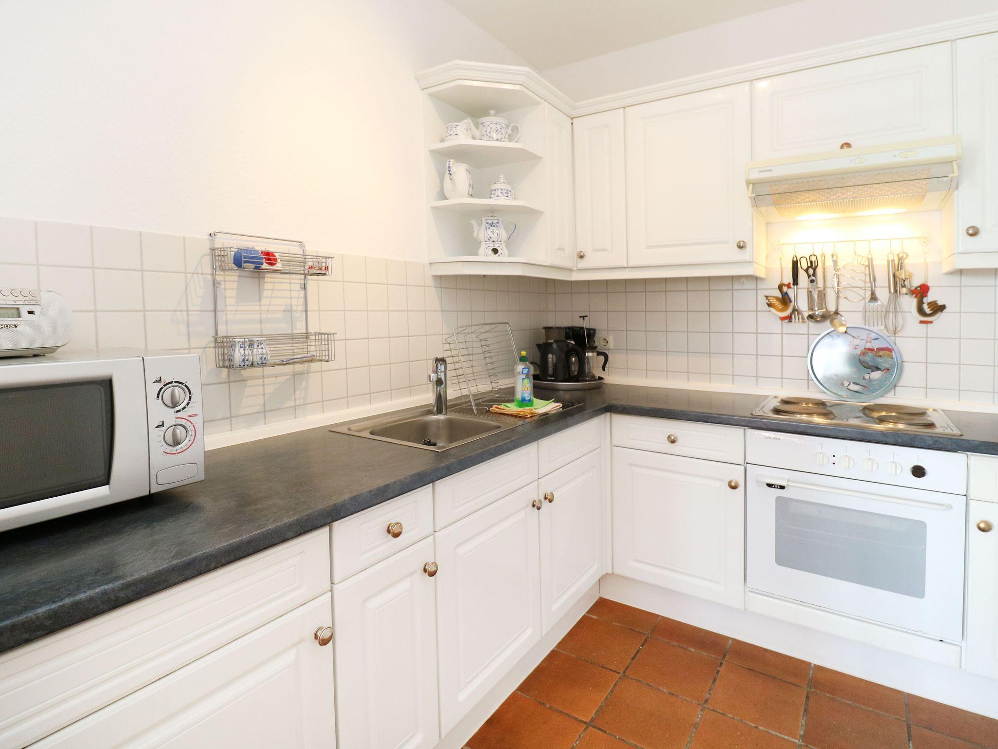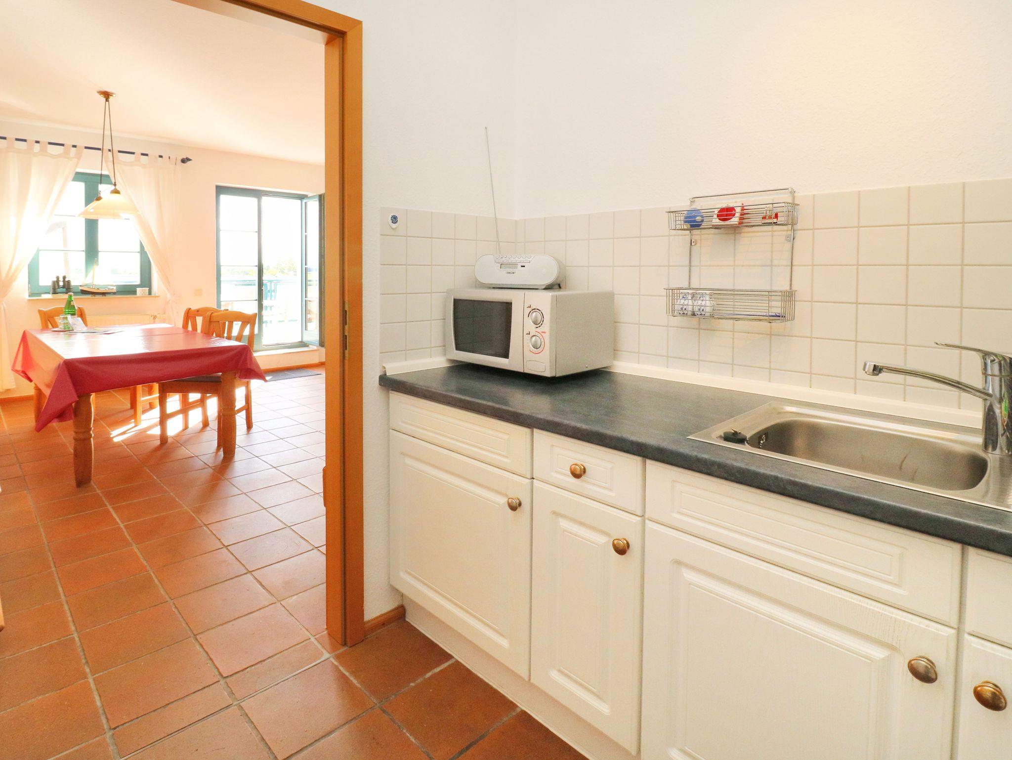 Ein besonderes Highlight ist der große Balkon mit Sitzmöbeln und zwei Strandkörben, von dem aus Sie den Blick auf den Yachthafen und die vorbeiziehenden Boote genießen können. Die Küche ist gut ausgestattet und bietet alles, was Sie für die Zubereitung von Mahlzeiten benötigen. Das Badezimmer verfügt über eine Dusche.