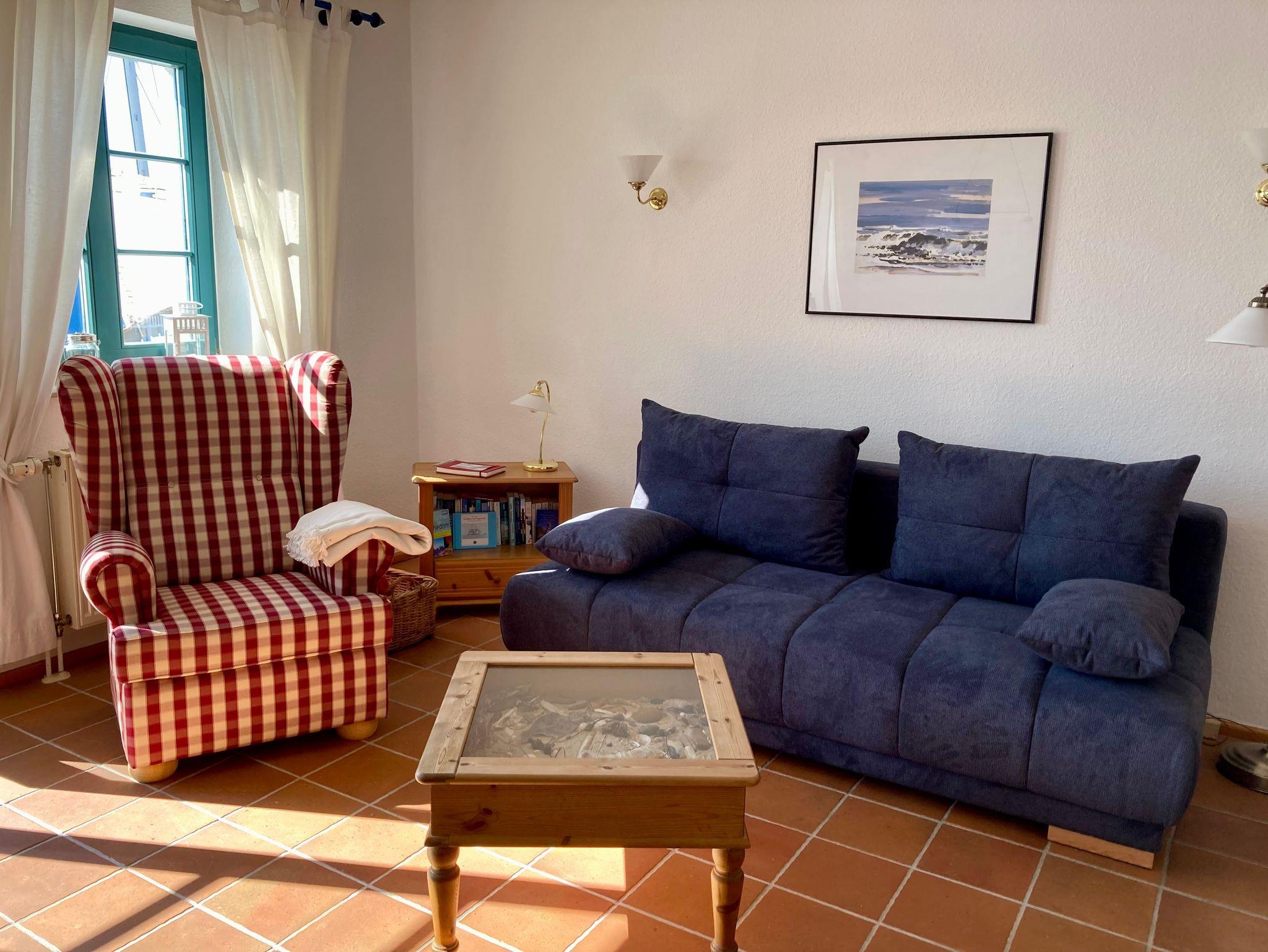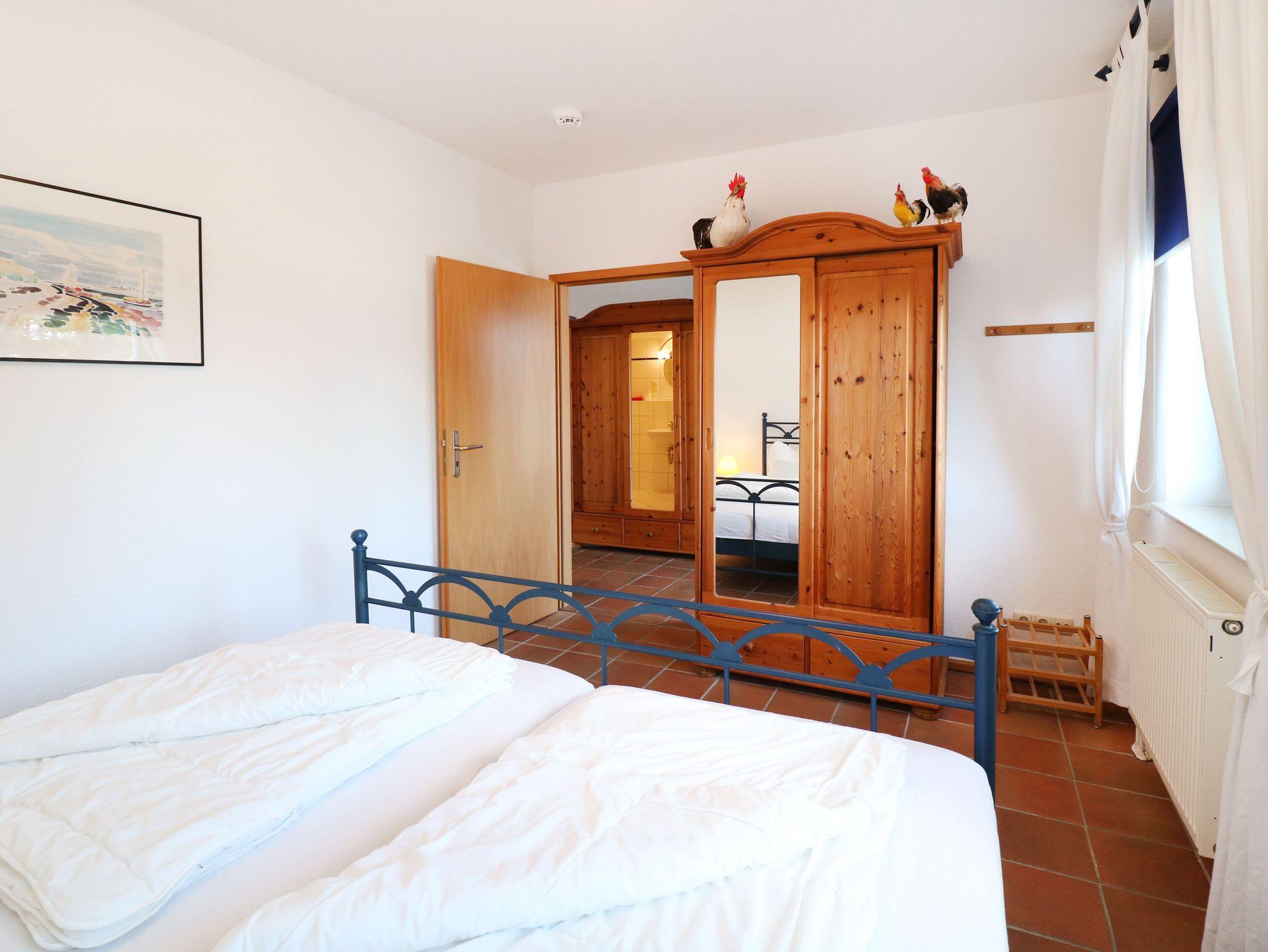 Diese 2-Raum-Ferienwohnung im ersten Obergeschoss bietet den perfekten Rückzugsort für einen entspannten Ostseeurlaub. Das gemütliche Schlafzimmer ist mit einem komfortablen Doppelbett ausgestattet und bietet zusätzlich Platz für ein Babybett.