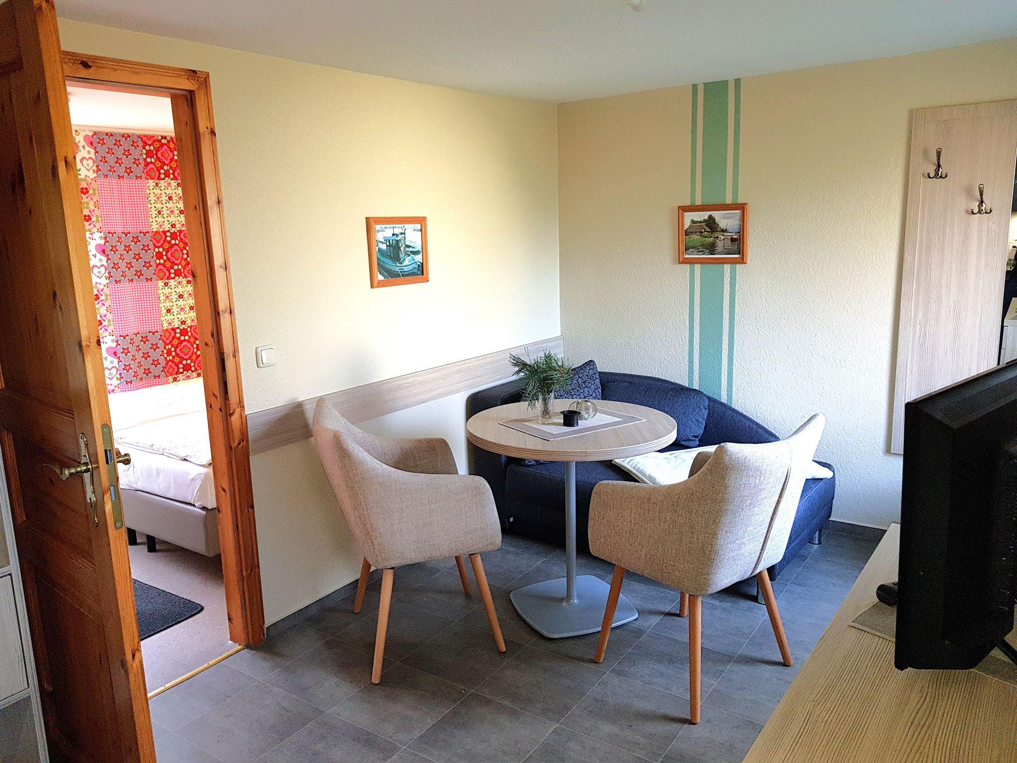 Sie wohnen in einer komplett ausgestattetem 25 m² 2-Raum-Ferienwohnungen mit hellen Möbeln. Die 2-Zi.-Wohnungen sind für 2 Personen und 1 Kind bis 12 Jahre ausgelegt und haben: ? 1 Wohnraum ? 1 Schlafzimmer, 2 Betten (Aufbettung im Wohnzimmer möglich), ? Dusche/WC ? Küchenzeile ? TV, ? Möblierte Terrasse, Liegewiese ? Parkplatz am Haus
