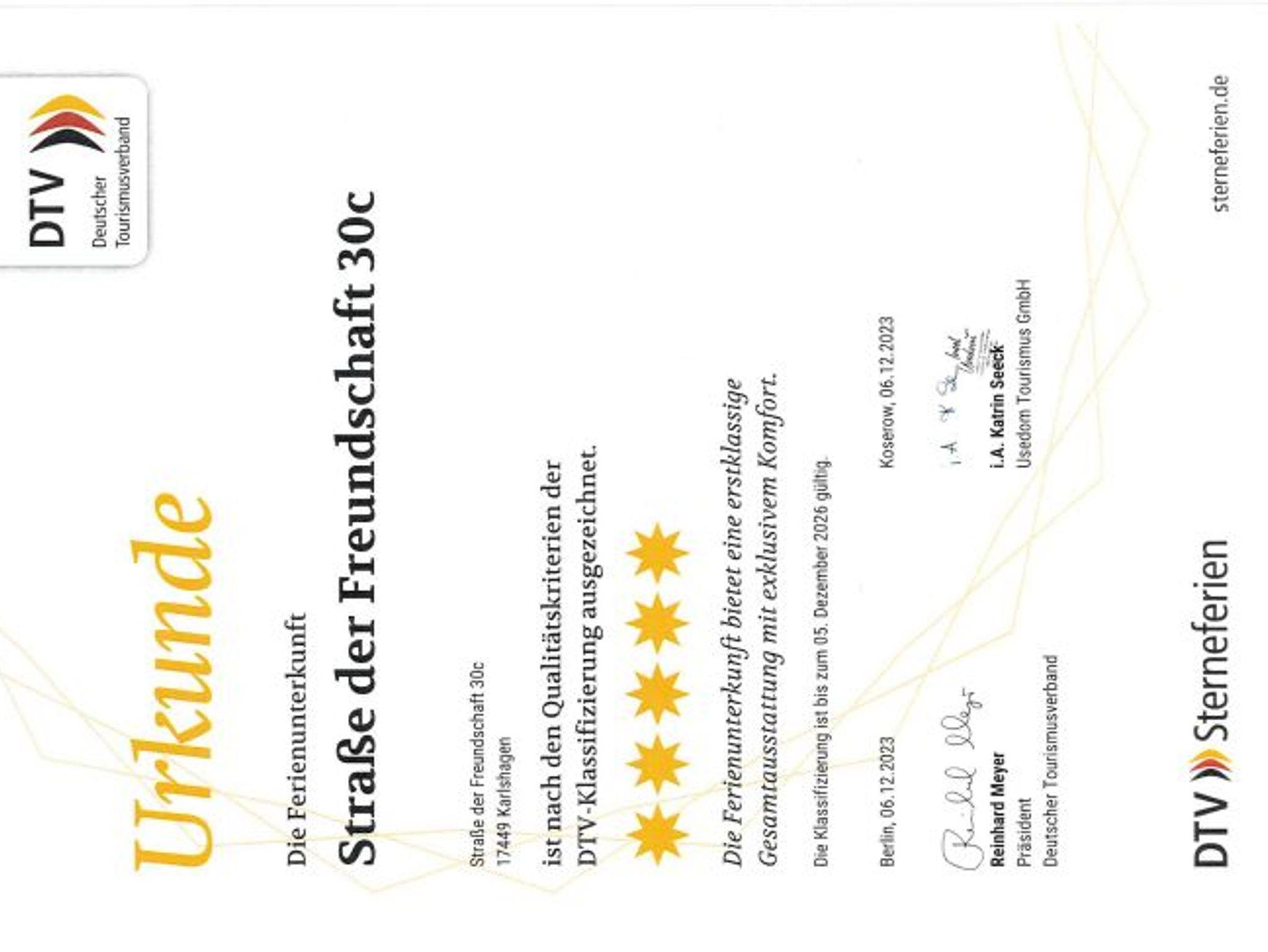 5-Sterne-Klassifizierung durch den Deutschen Tourismusverband.
