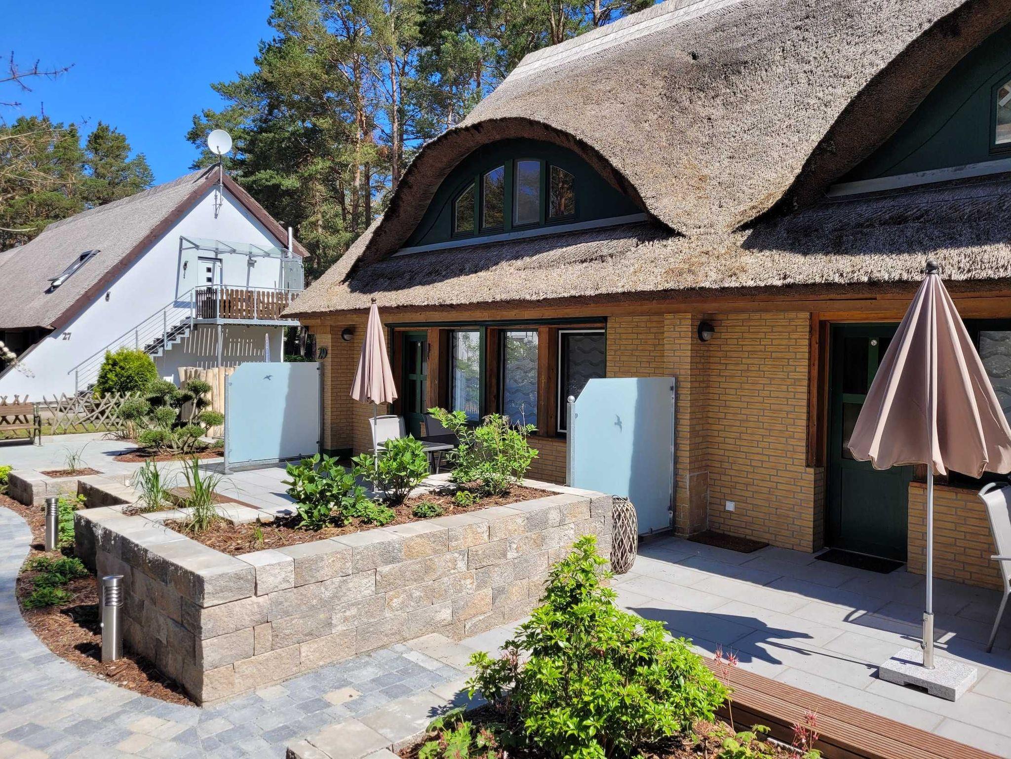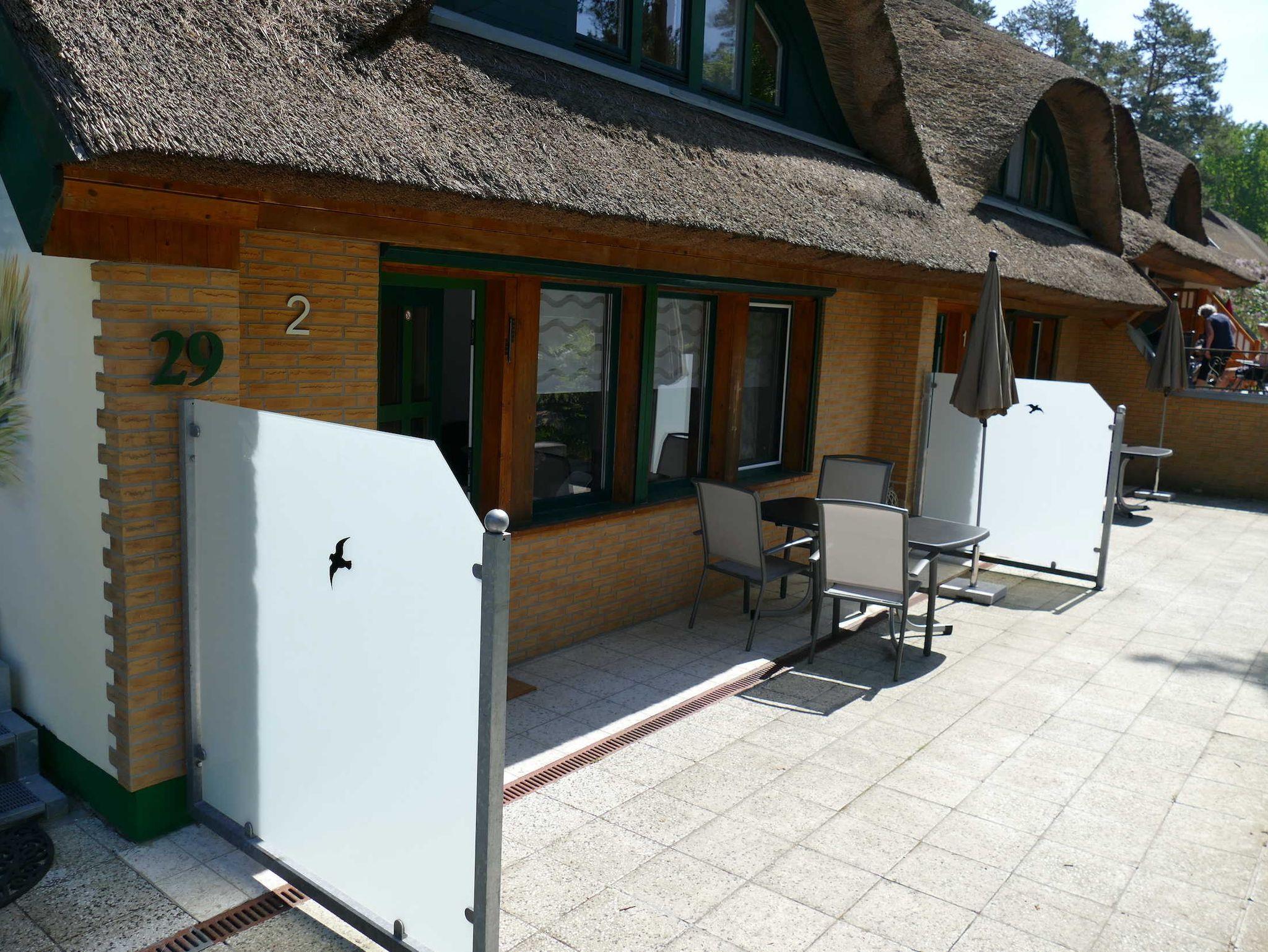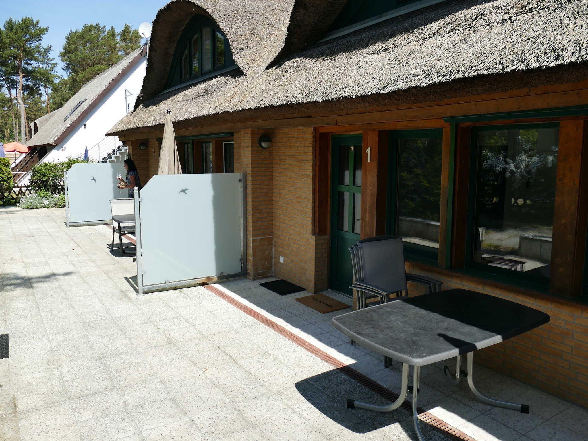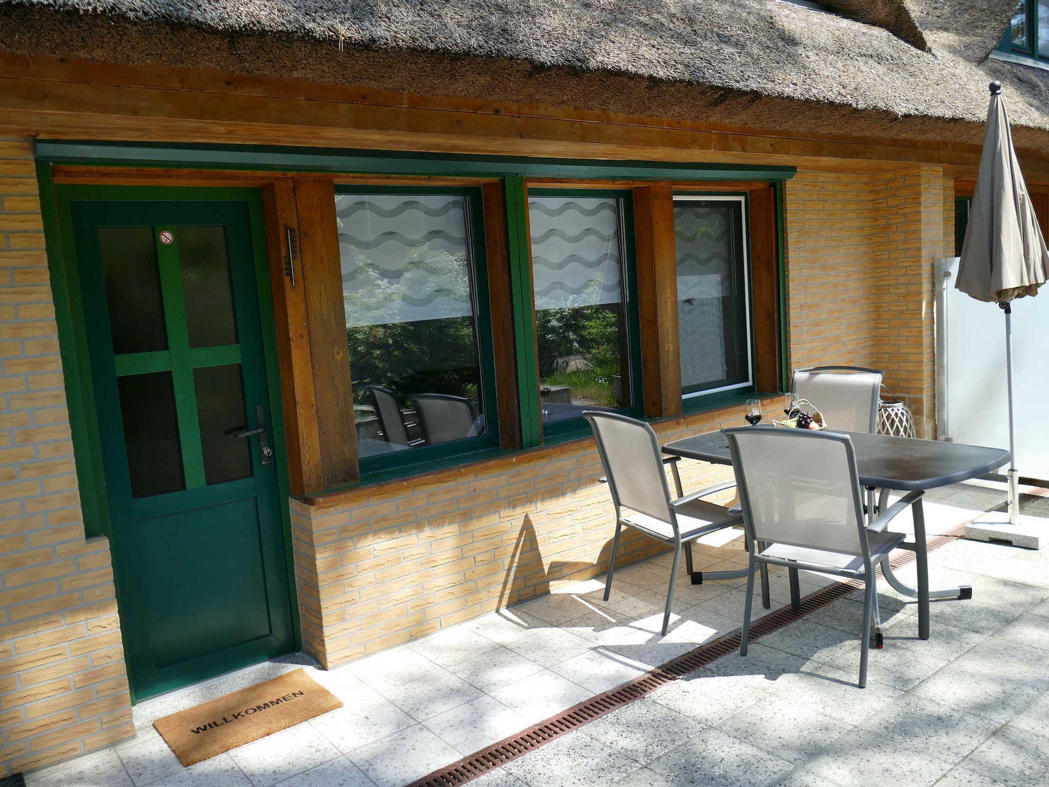 ZZwei-Raum-Ferienwohnung vom TypZ1 mit Terrasse, im Reetdachhaus direkt hinter der Düne, im Ferienhaus Zeltpaltzstraße 29.