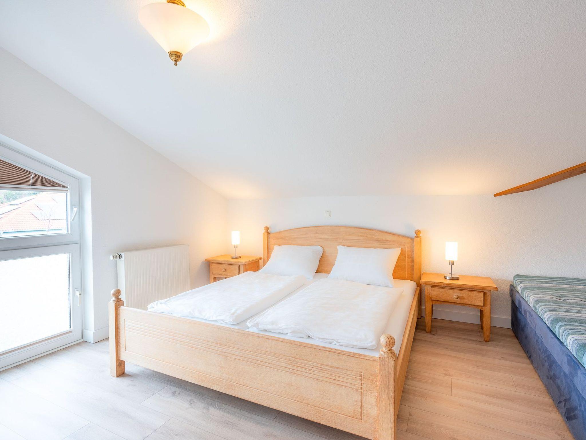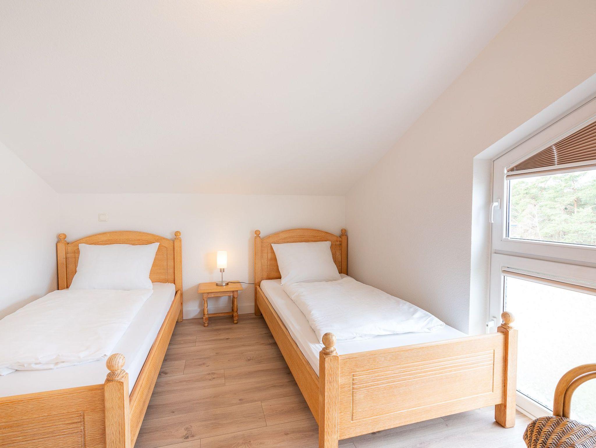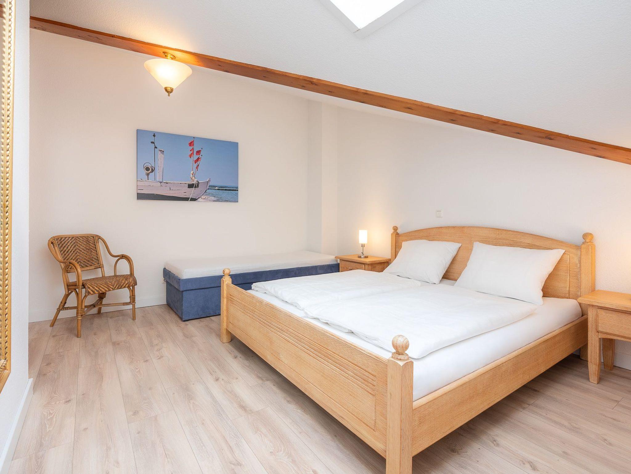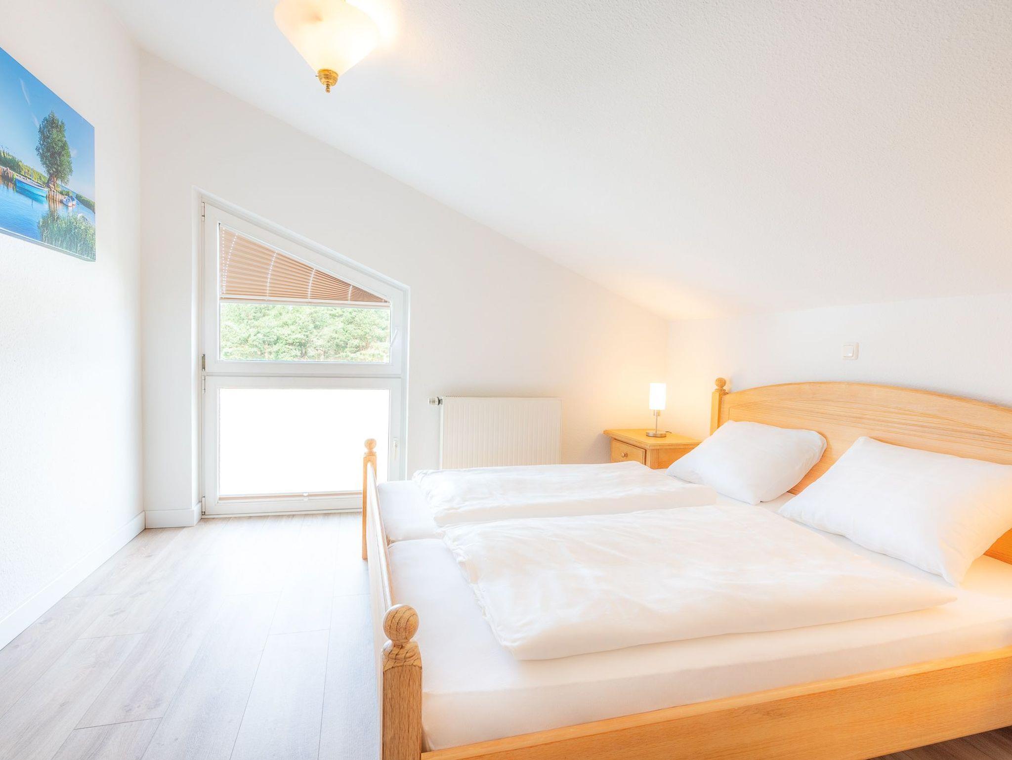 In dem Wohnraum mit Sitzecke und Fernseher können SIe gemütlich zusammensitzen und die Zeit in der Ferienwohnungenießen. Die komplett eigerichtete Küche ermöglicht Ihnen eine bequeme Selbstversorgung während Ihres Urlaubs. Das Bad auf der unteren Etage besitzt eine Dusche und ein WC. In der oberen Etage befinden sich die drei Schlafzimmer, zwei sind mit jeweils einem Doppelbett versehen und eins mit zwei Einzelbetten. Hier befindet sich auch ein zweites Bad. Auf dem möblierten Balkon können Sie Ihren Tag gemütlich ein und ausklingen lassen. WLAN ist vorhanden. Waschmaschine und Trockner können Sie gegen Entgelt verwenden. Ein Parkplatz vor dem Haus wird Ihnen natürlich zur Verfügung gestellt. Zum feinsandigen, weißen Badestrand sind es nur ca. 3-4 Gehminuten.