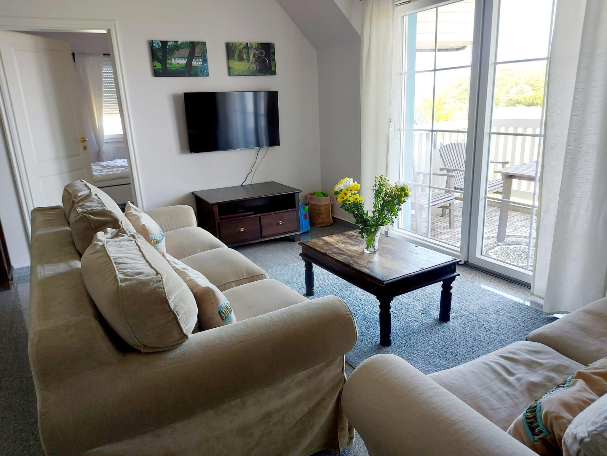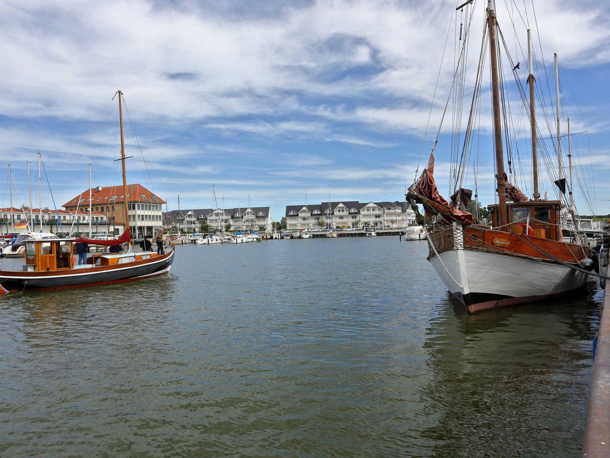 Moderne Ferienwohnung am Hafen von Karlshagen mit Balkon und Panoramablick.