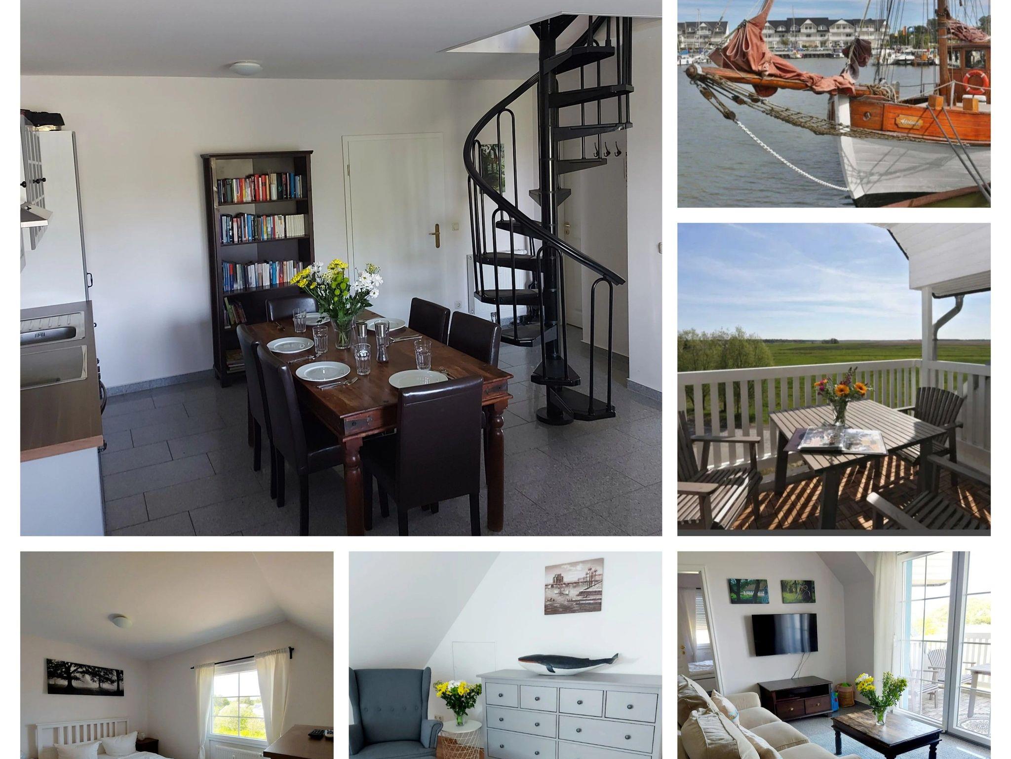 Direkt am Yachthafen gelegene, großzügige und hochwertig ausgestattete Ferienwohnung. Die Maisonettewohnung verfügt über einen Balkon mit Panoramablick, einen offenen Wohn- und Küchenbereich mit großem Esstisch und einer gut ausgestatteten Küche mit Geschirrspüler, Ceranfeld, Backofen, Kühlschrank, Kaffeemaschine, Mikrowelle, Wasserkocher, Saftpresse und Toaster. Ein Elektrogrill steht zur Verfügung zum Grillen auf dem Balkon.