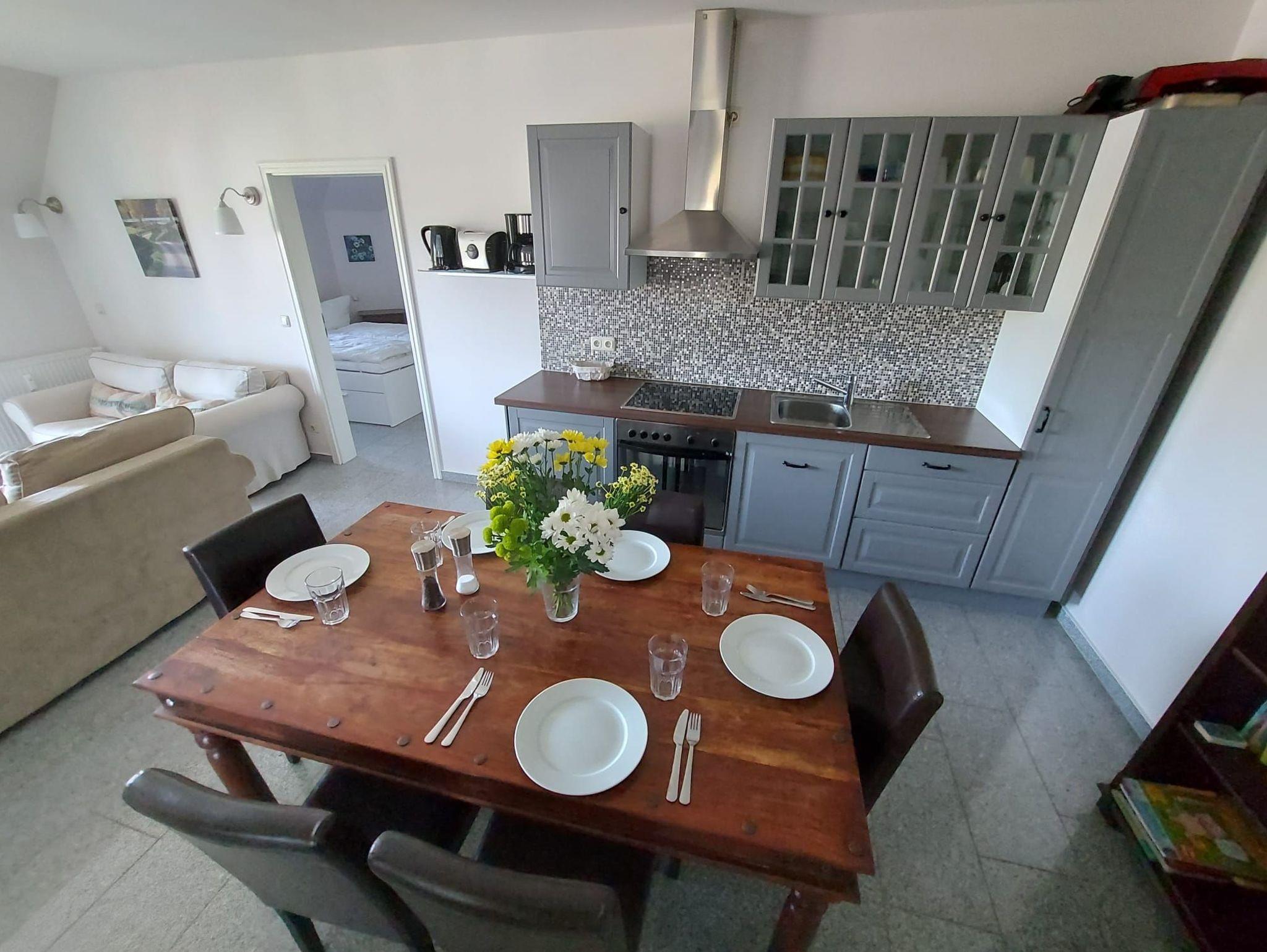Die Ferienwohnung ist kinderfreundlich ausgestattet mit Kinderstuhl, Kinderbett, Toilettensitz, Kinderbücher und Spielzeug. Direkt vor der Tür befindet sich ein Spielplatz, welcher im Frühjahr 2024 neu gestaltet wurde.