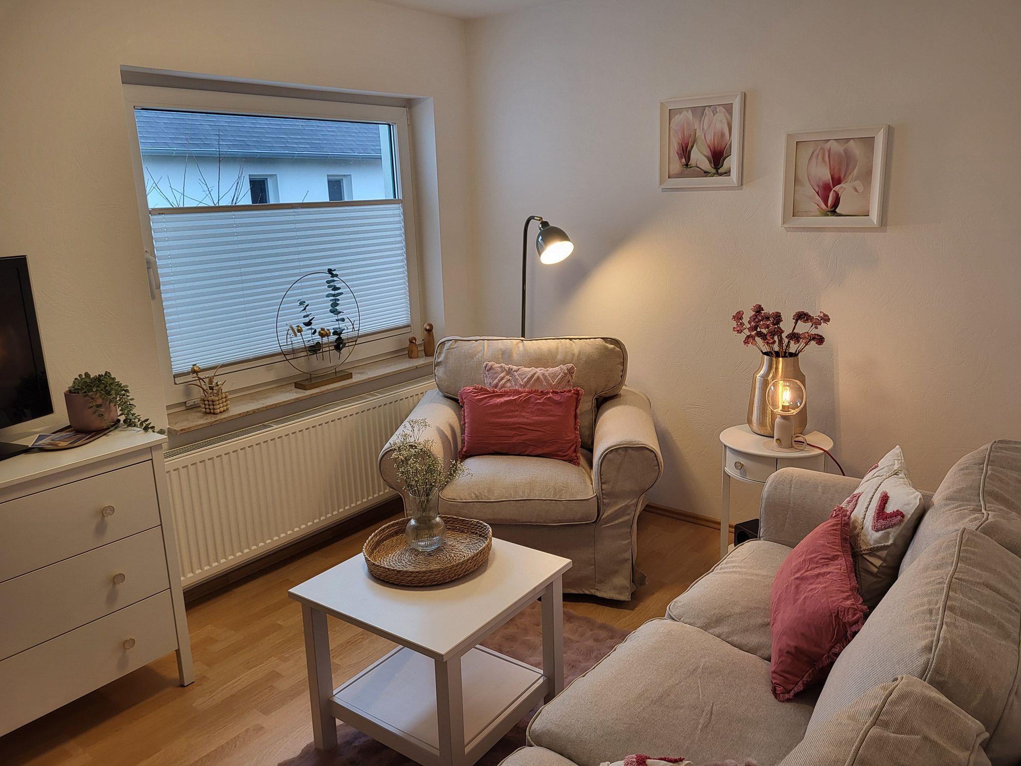 Das geräumige Ferienhaus bietet auf 60 m² Platz für bis zu vier Personen und ist ideal für Familien oder kleine Gruppen. Der helle Wohnraum ist mit einer gemütlichen Couchgarnitur (2- und 3-Sitzer), einem TV sowie einer voll ausgestatteten Küchenzeile eingerichtet. Diese verfügt über einen Backofen, ein Cerankochfeld, eine Geschirrspülmaschine, eine Mikrowelle, eine Kaffeemaschine und Geschirr für vier Personen. Ein Essplatz rundet den Wohnbereich ab und bietet ausreichend Platz für gemeinsame Mahlzeiten.