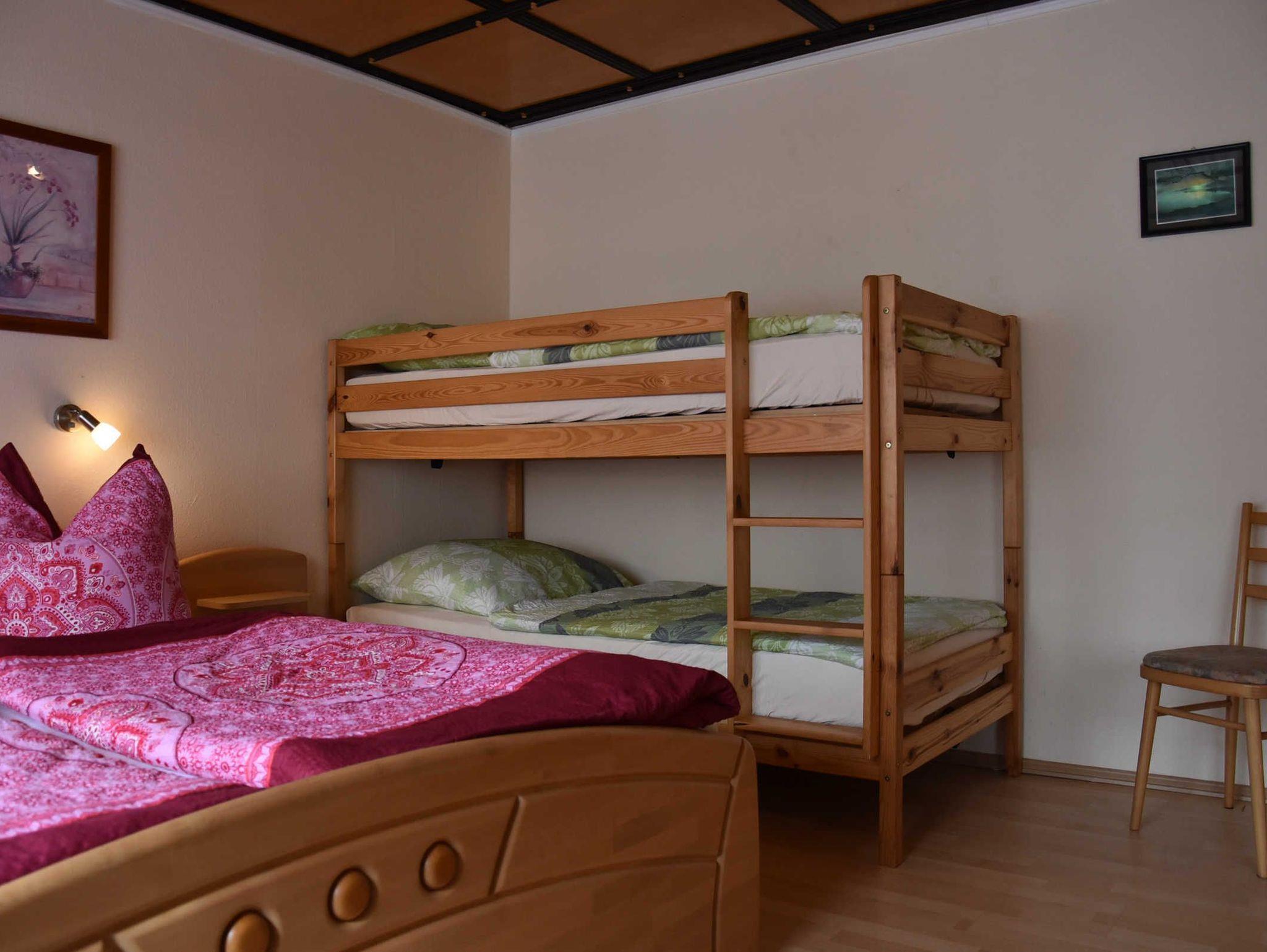 • Schlafzimmer mit Doppelbett und Etagenbett