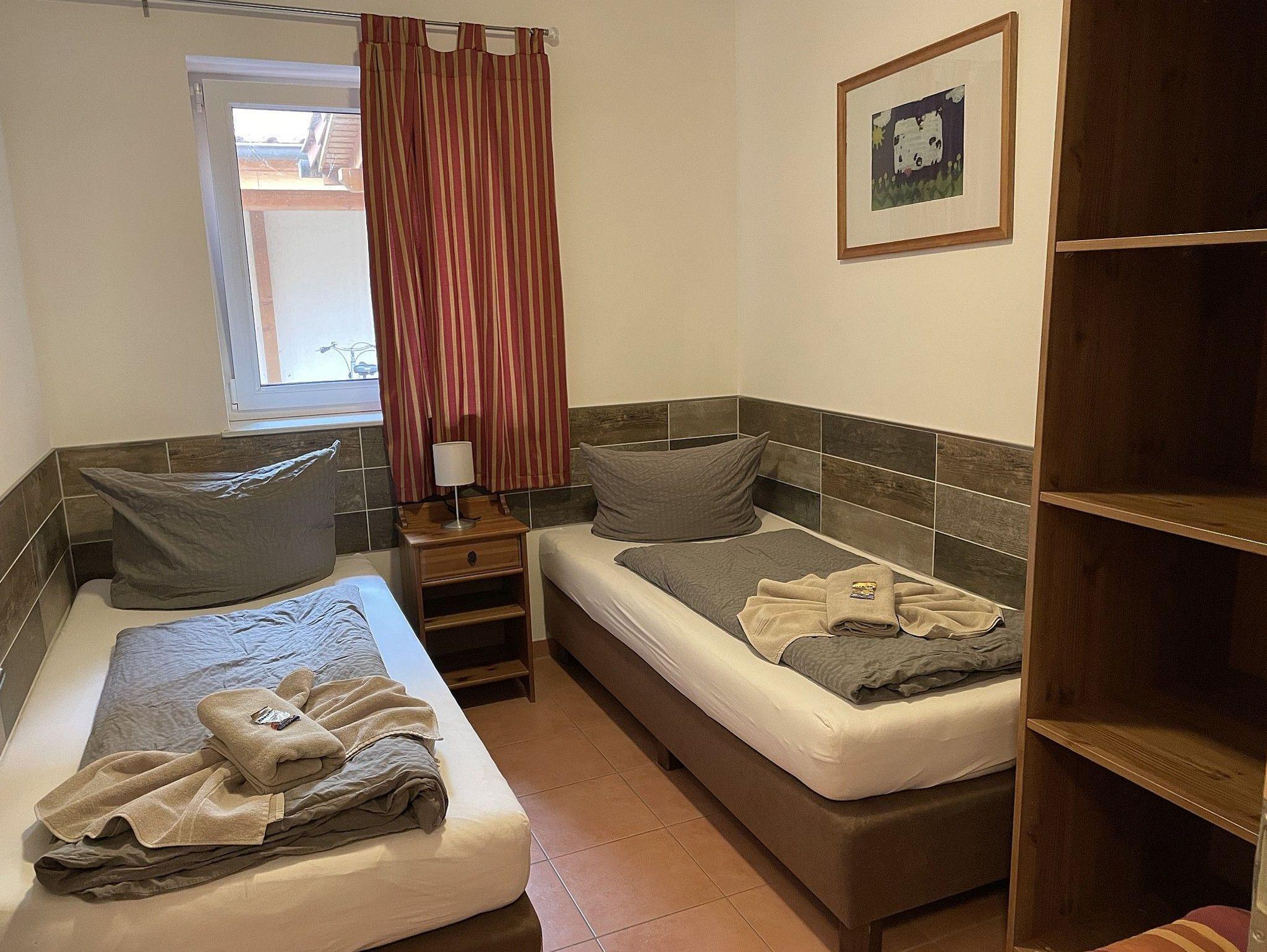 Das zweite Schlafzimmer verfügt über zwei einzeln stehende Betten.
