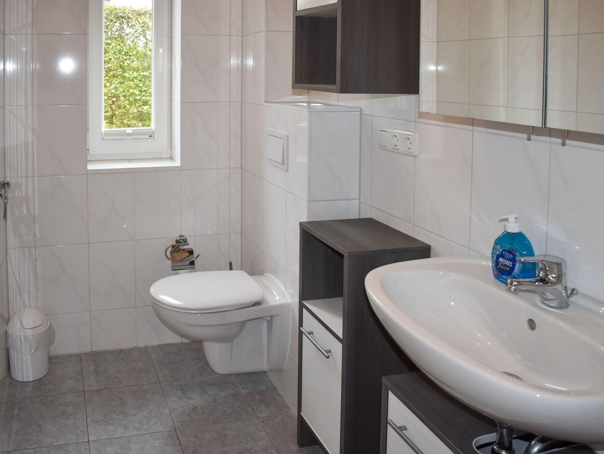 Damit früh niemand anstehen muss gibt es im Obergeschoß zudem ein zweites Badezimmer mit Dusche, WC, Waschbecken und reichlich Abstellmöglichkeiten. Sollten Sie sich länger auf der Insel aufhalten, können Sie die Waschmaschine im oberen Badezimmer benutzen.