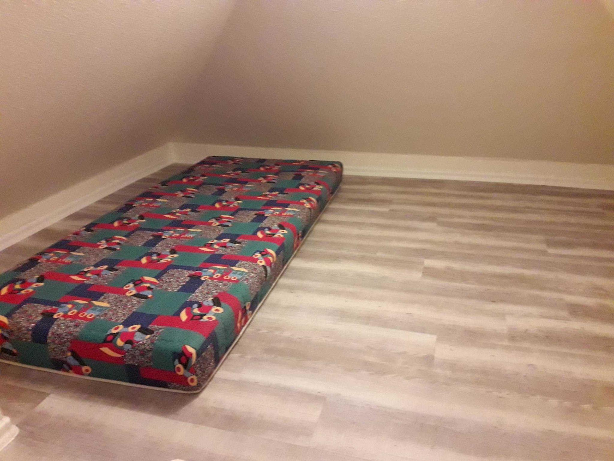 Im Schlafzimmer ist Platz für mindestens 1 Baby, das noch im Babybett schläft.