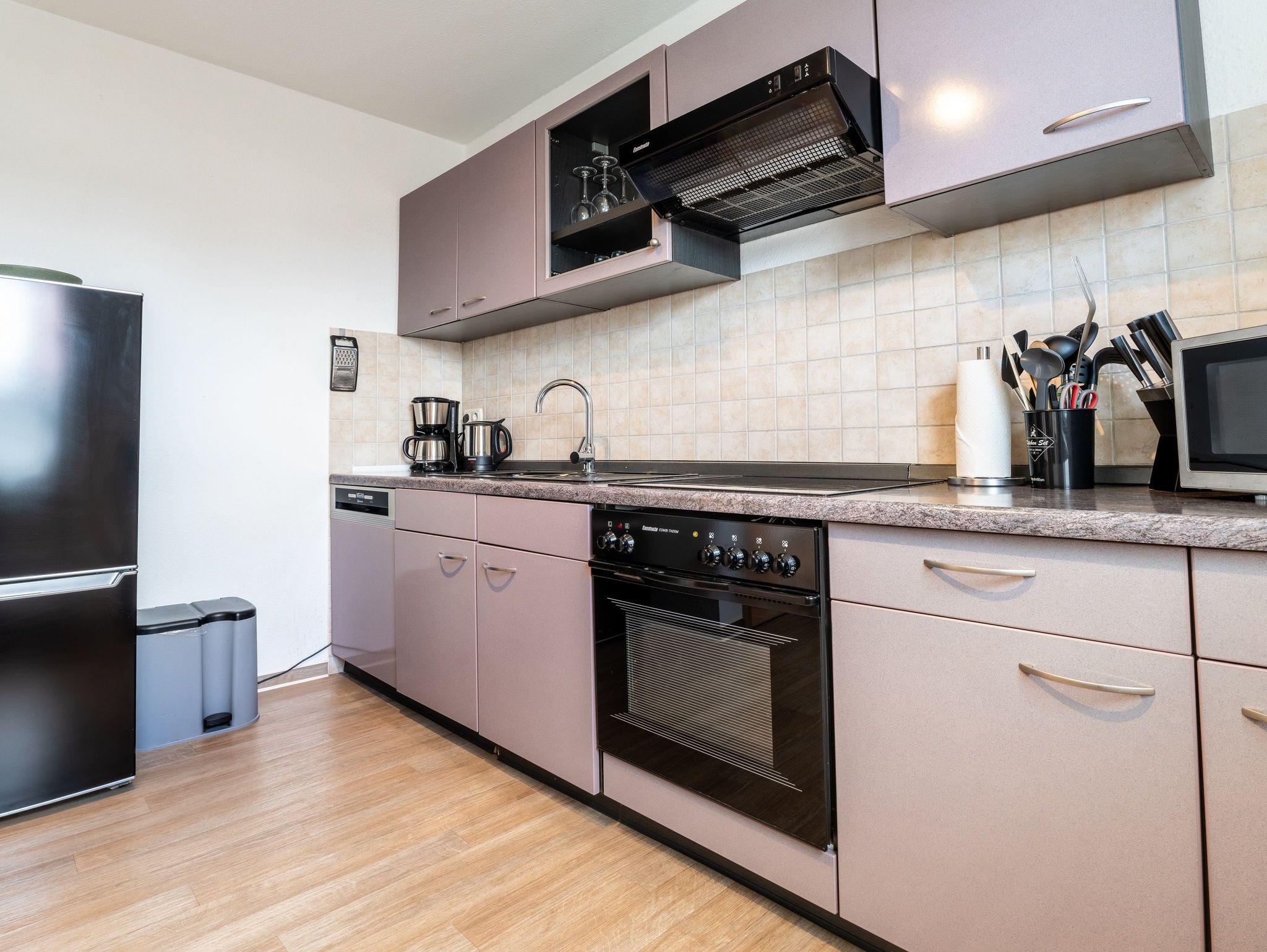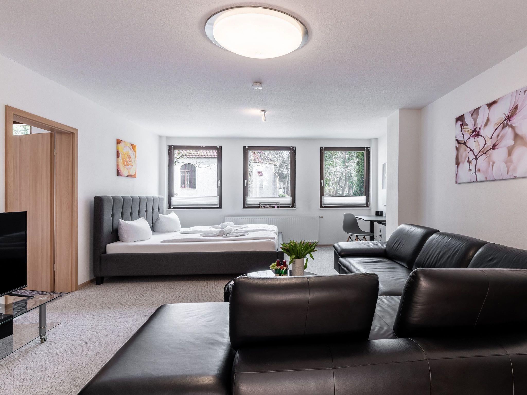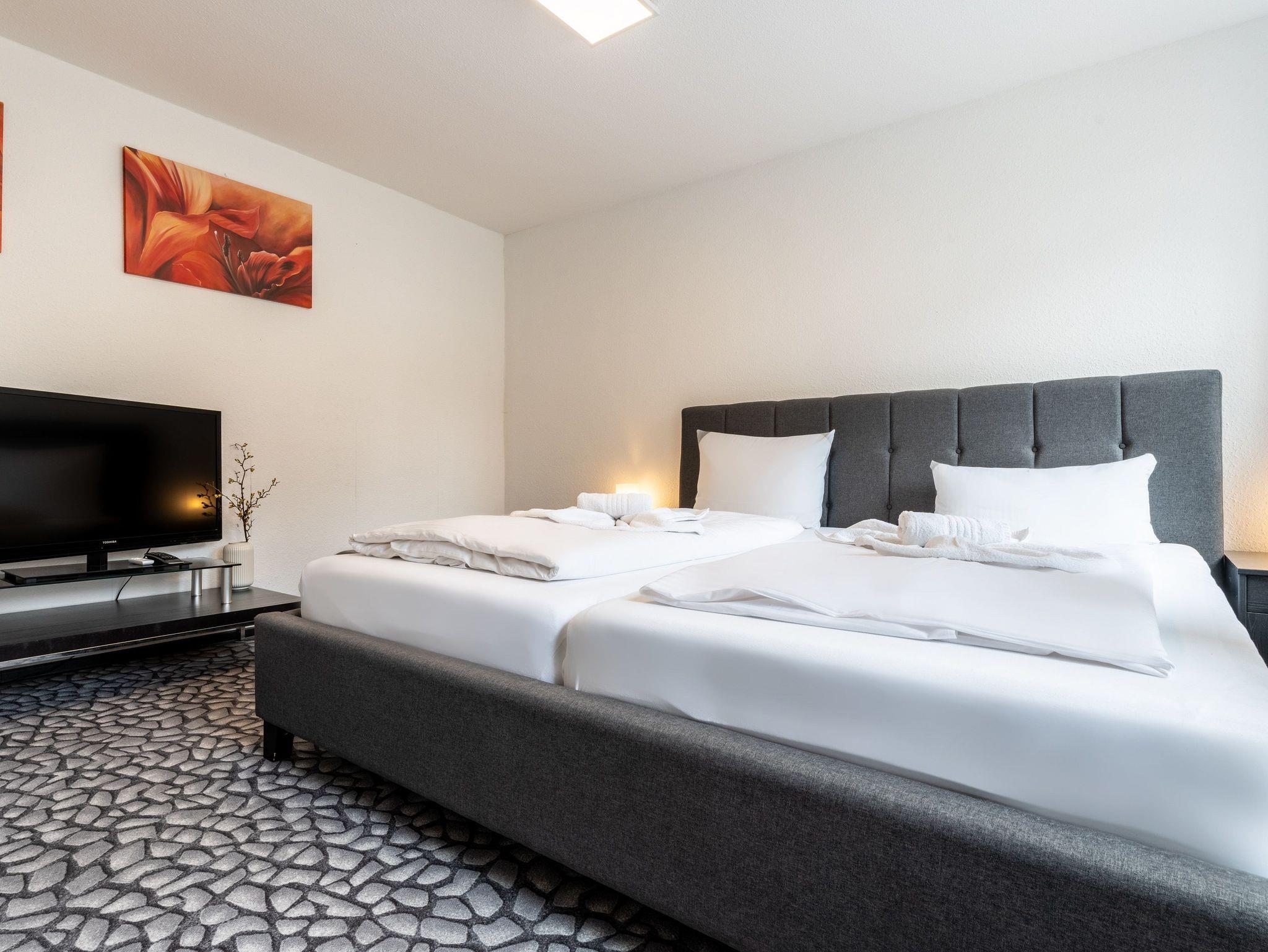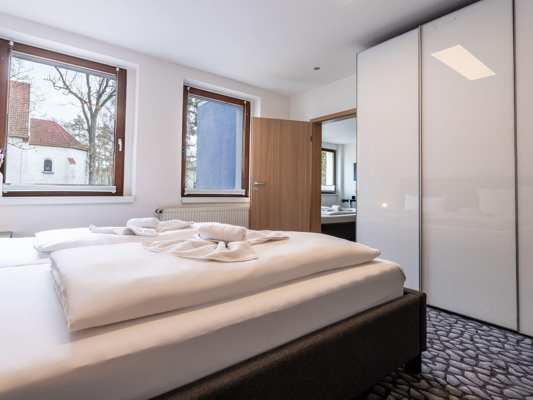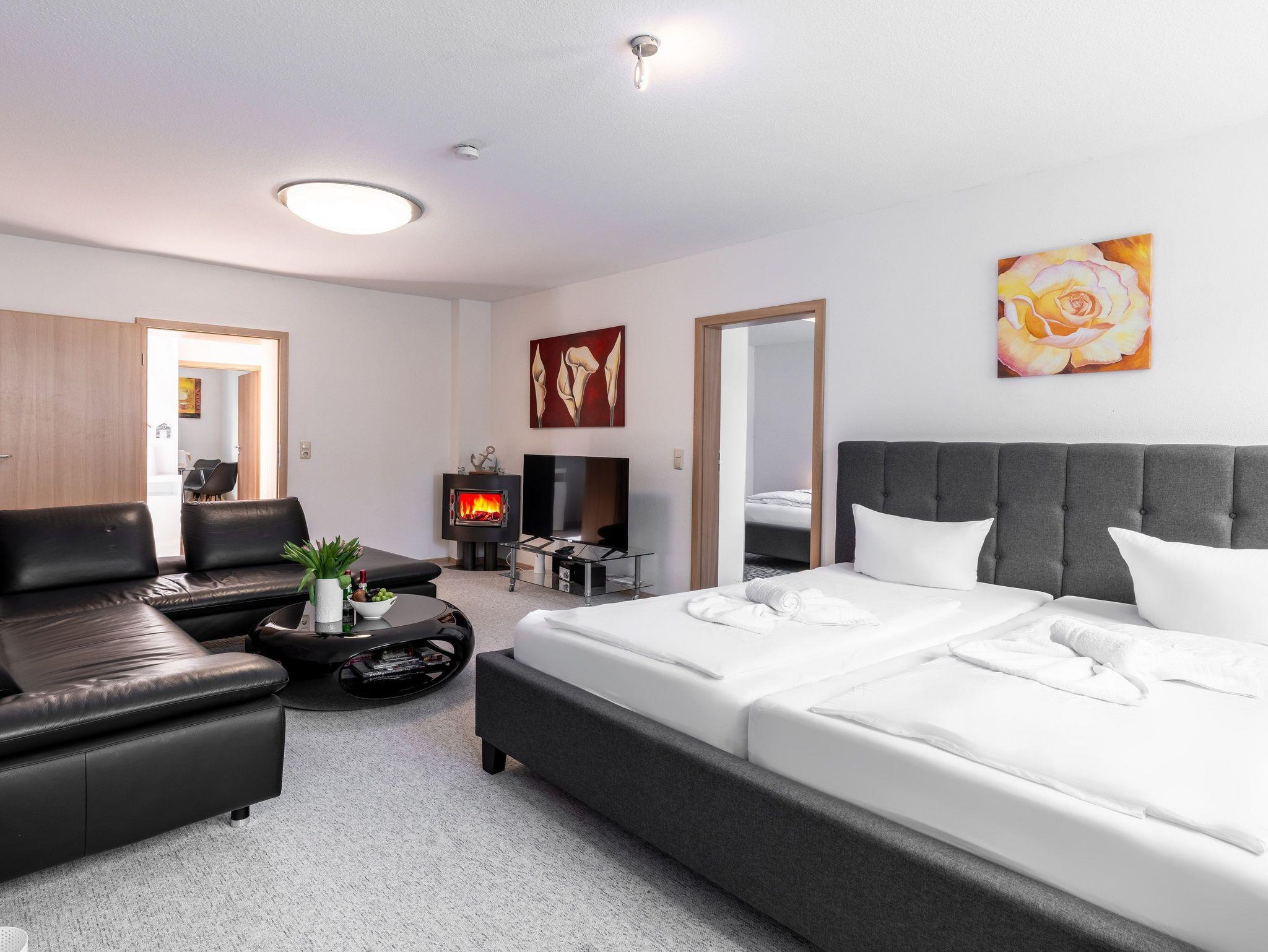 Auf 65 qm finden Sie Ruhe in einem Schlafzimmer mit zwei Schlafplätzen (Doppelbett (200x200)) und im gemütlichen Wohnzimmer ein weiteres großes Doppelbett (200x200).