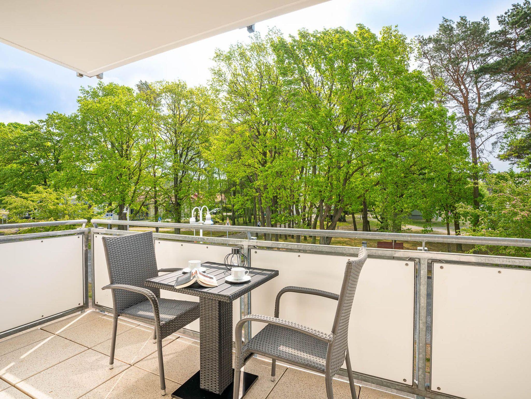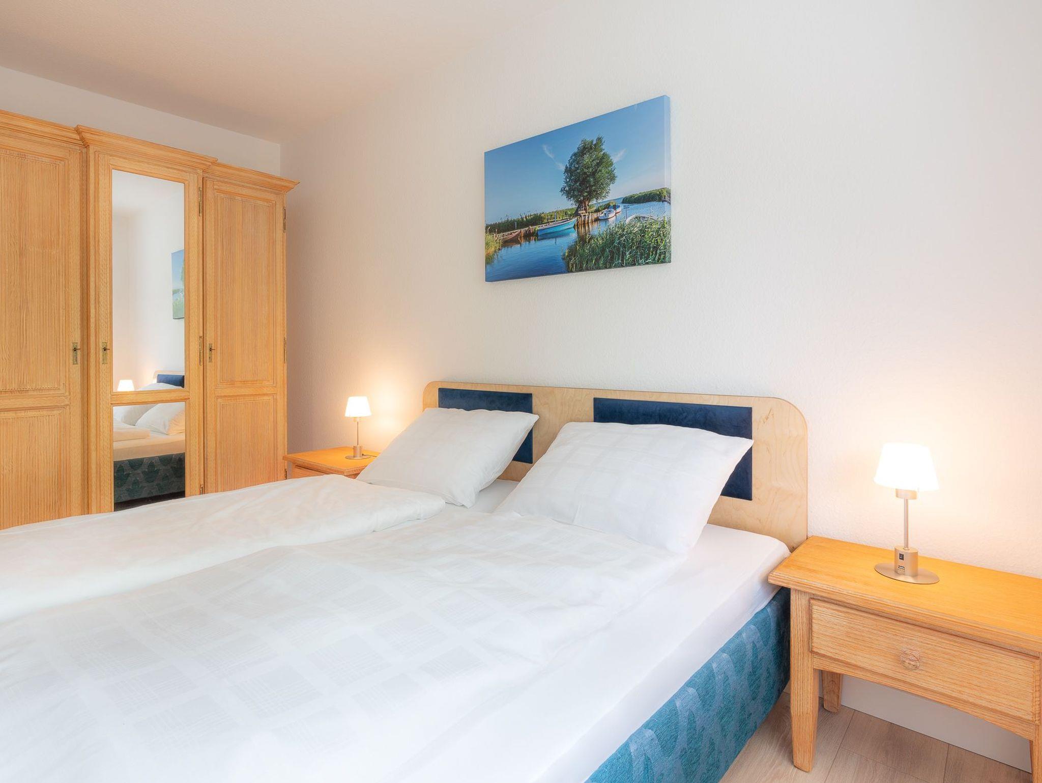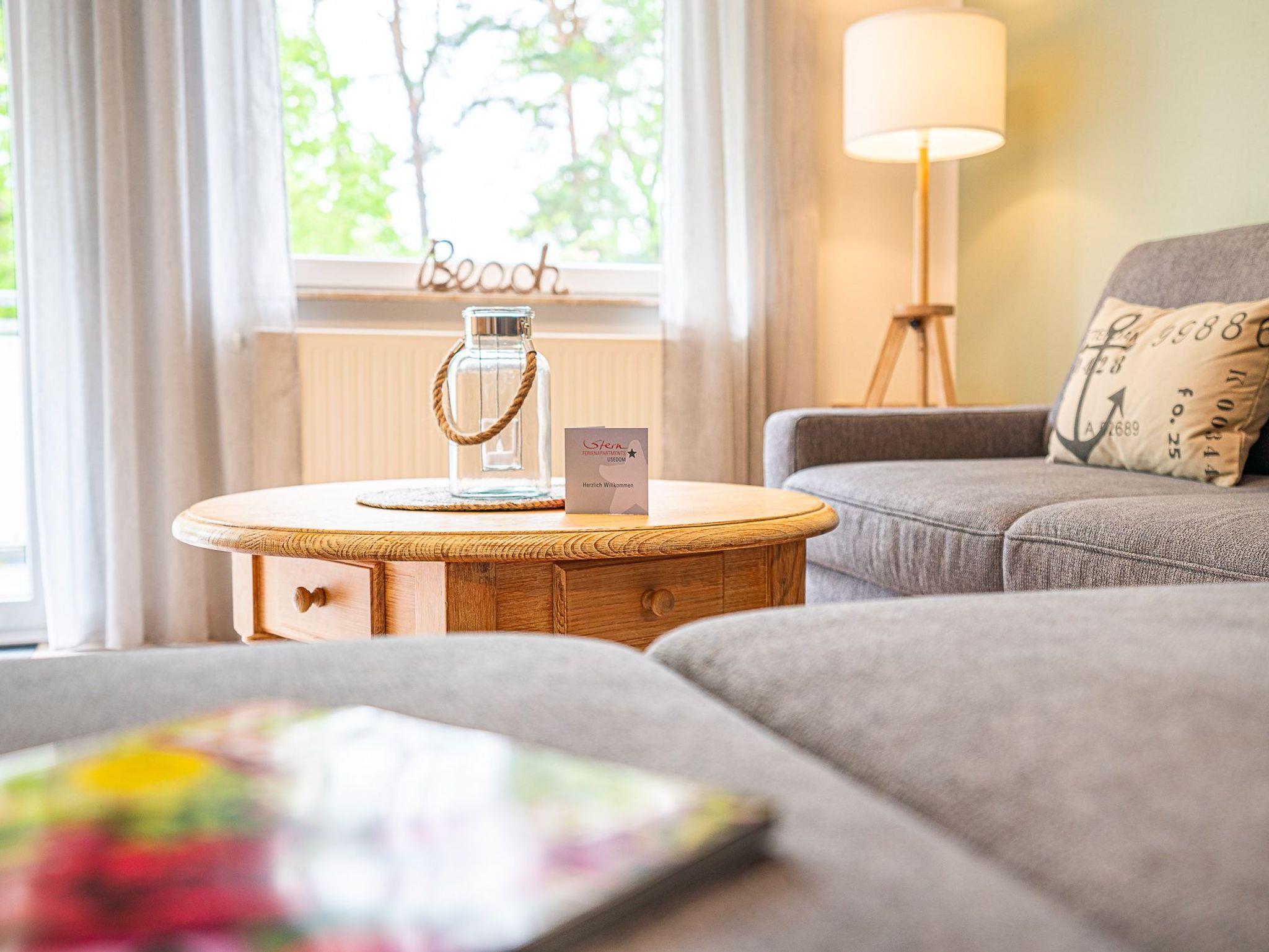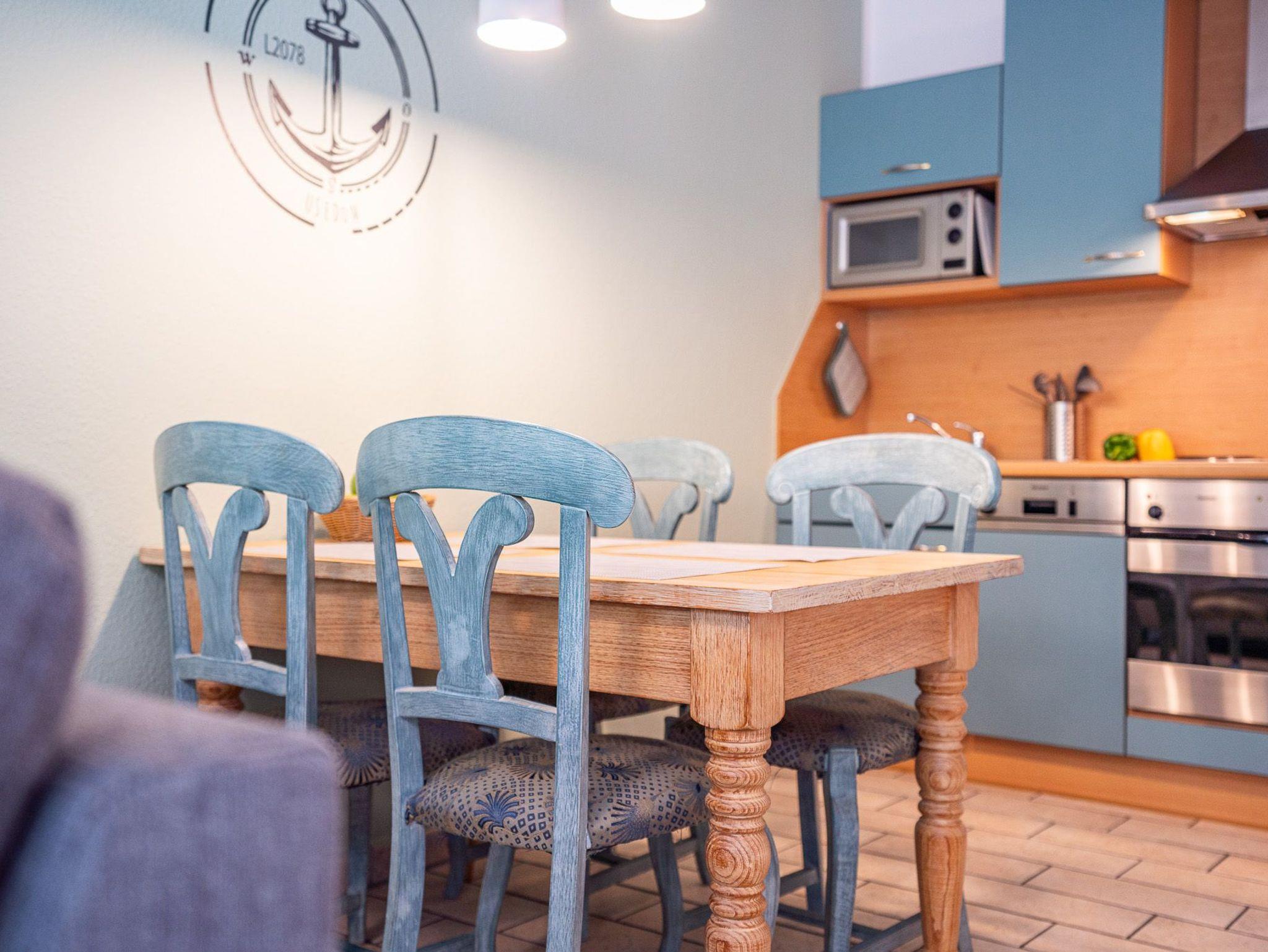 Das Wohnzimmer besitzt eine gemütliche Sitzecke und einen Fernseher, hier können Sie gemeinsam die Zeit in Ihrer Ferienwohnung ausnutzen. Die komplett eingerichtete Küchenzeile ermöglicht es Ihnen Ihre Kochkünste frei zu entfalten. Das Schafzimmer ist mit einem Doppelbett ausgestattet. In dem Bad befinden sich Dusche sowie WC. Auf dem Balkon können Sie bequem Ihren Tag ein- und ausklingen lassen. WLAN ist vorhanden. Waschmaschine und Trockner können Sie gegen Entgelt verwenden. Natürlich gibt es auch einen PKW-Parkplatz auf dem Grundstück. Zum feinsandigen, weißen Badestrand sind es nur ca. 3-4 Gehminuten.