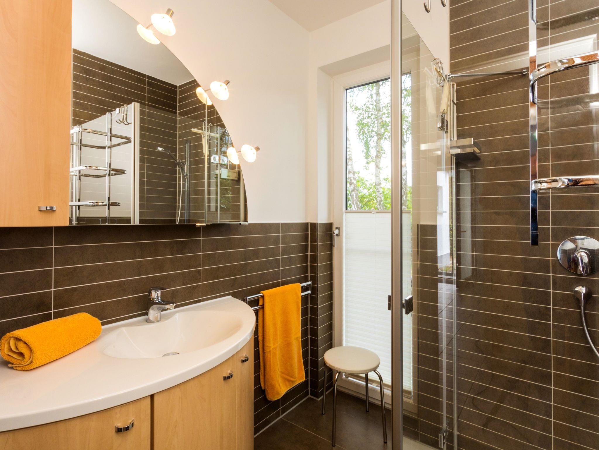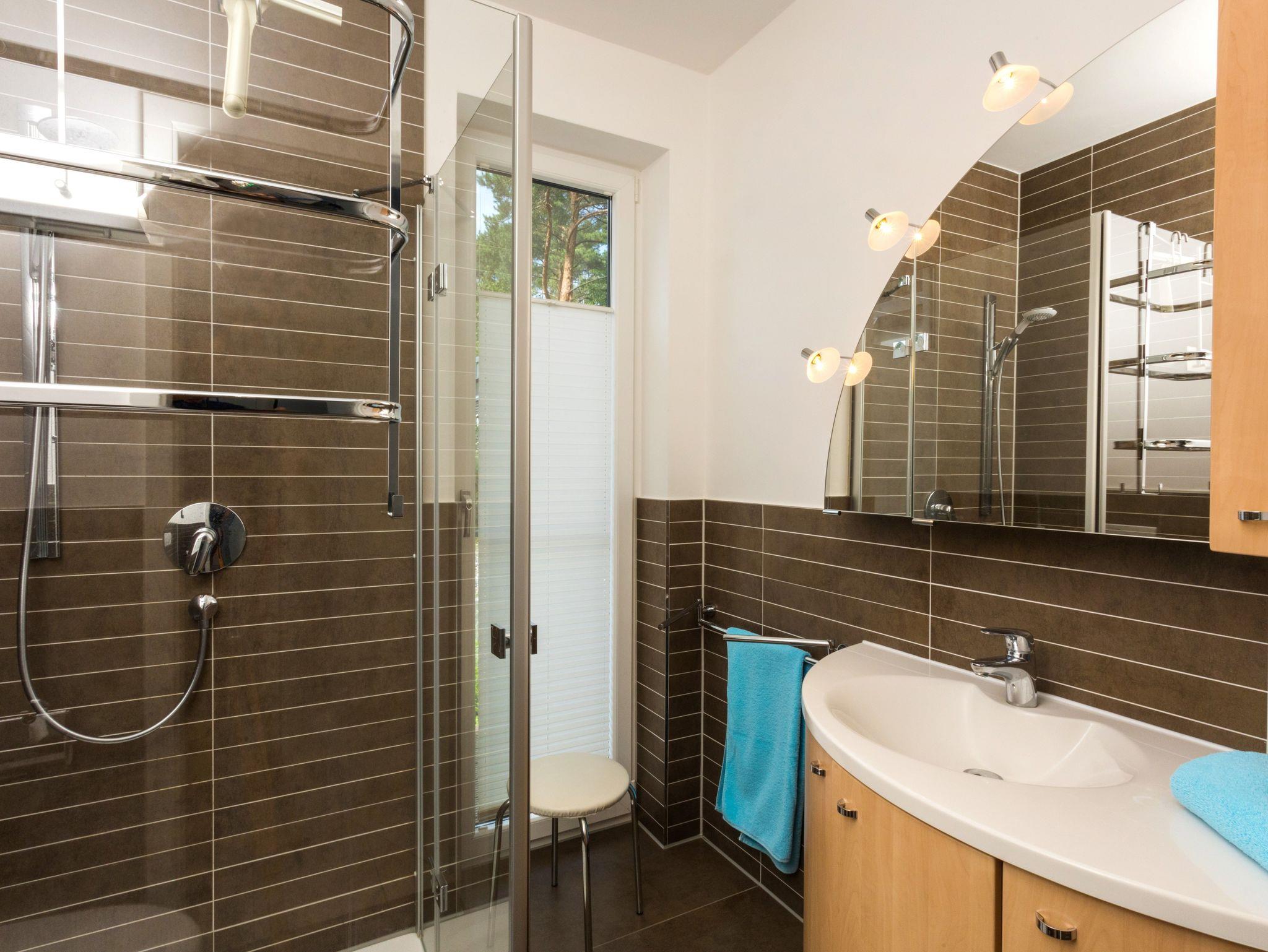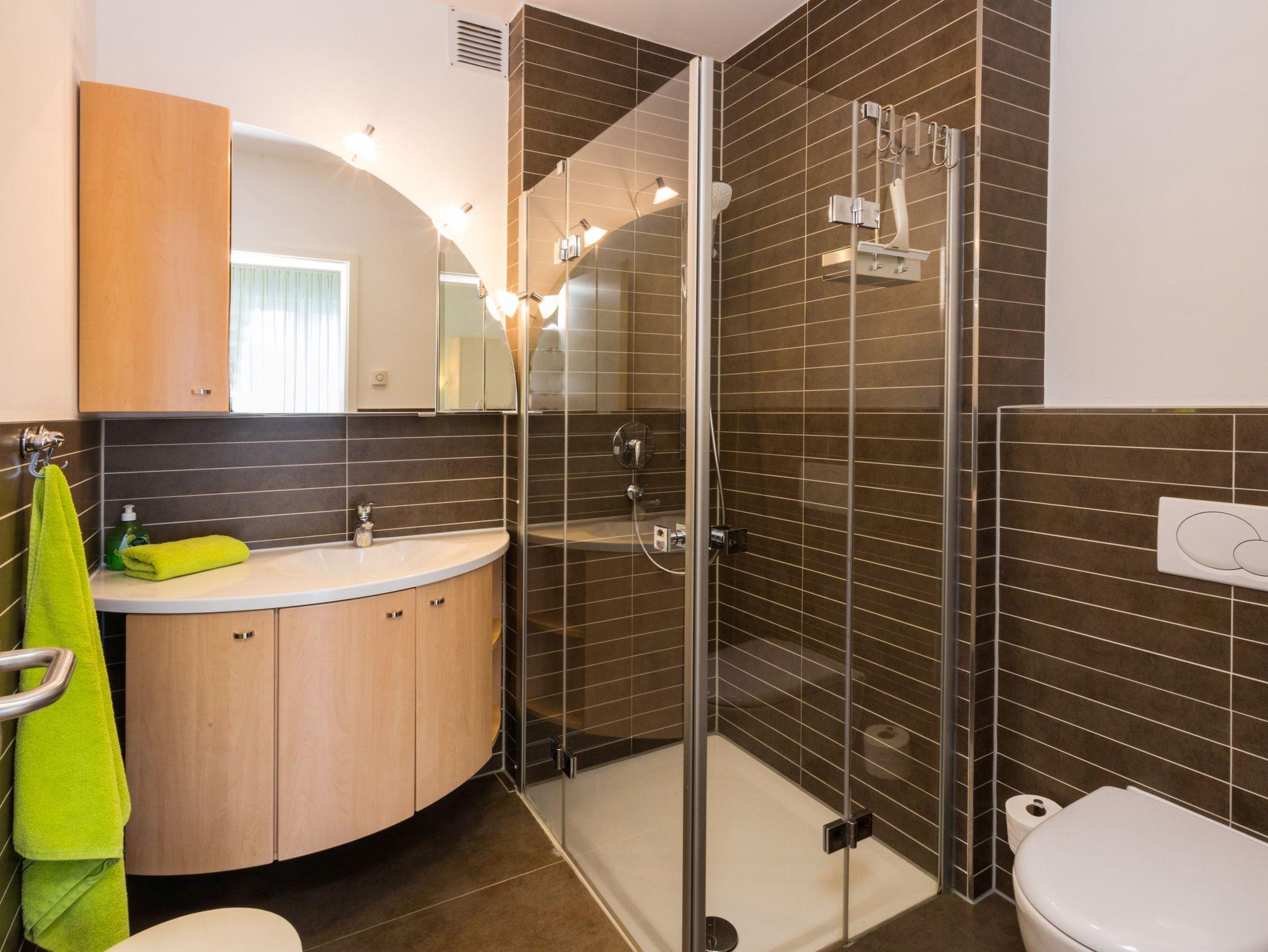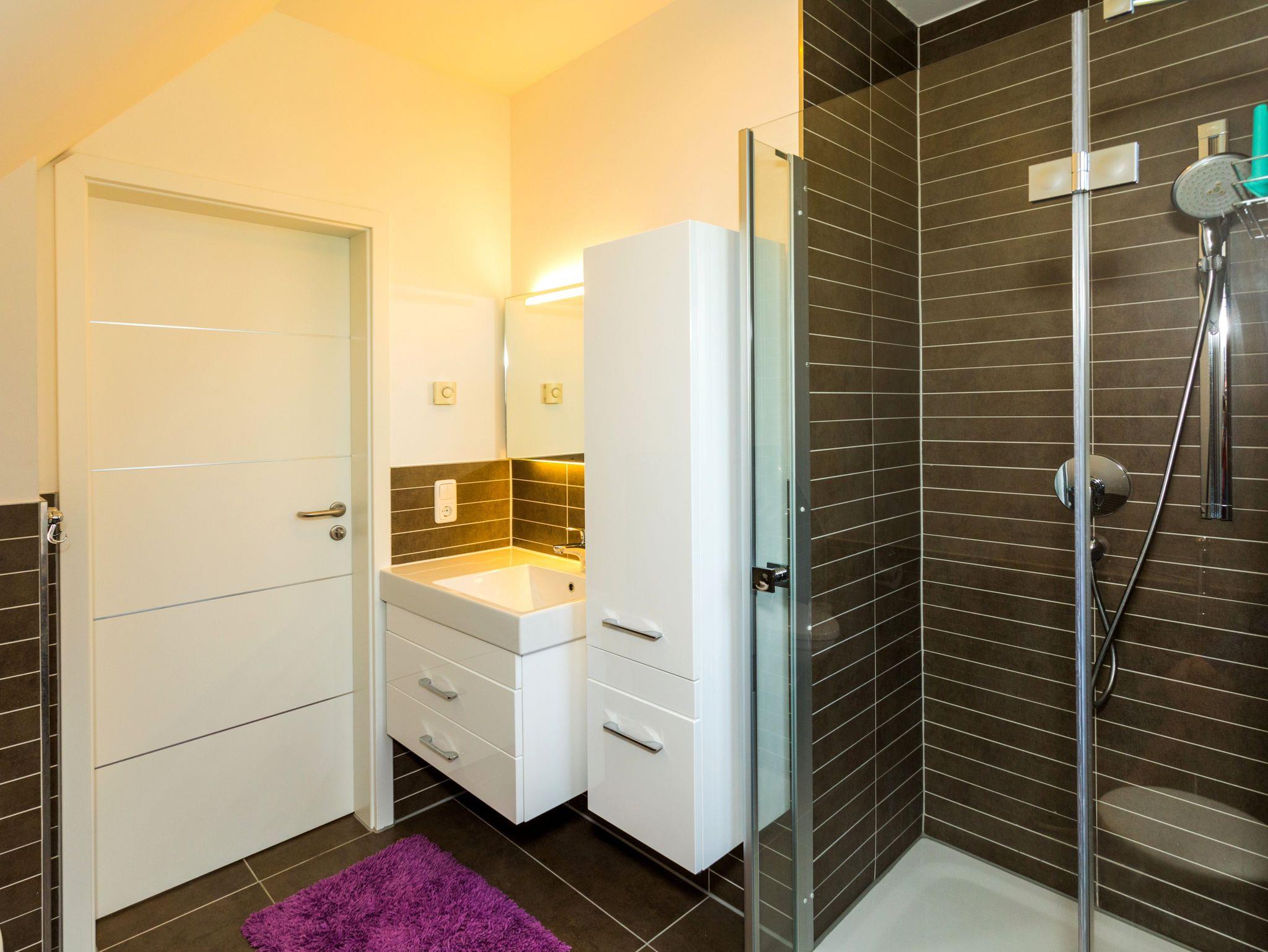 • 1 Badezimmer mit ebenerdiger Dusche, WC, Waschbecken