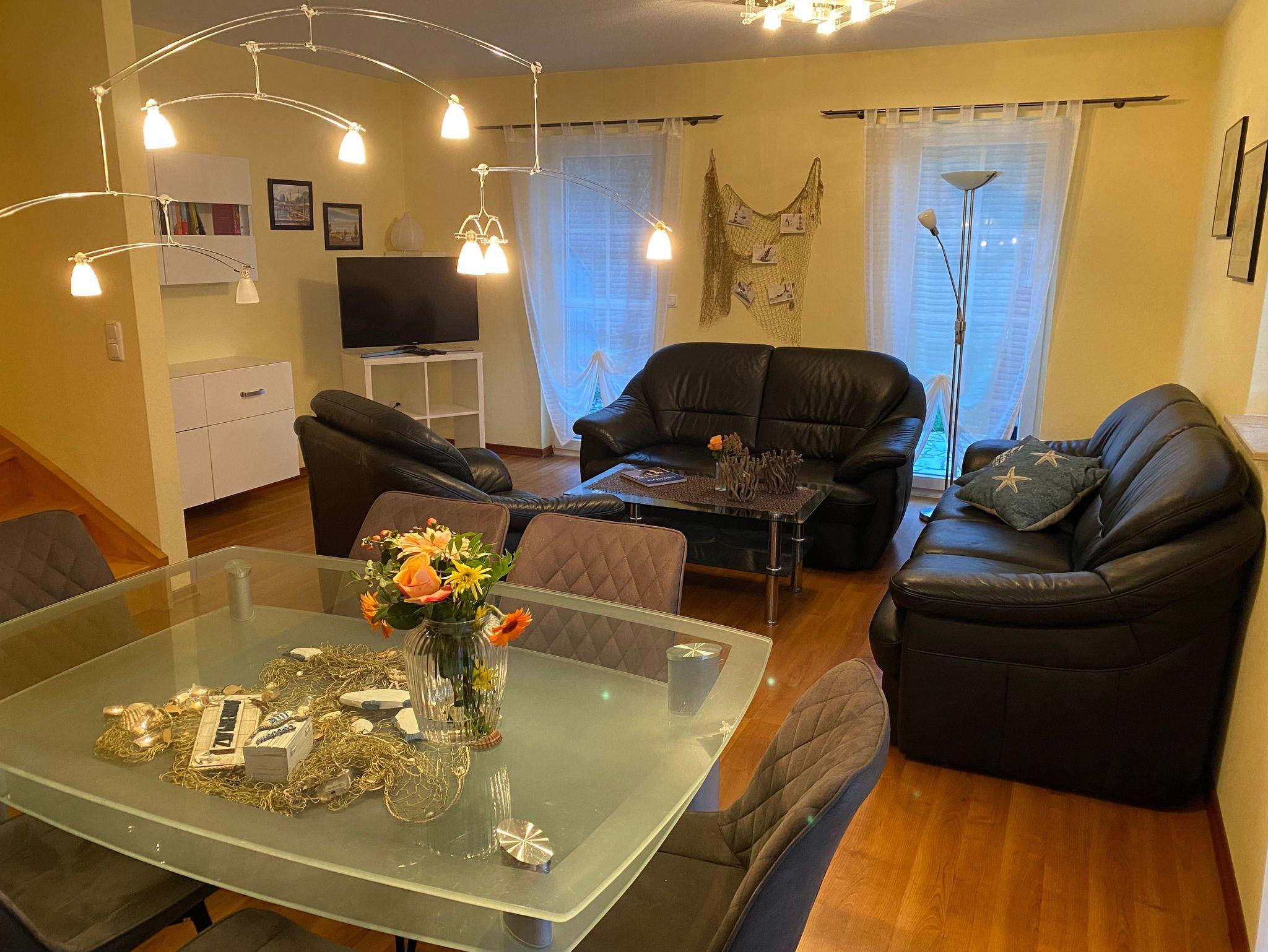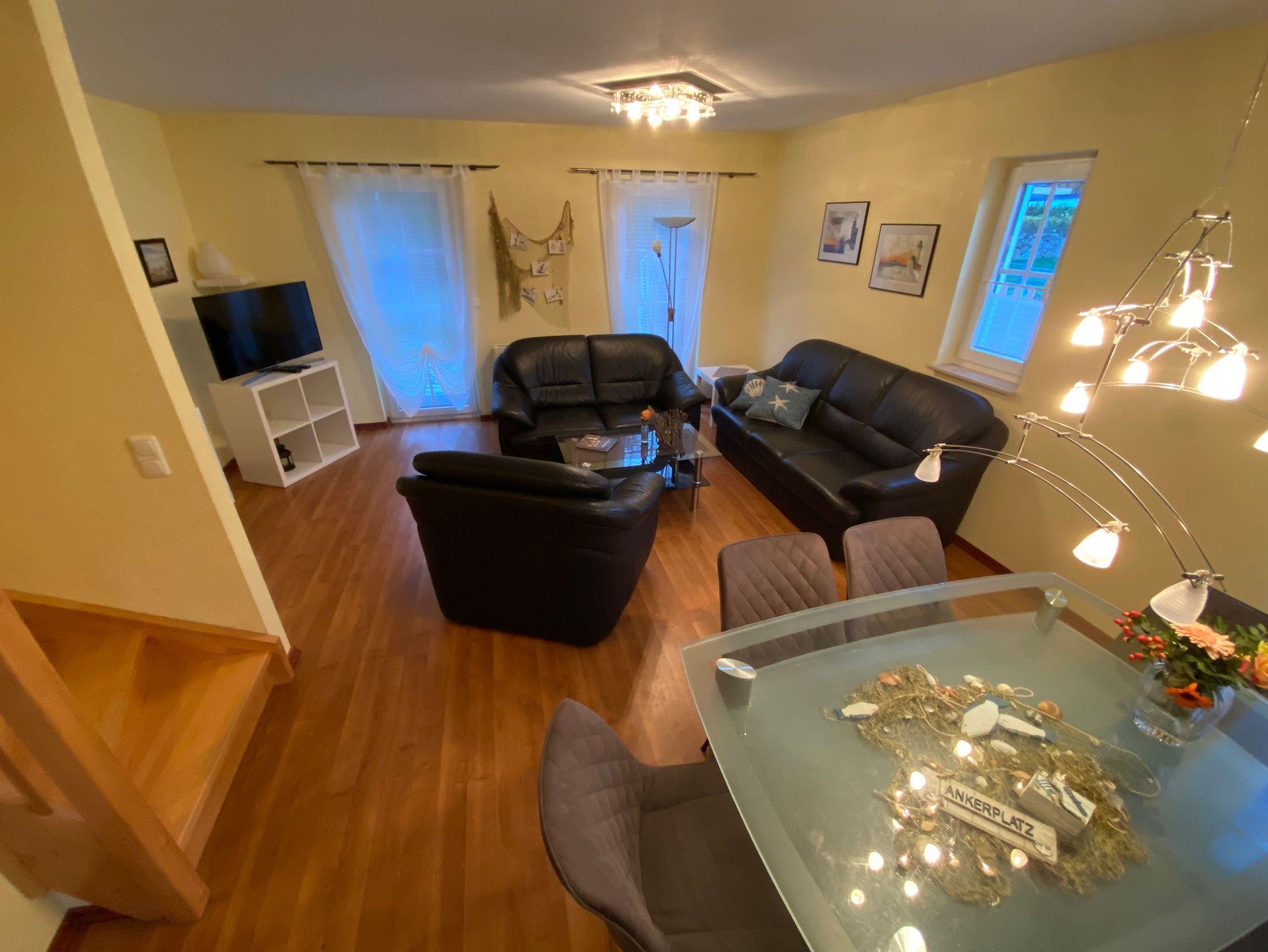 Sie erwartet eine komfortabel eingerichtete reetgedeckte DHH für 2 bis 6 Personen.