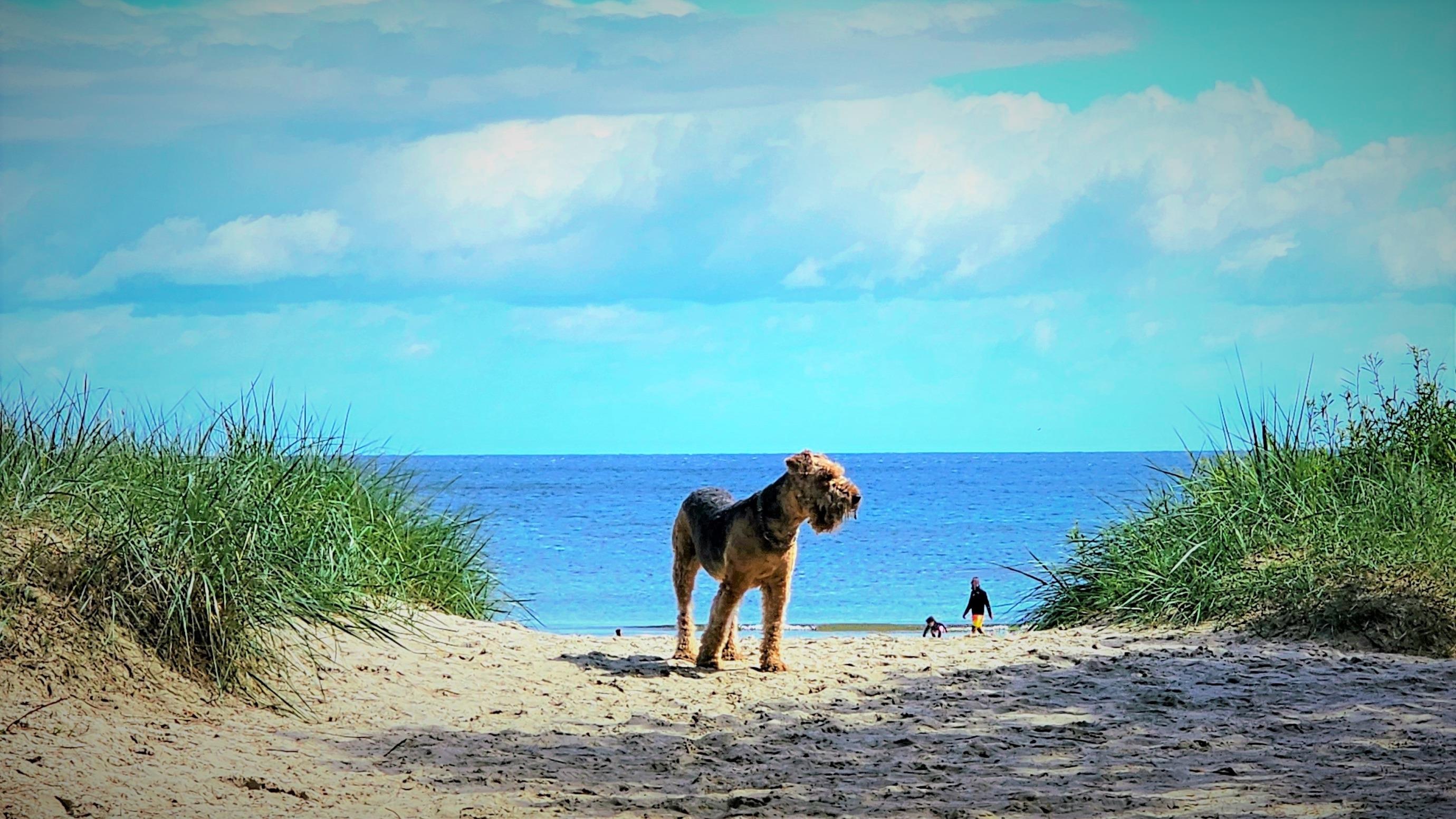 Auch unsere Viereiner inkl. Herrchen haben viel Spaß am Hundestrand