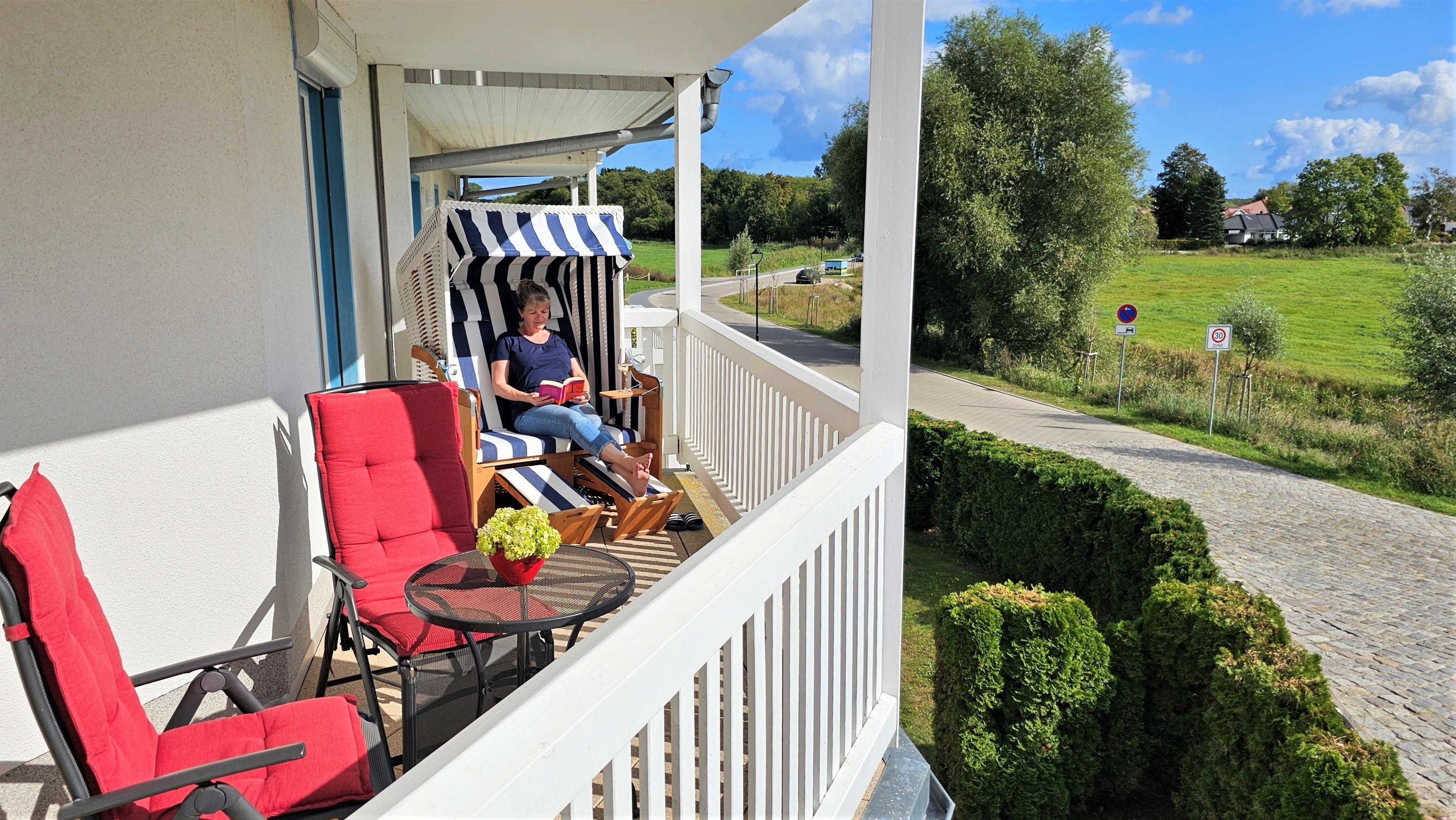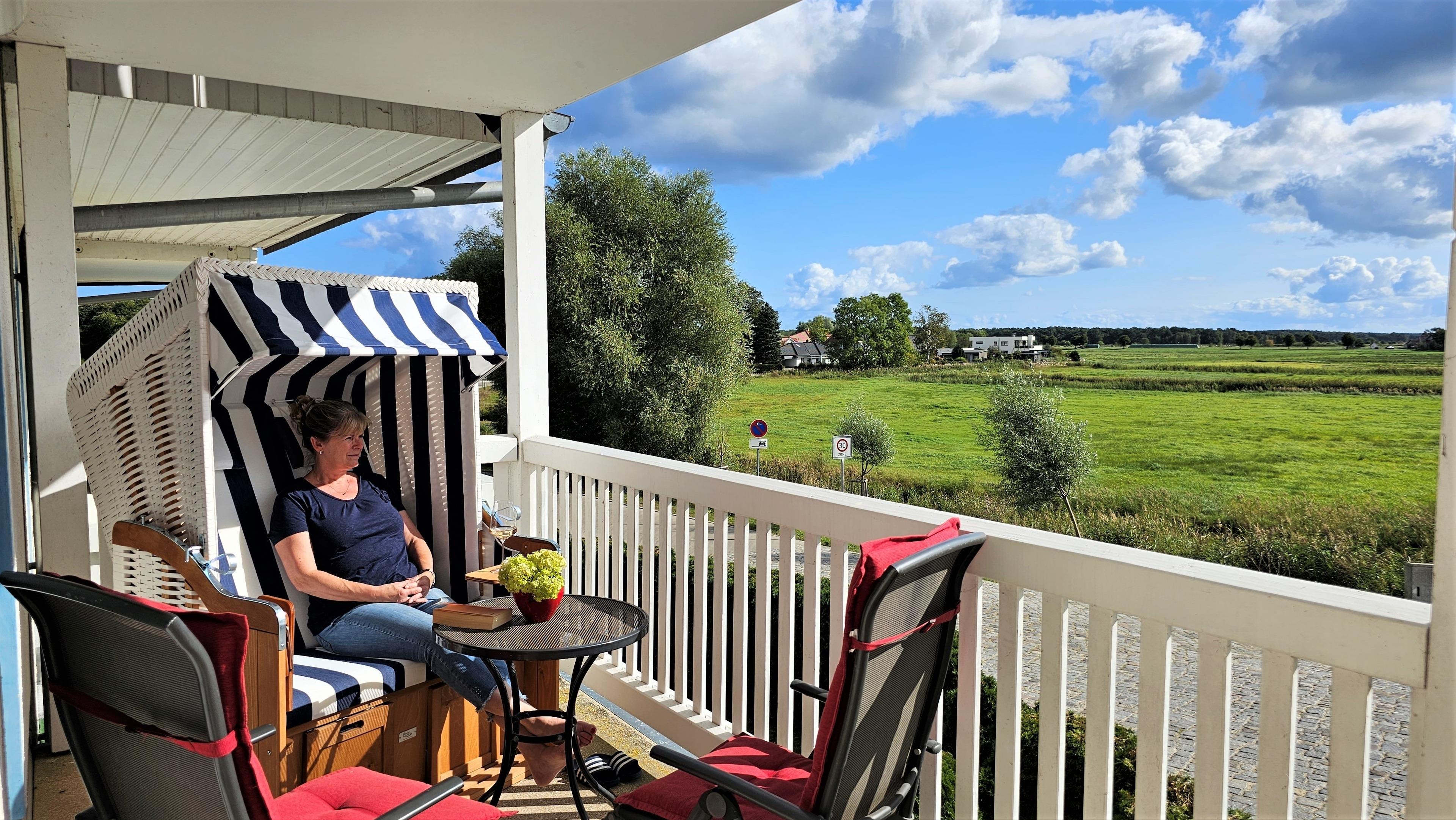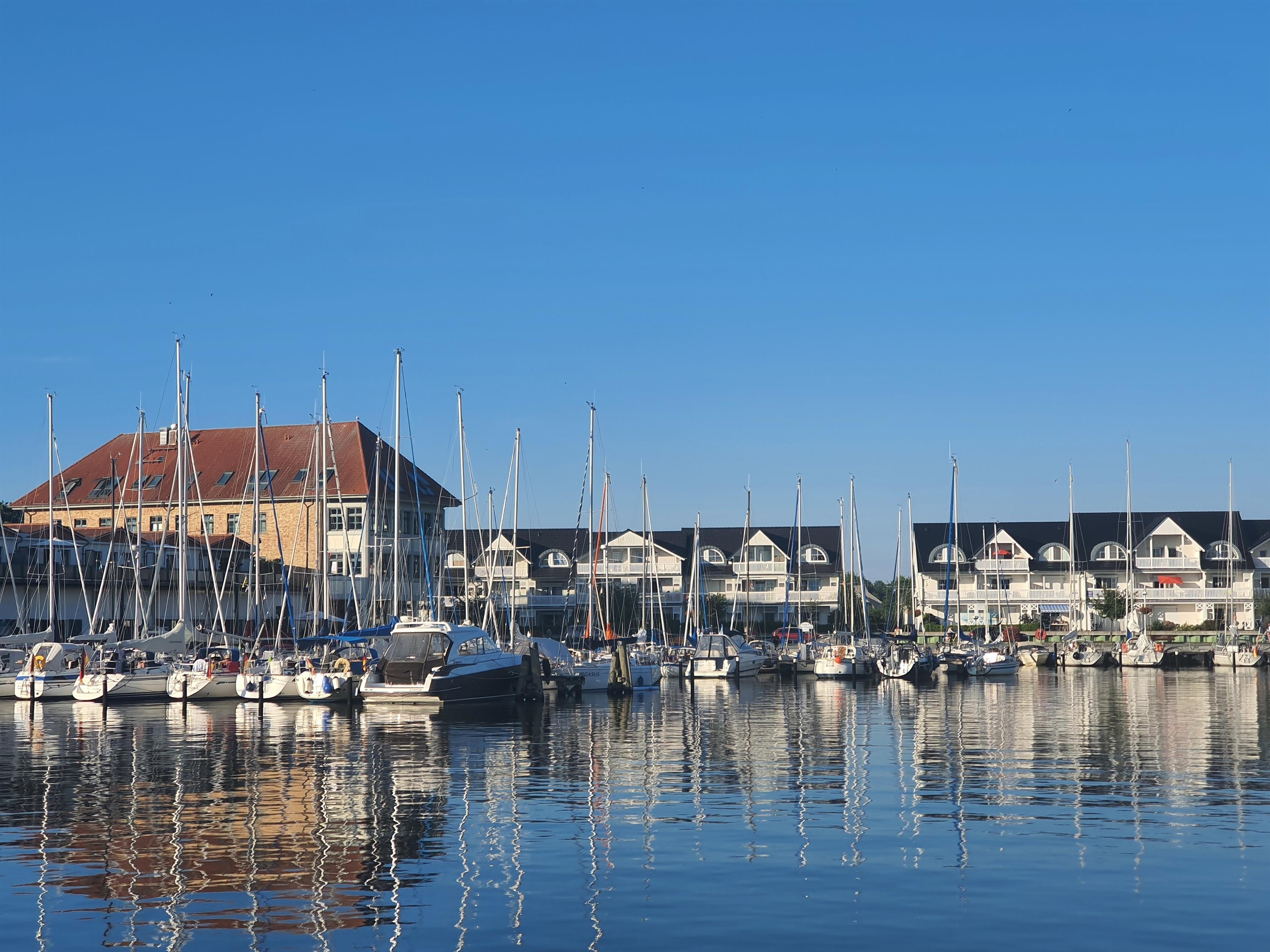 Großzügige Ferienwohnung in Karlshagen mit zwei Balkonen und direktem Hafenblick, ideal für Erholung und Aktivurlaub.