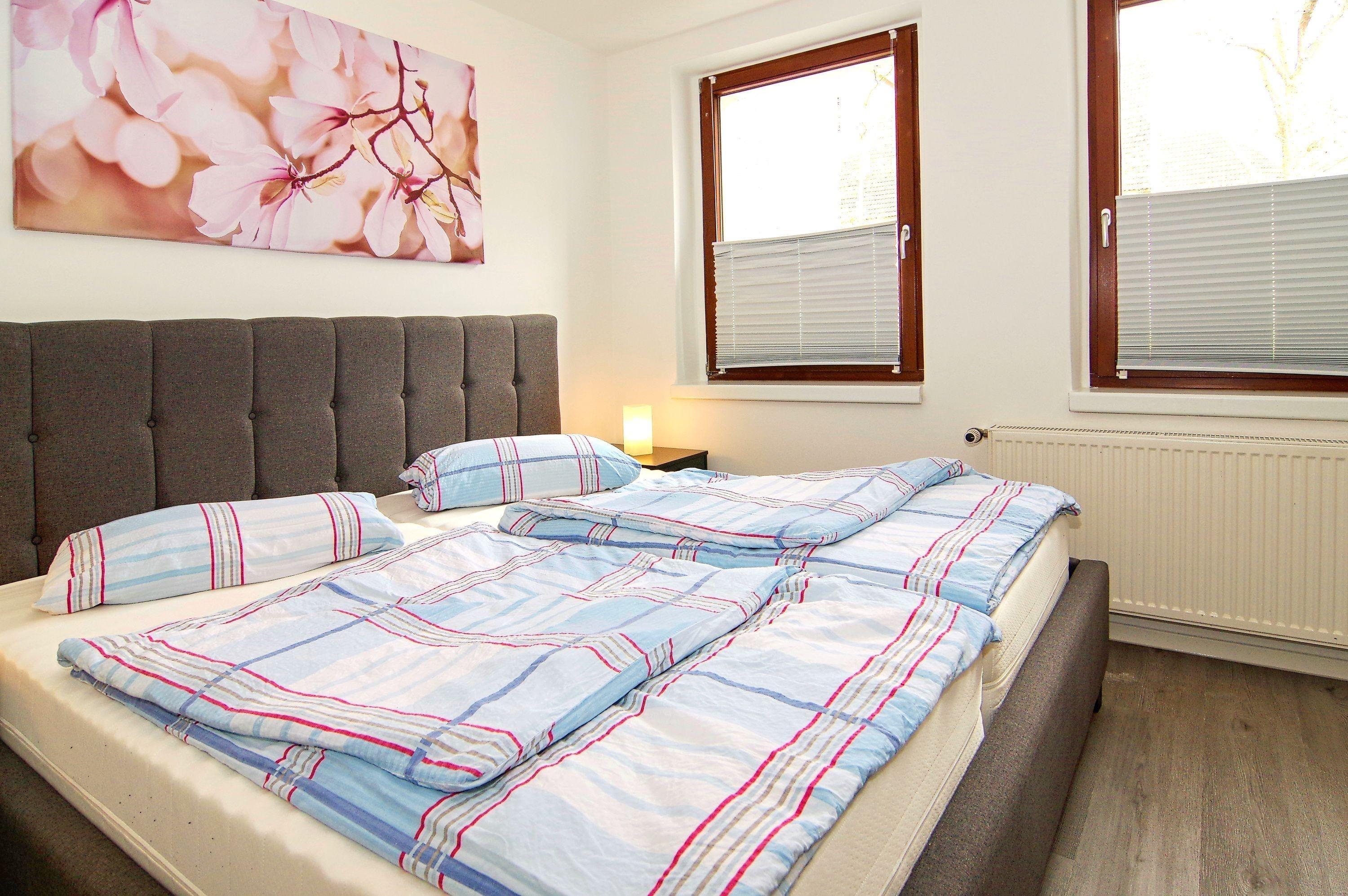 Auf 65 qm finden Sie Ruhe in einem Schlafzimmer mit zwei Schlafplätzen (Doppelbett (200x200)) und im gemütlichen Wohnzimmer ein weiteres großes Doppelbett (200x200).