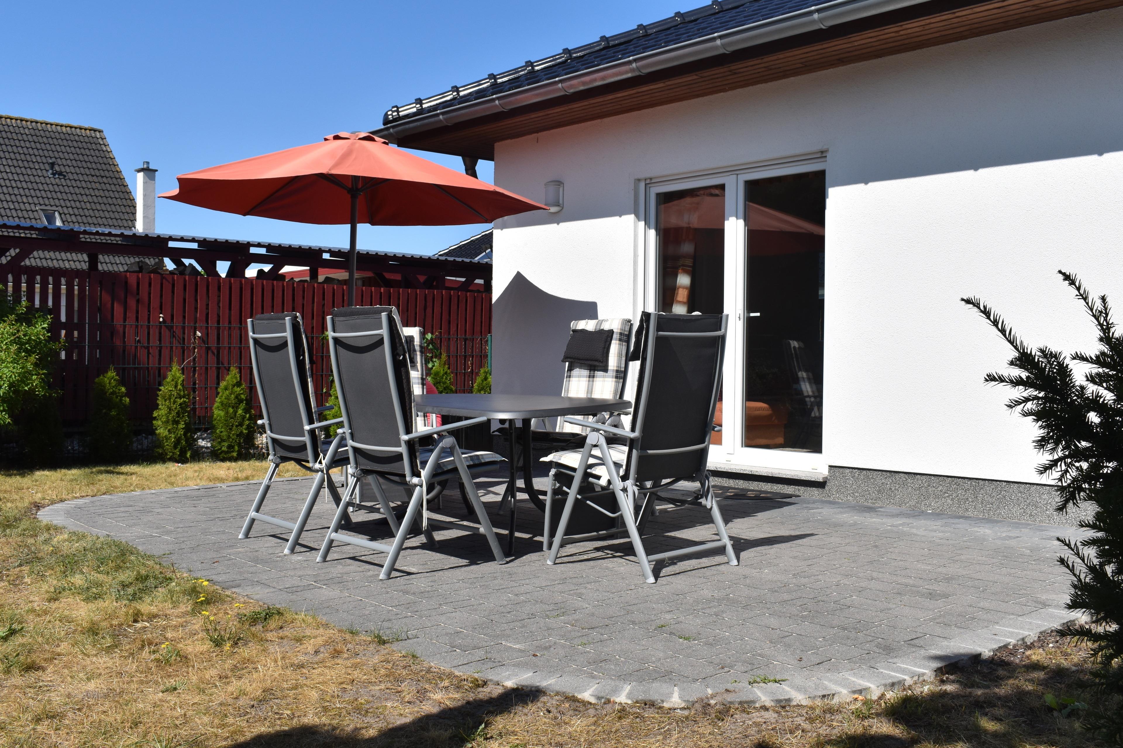 Ruhiges Ferienhaus in Karlshagen mit zwei Sonnenterrassen und großem Garten, ideal für Familien und Paare.