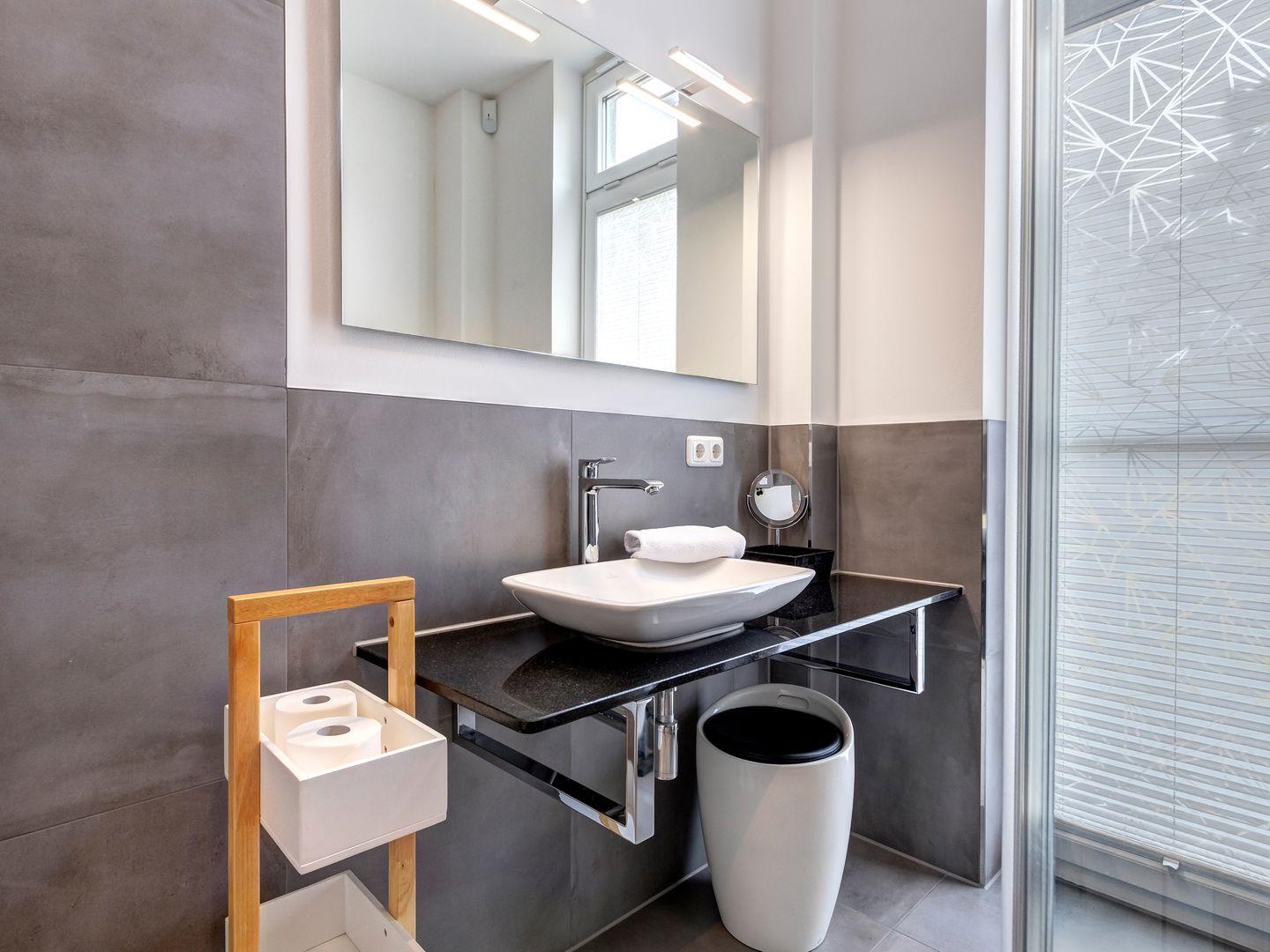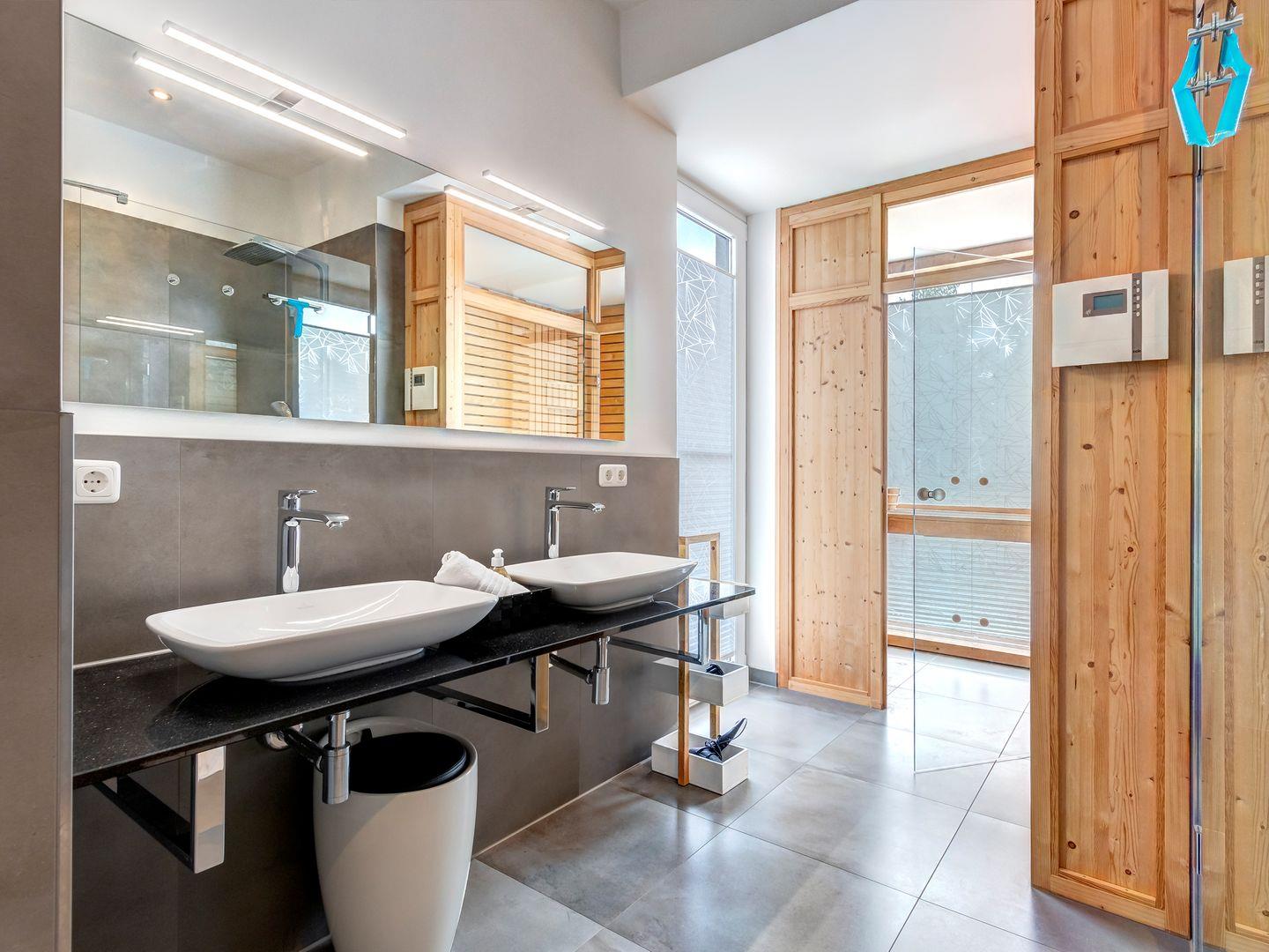 Unser Appartement "KARL" im Erdgeschoss umfasst 110 m² Wohnfläche und bietet drei Schlafzimmer mit modernster Unterhaltungstechnik und exquisiten Boxspringbetten, zwei Bäder sowie Sauna zur Eigennutzung. Von der Außenterrasse des Feriendomizils gelangt man in direktem Zugang zum lichtdurchfluteten geschmackvoll eingerichteten Wohnzimmer mit großem Essbereich, Kaminofen und Fußbodenheizung.
