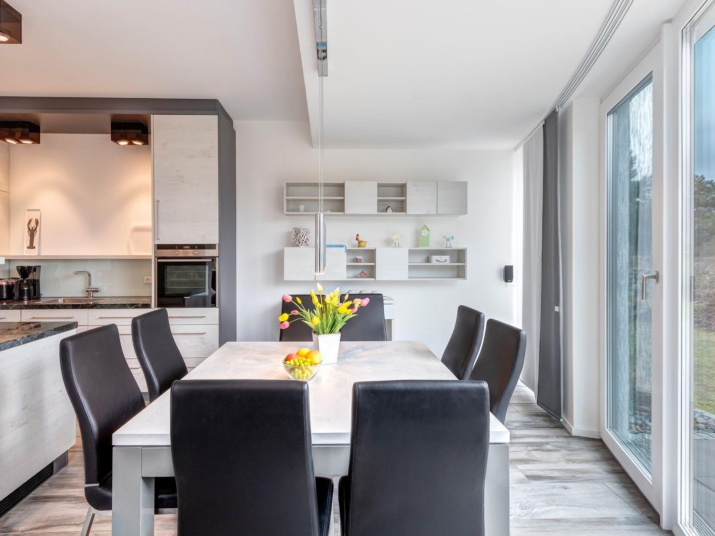 Ideal für Familien und Reisegruppen von bis zu 6 Personen. Von der Terrasse im Obergeschoss aus genießen Sie einen herrlichen Ausblick auf die umliegende Natur und können bei einem abendlichen Glas Wein die würzige Ostseeluft genießen.