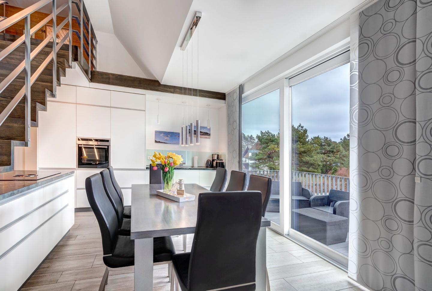 Ideal für Familien und Reisegruppen von bis zu 6 Personen. Von der Terrasse im Obergeschoss aus genießen Sie einen herrlichen Ausblick auf die umliegende Natur und können bei einem abendlichen Glas Wein die würzige Ostseeluft genießen.
