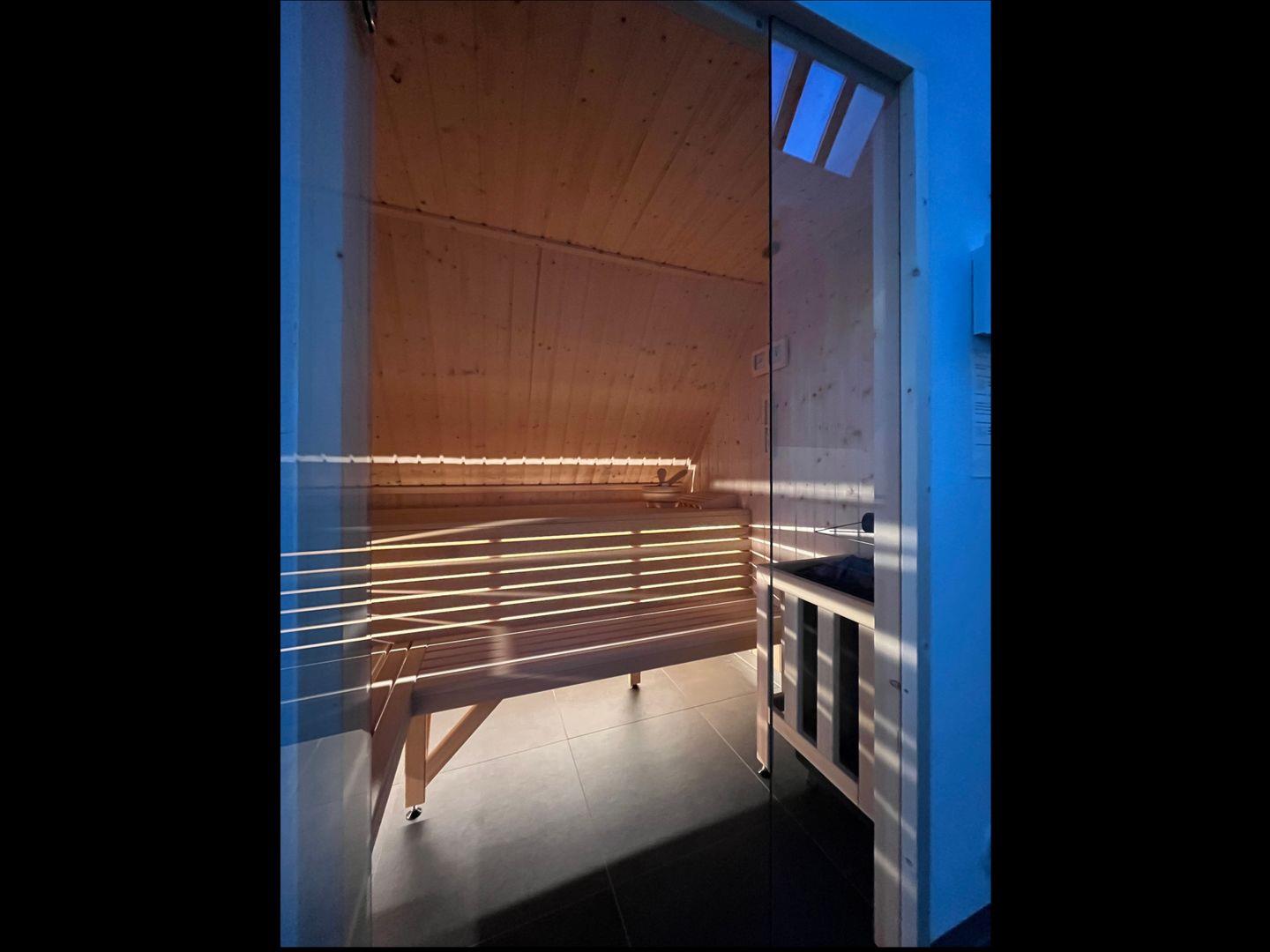 Das Highlight unseres Hauses ist zweifellos das lichtdurchflutete Dachgeschoss, ein Ort der puren Entspannung inklusive Sauna. Hier können Sie tagsüber auf bequemen Liegen den blauen Himmel und nachts die funkelnden Sterne bewundern, dank der großen Dachflächenfenster im First, die diesen Ort zu etwas Besonderem machen. Ein zusätzliches Badezimmer mit Dusche im Dachgeschoss rundet dieses einzigartige Erlebnis ab.