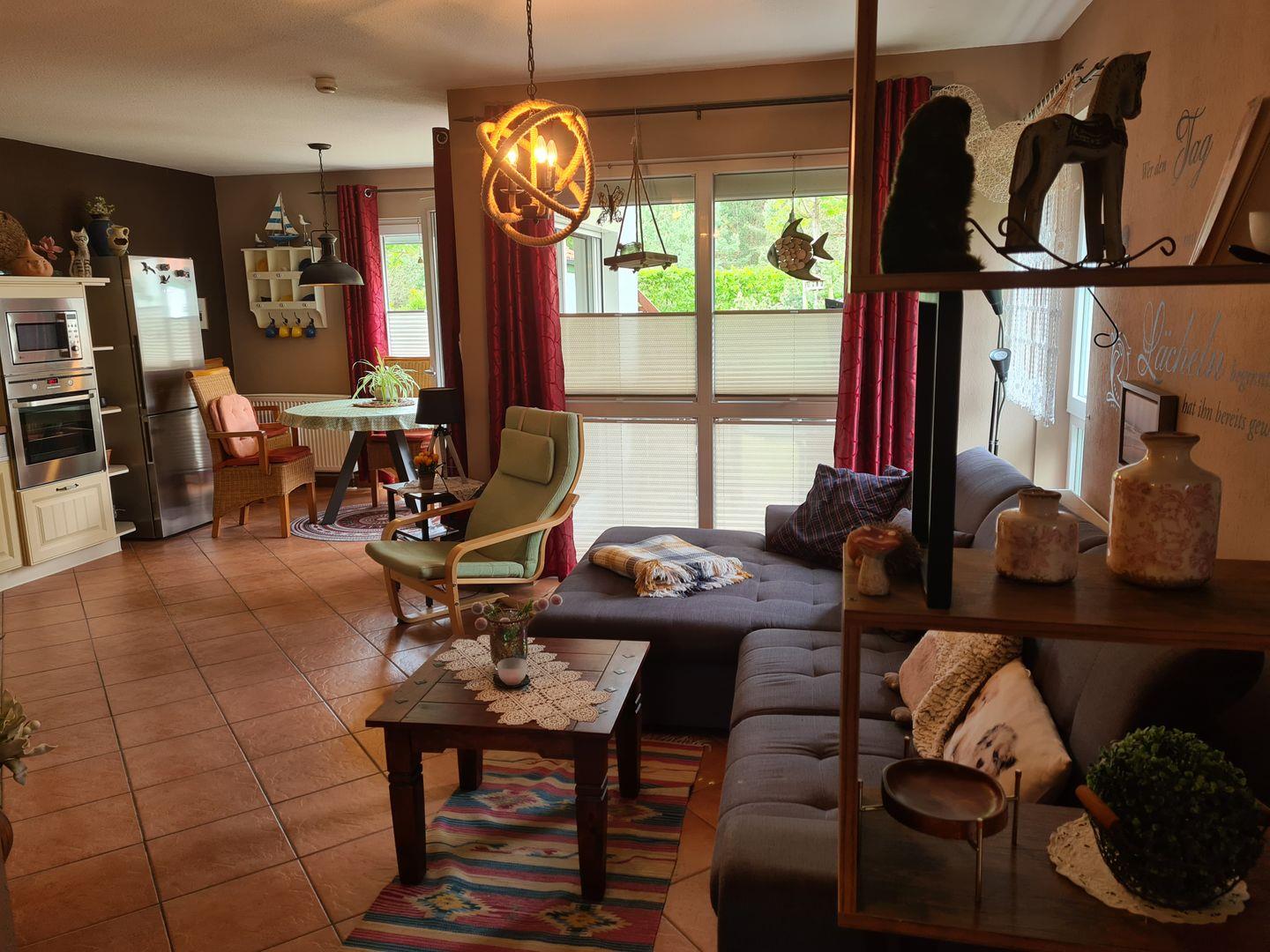 Erdgeschosswohnung 60qm, WZ, Küche, 1 SZ mit Doppelbett u. TV, 1 SZ mit Schlafsofa 1,20 m x 2,00 m