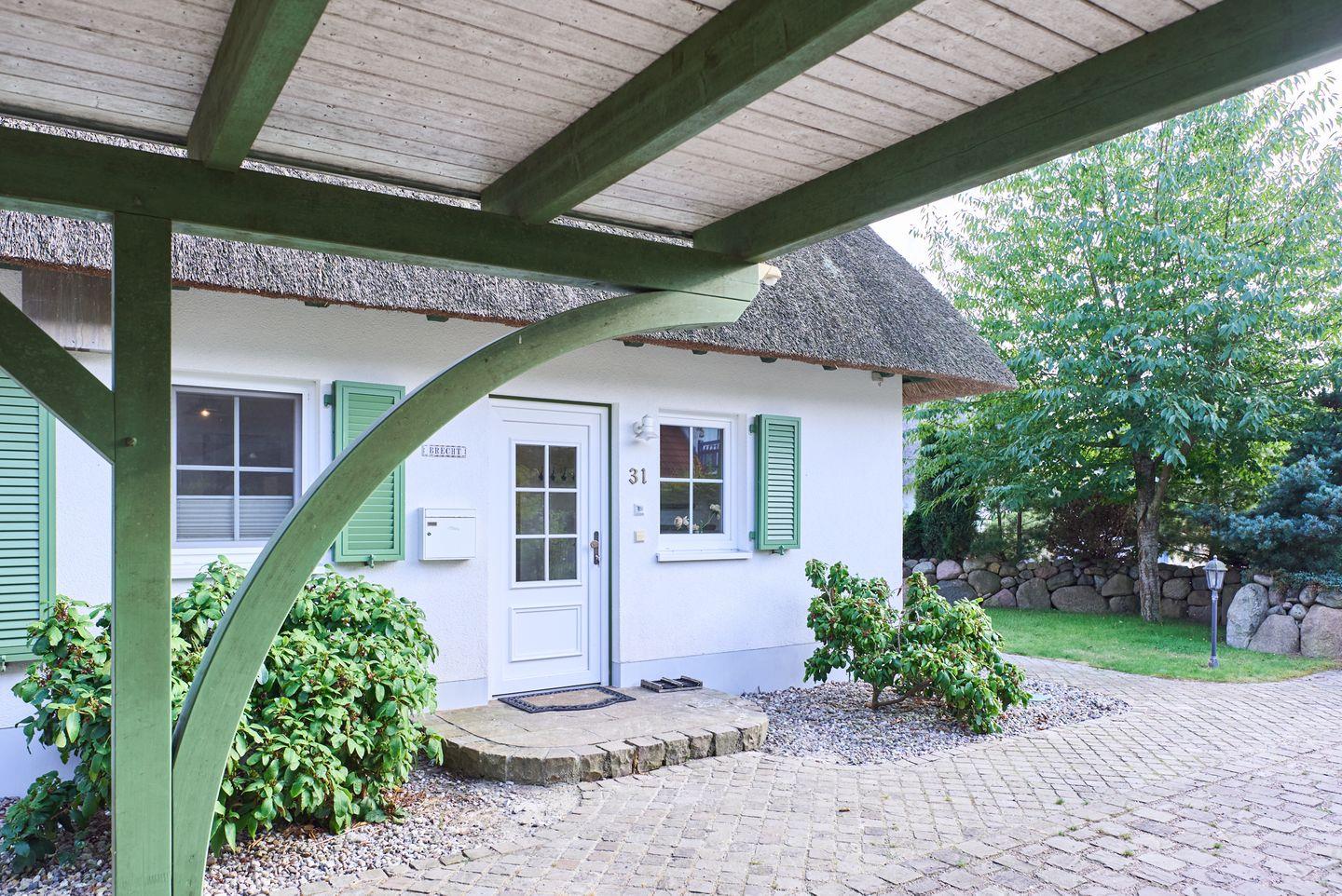 Charmantes reetgedecktes Ferienhaus in Karlshagen mit Kamin, Terrasse und Garten für erholsamen Urlaub nahe dem Strand.