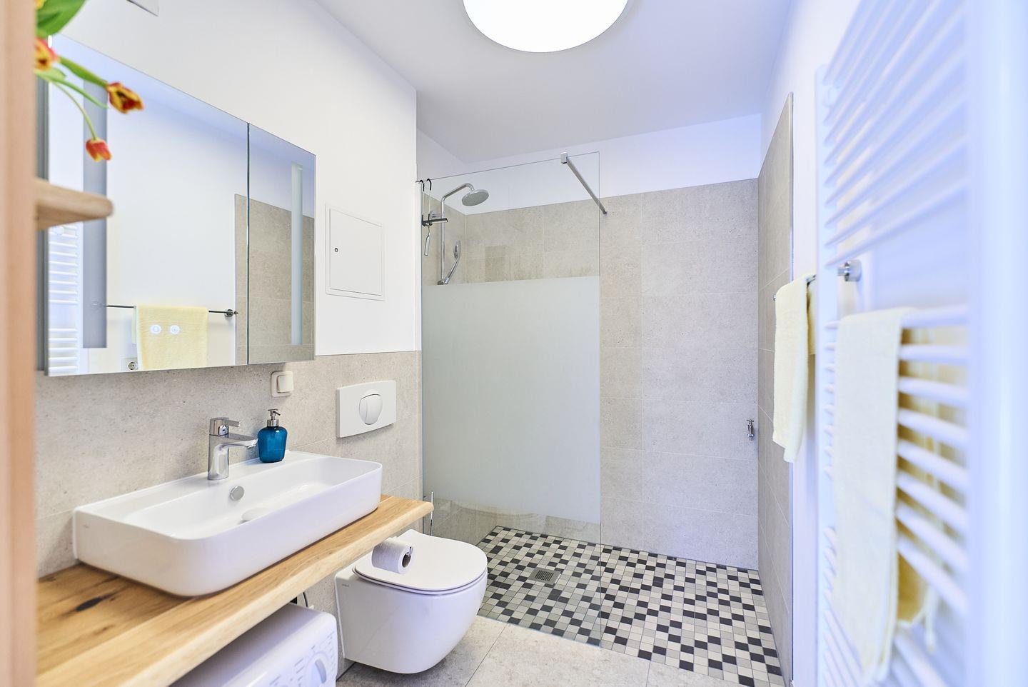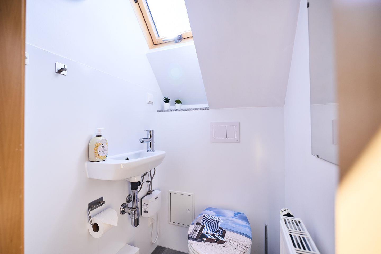 Besonders hervorzuheben ist der Balkon, auf dem Sie bei einem guten Glas Wein den Tag ausklingen lassen können. Die Wohnung bietet zudem ein modernes Badezimmer mit Dusche und ein zusätzliches Gäste-WC – perfekt für größere Gruppen. Für die kleinsten Gäste stehen ein Babybett und ein Hochstuhl bereit, sodass der Aufenthalt auch für Familien mit Kleinkindern komfortabel gestaltet werden kann.