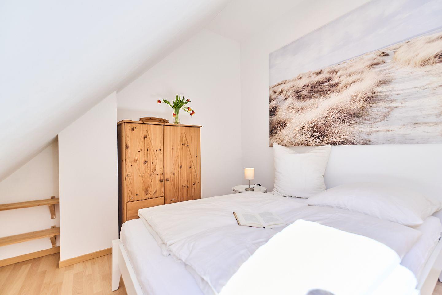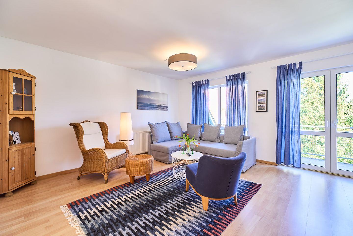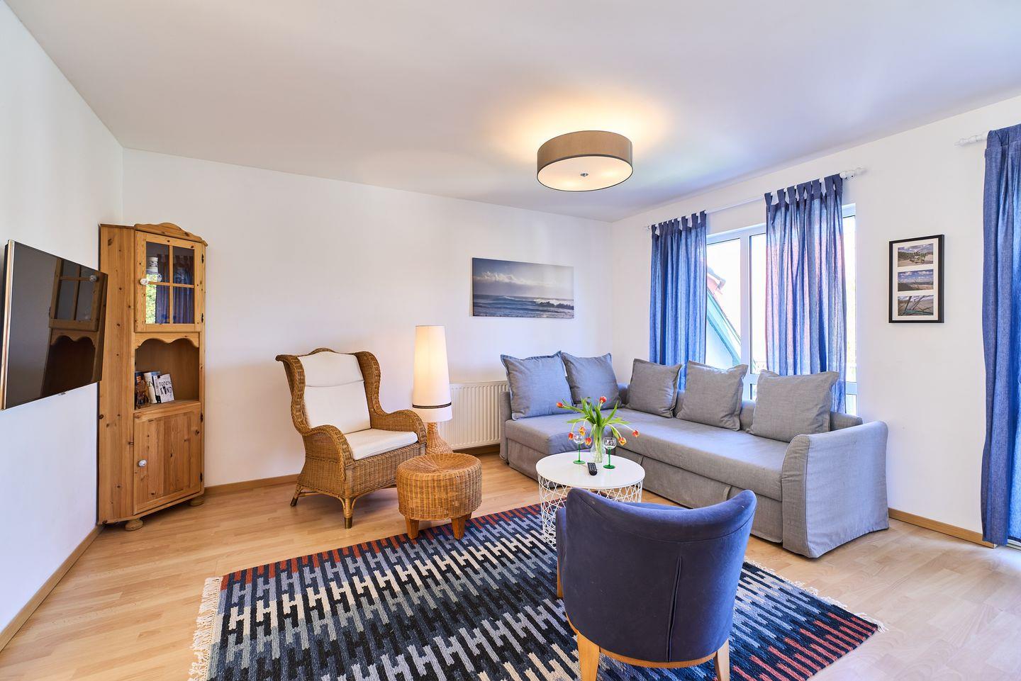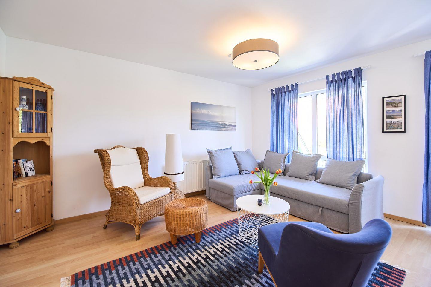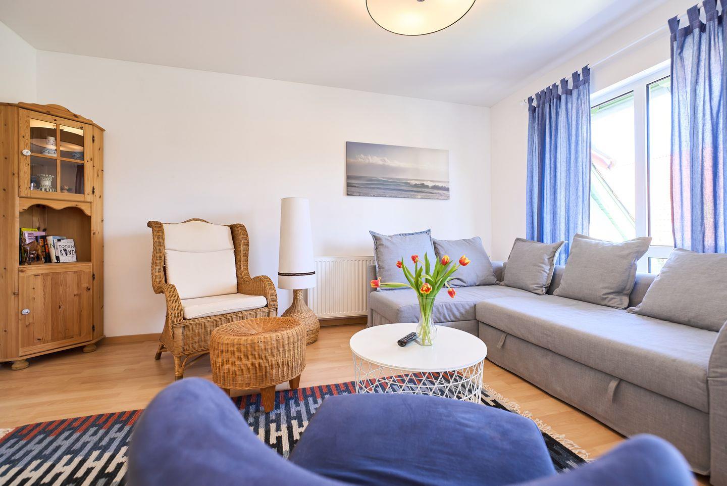 Die Wohnung verfügt über zwei komfortable Schlafzimmer, die mit hochwertigen Laminatböden und sonnigen Fenstern ausgestattet sind, um eine angenehme Atmosphäre zu schaffen. Das gemütliche Wohnzimmer ist der perfekte Ort zum Entspannen nach einem erlebnisreichen Tag am Strand. Hier finden Sie eine Sofaecke, einen Esstisch für gemeinsame Mahlzeiten und einen modernen Fernseher, damit Sie auch im Urlaub nicht auf Ihre Lieblingssendungen verzichten müssen. Zusätzliche Extras wie Bettwäsche und Handtücher (diese sind NICHT in Ihrer Buchung enthalten),können über unsere Gäste-App dazu gebucht werden.