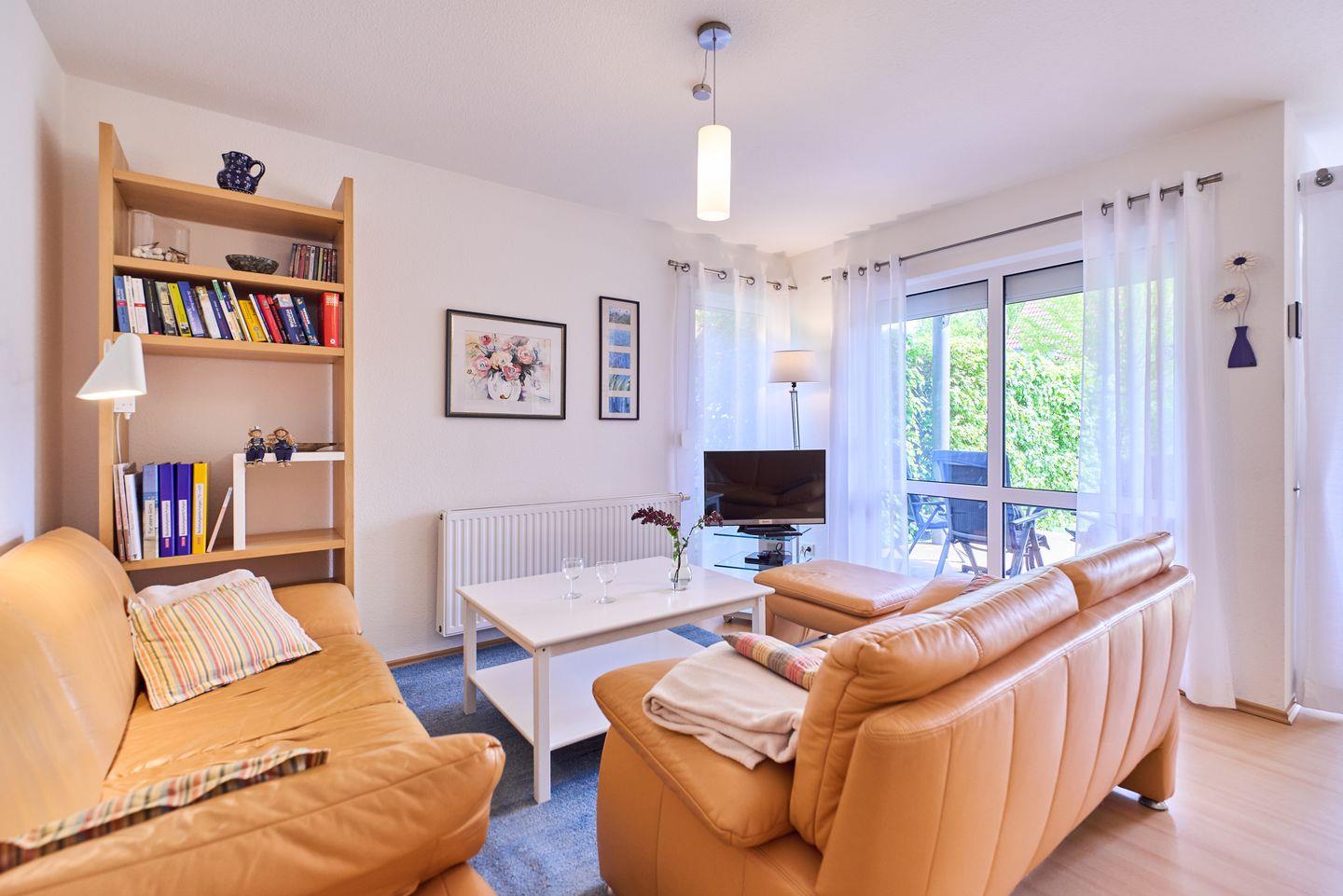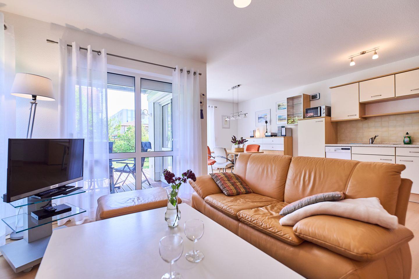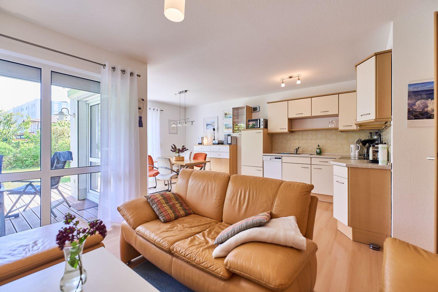 Gemütliche Ferienwohnung in Karlshagen mit Terrasse, Strandkorb und moderner Ausstattung für erholsame Tage an der Ostsee.