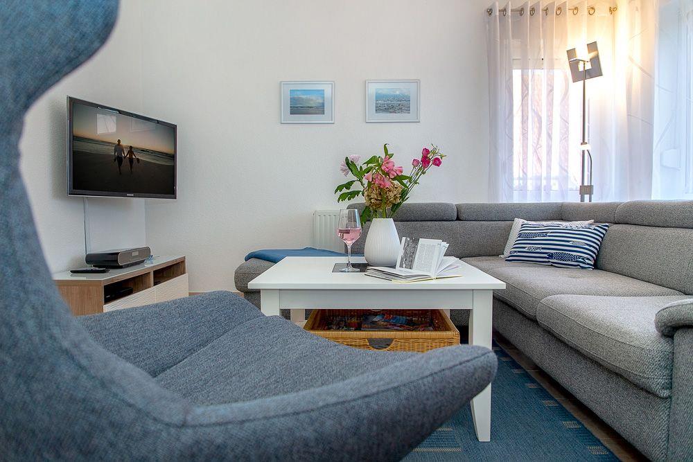 Ein weiteres Highlight dieser Ferienwohnung ist der große Balkon, der Ihnen einen wunderbaren Ausblick ermöglicht. Hier können Sie die Morgenstunden bei einer Tasse Kaffee oder die lauen Abendstunden bei einem Glas Wein verbringen. Der zur Wohnung gehörende Strandkorb am Strand sorgt dafür, dass Sie die Sonne in vollen Zügen genießen können – einfach himmlisch!