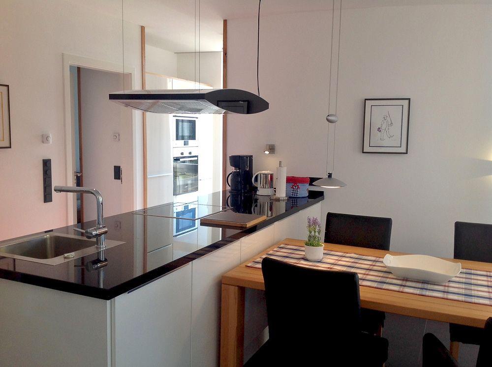 Die voll ausgestattete Küche lässt keine Wünsche offen: Mit einem Induktionsherd, Backofen, Mikrowelle, Geschirrspüler und Kühlschrank können Sie gemütlich Ihre eigenen kulinarischen Köstlichkeiten zaubern. Der offene Essbereich fördert das gesellige Beisammensein, während das Wohnzimmer mit einer bequemen Sofaecke und einem TV für entspannende Abende einlädt. Als zusätzliche Annehmlichkeit haben Sie Zugang zu gratis WLAN.