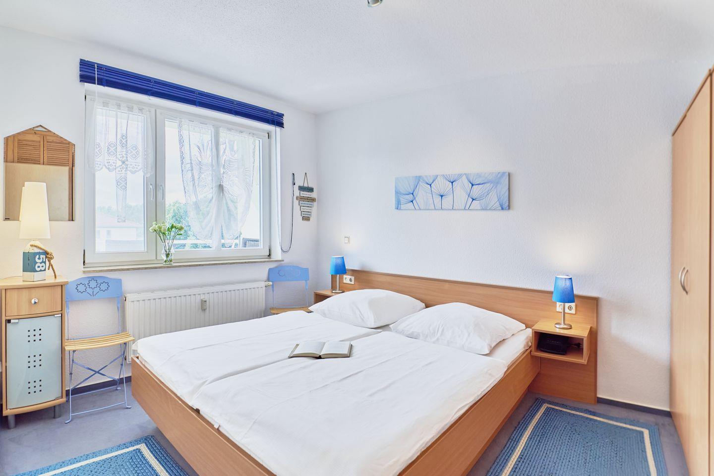 Das Schlafzimmer ist eine wahre Oase der Ruhe, ausgestattet mit einem gemütlichen Teppichboden und einem komfortablen Bett, das erholsame Nächte garantiert. Auf Wunsch können die Schlafmöglichkeiten durch ein Schlafsofa im Wohnzimmer ergänzt werden. Das moderne Badezimmer mit Badewanne und WC und einer Waschmaschine bietet Ihnen alles, um sich nach einem Aktionsreichen Tag zu entspannen.