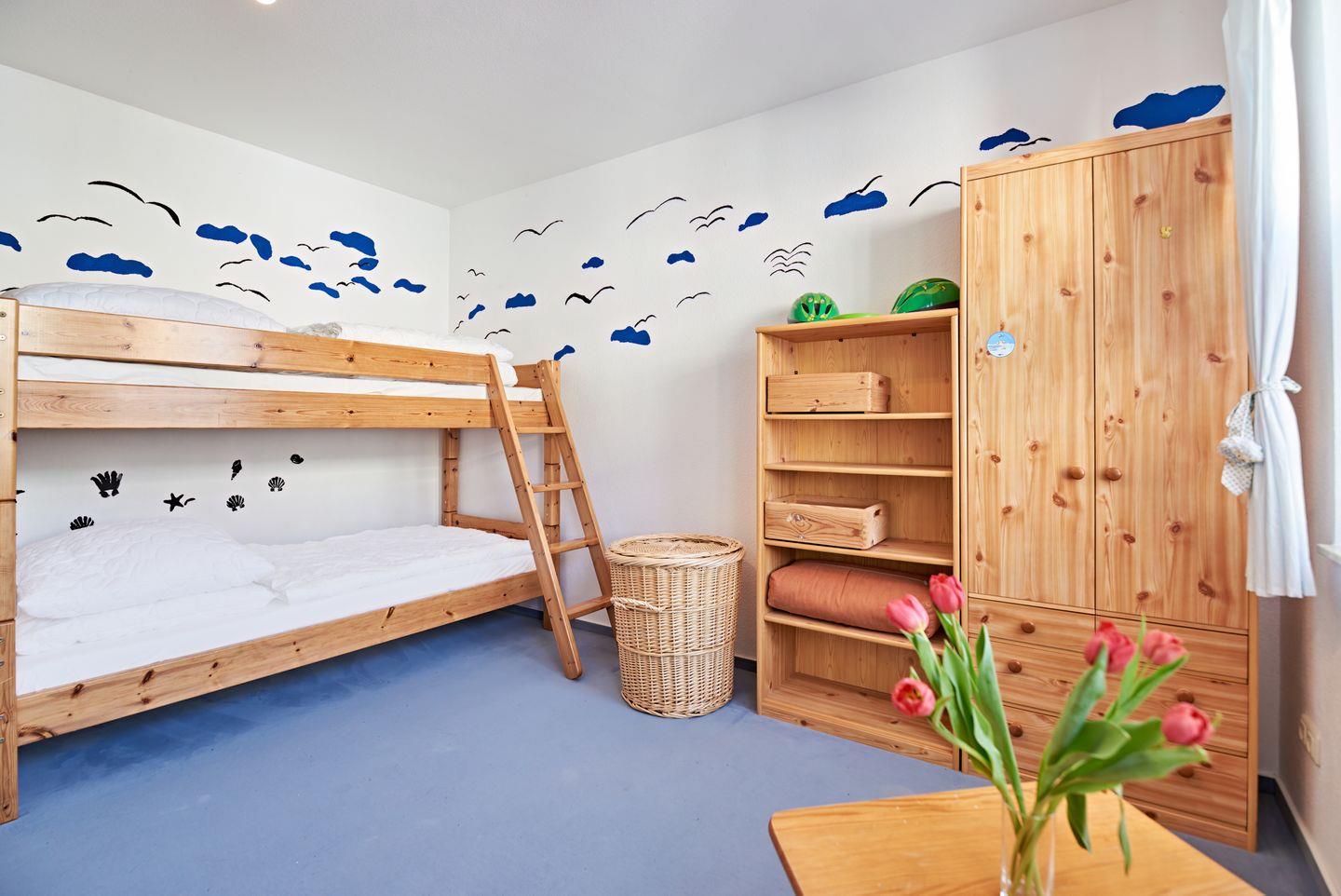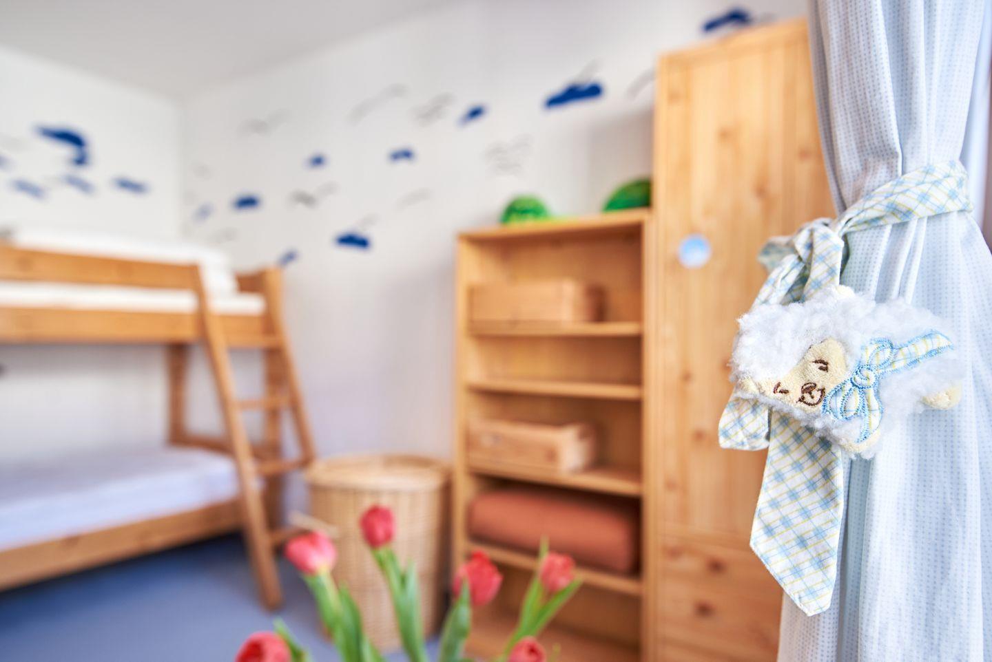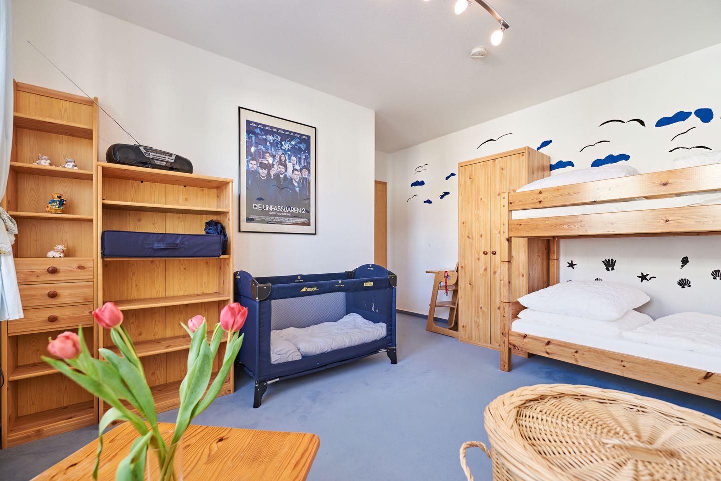 Fewo 1. OG (80 m²) WZ, SZ m.Doppelbett, KZ m. Doppelstockbett, Kinderreisebett und Hochstuhl,