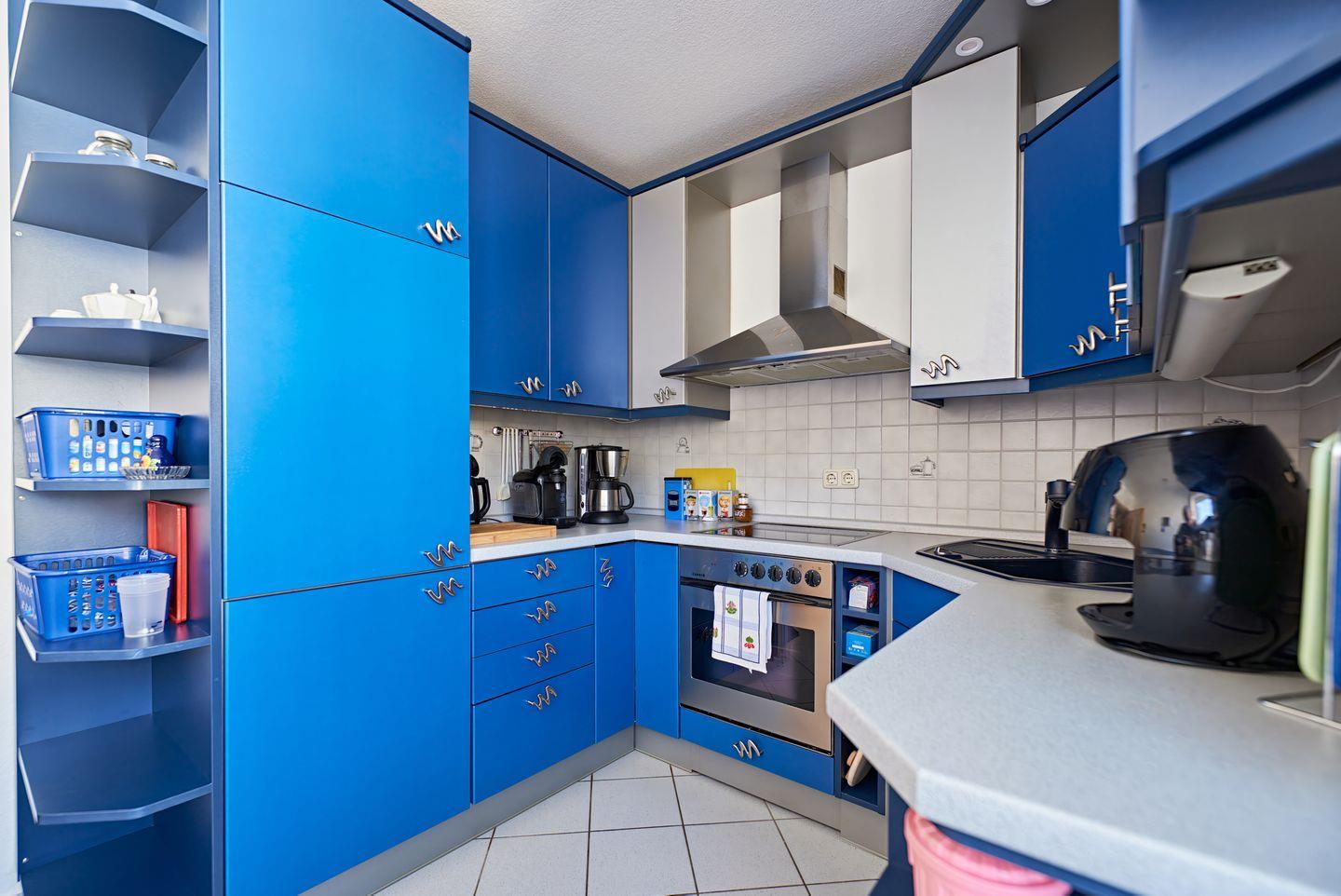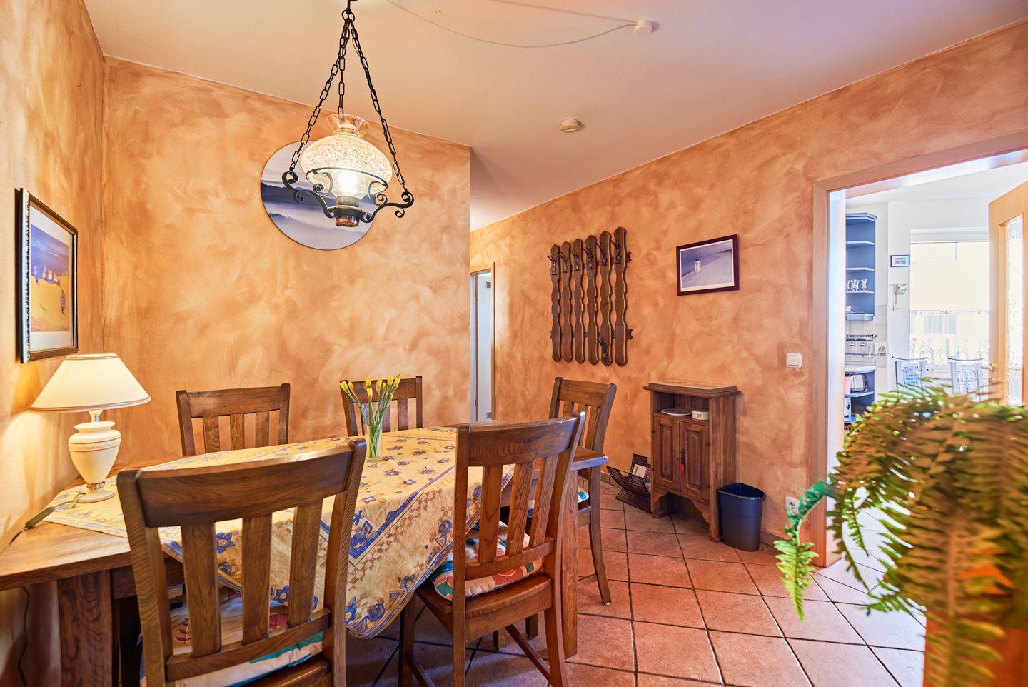 Die geschlossene Küche, ausgestattet mit einem Esstisch, Herd, Backofen, Kühlschrank und Spülmaschine, lädt zu gemeinsamen Kochabenden ein. Hier finden Sie auch elektronische Geräte wie Toaster, Wasserkocher, Kaffeemaschine und Mixer, damit Sie allmorgendlich frisch gebrühten Kaffee genießen können. Das gemütliche Wohnzimmer mit Sofaecke schafft eine einladende Atmosphäre, in der Sie nach einem erlebnisreichen Tag entspannen können.