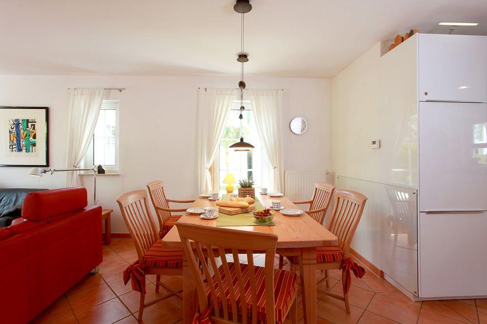 Die offene, moderne Küche ist mit jedem benötigten Utensil ausgestattet. Hier können Sie Ihre Kochkünste mit einem Induktionsherd, einem Backofen und einer Mikrowelle unter Beweis stellen. Der Kühlschrank mit Gefrierfach, die Kaffeemaschine und die weiteren Küchenutensilien lassen keine Wünsche offen. Genießen Sie Ihre Mahlzeiten auf der großzügigen Terrasse, die mit Gartenmöbeln, einem Strandkorb und einem Sonnenschirm aufwartet, während Sie die frische Ostseeluft genießen. Ein Grill steht ebenfalls zur Verfügung, um laue Sommerabende zu feiern.