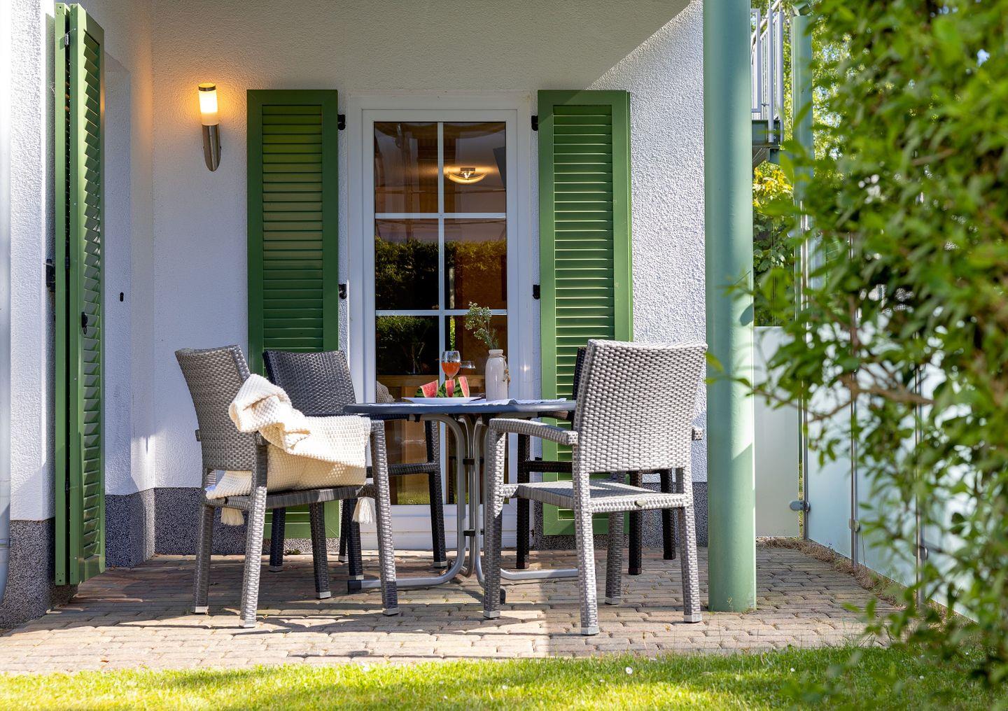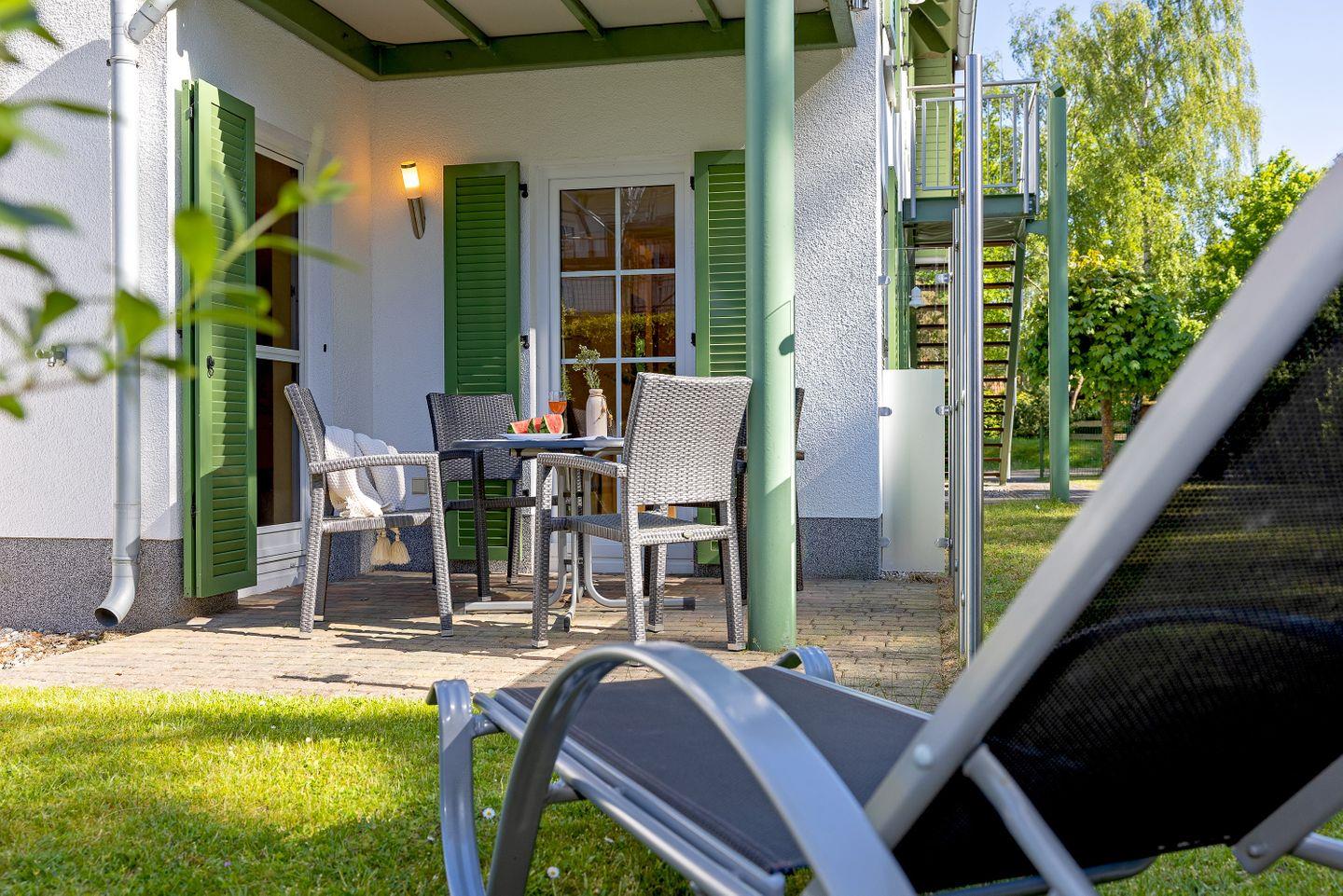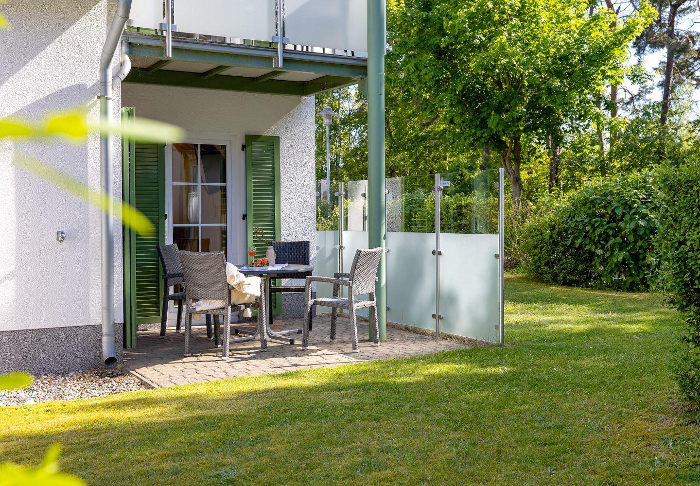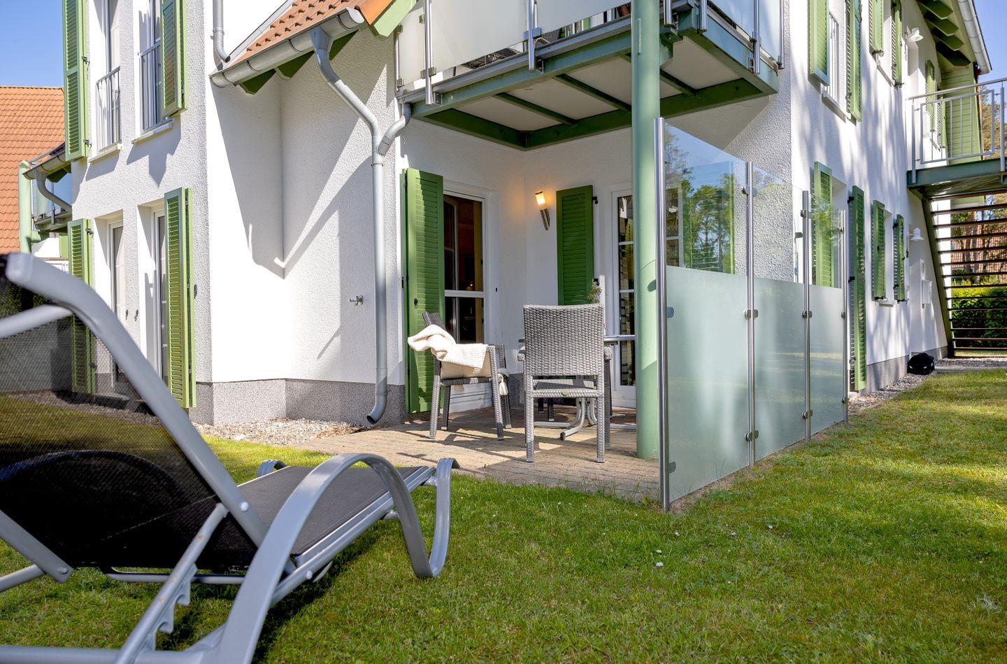 Moderne Erdgeschosswohnung mit Terrasse und Strandkorb nahe Ostsee in Karlshagen.
